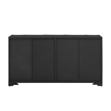 Accent Wood Grain Cabinet with 4 Doors, Storage Cabinet Sideboard with U shape stainless steel...