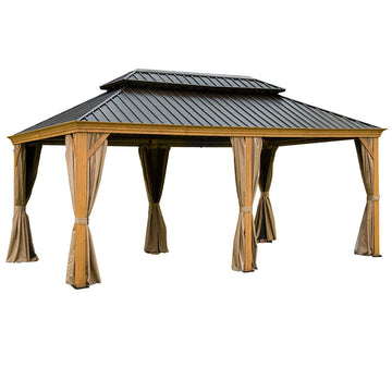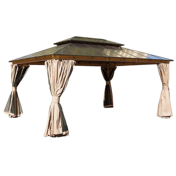 Our permanent hardtop gazebo sports a dual-slide design that features zippered, double-layered sidewalls. These sidewalls...