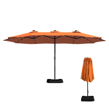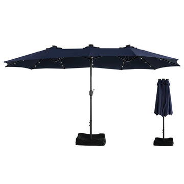 15ft solar energy LED patio double-sided umbrella with crank and base. Feature Solar power storage...