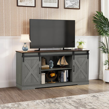 Overview This versatile two-tone TV table combines a farmhouse style with modern functionality, featuring a...