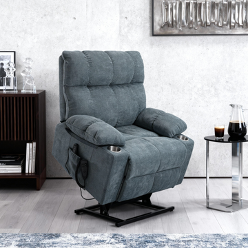 Grey Blue Dual Motor Infinite Position Up to 350 LBS Chenille Power Lift Recliner Chair,...