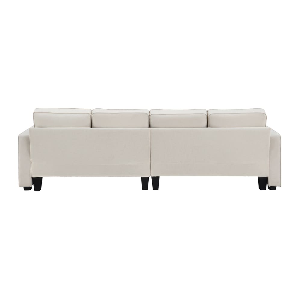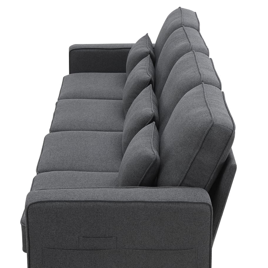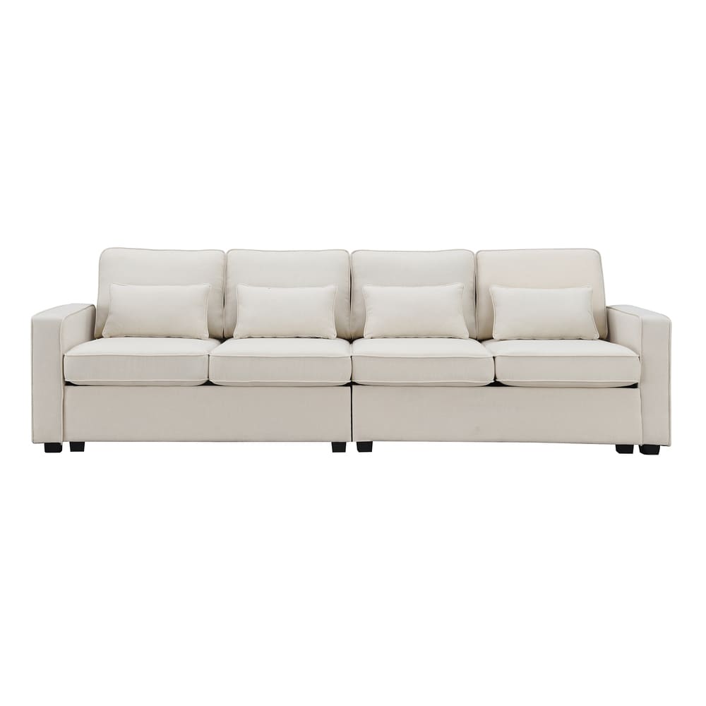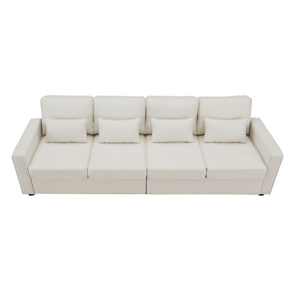 104" 4-Seater Modern Linen Fabric Sofa with Armrest Pockets and 4 Pillows,Minimalist Style Couch for Living Room, Apartment, Office