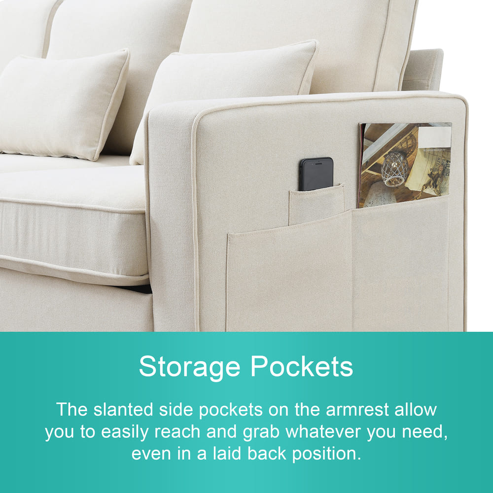 - More Storage Space: To make the environment look neater,the sofa has some storage pockets on the side to storage magazines,phones,remote controls or others.