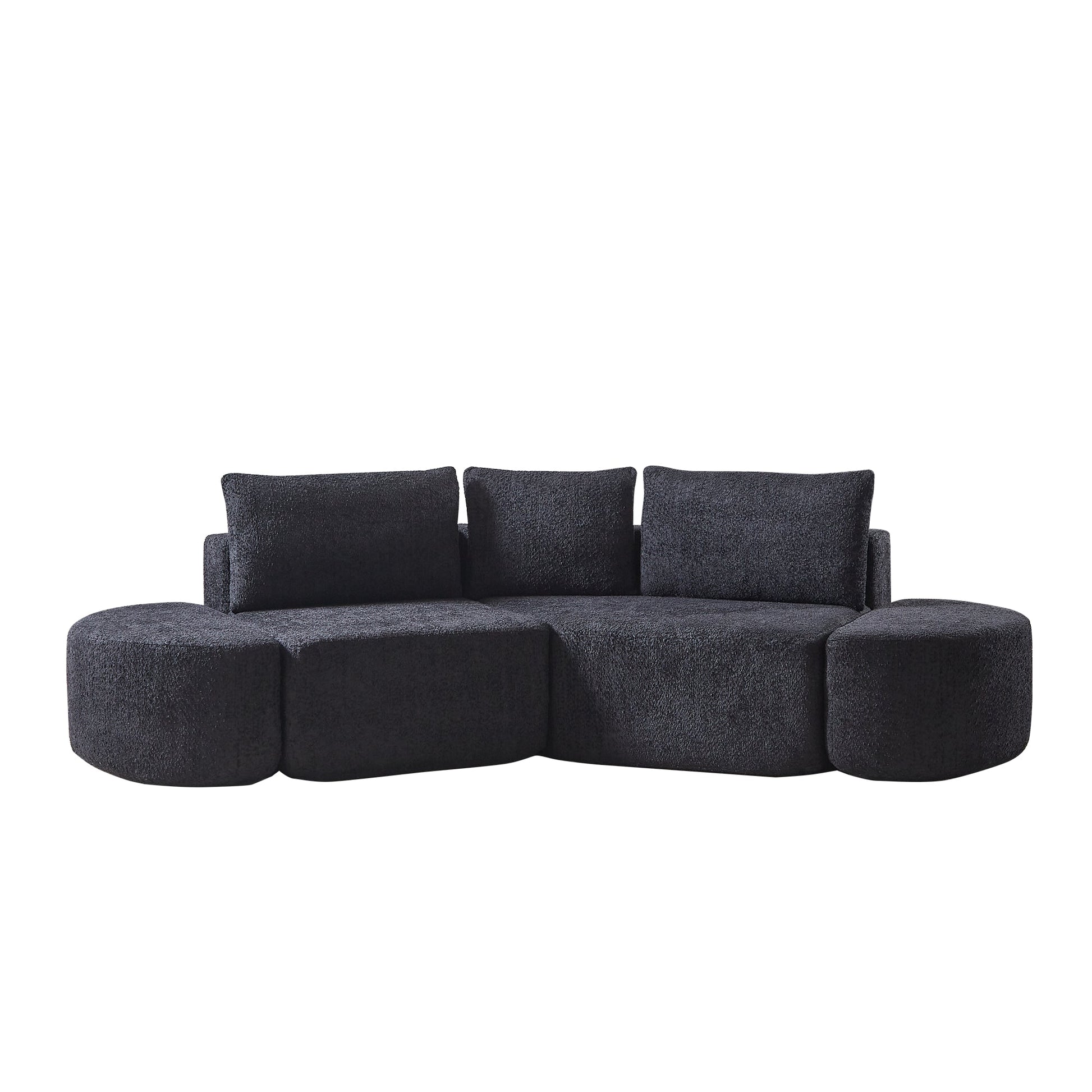 Upgrade your living space with our 106.3-inch V-shaped modular sectional sofa set, crafted from premium chenille fabric that balances elegance and durability perfectly. This versatile couch comes with 3 supportive cushions and 2 multi-functional curved ottomans, making it a great fit for living rooms, bedrooms and offices alike. The 4 interchangeable components let you easily switch between a V-shape and linear layout to suit your needs, while the ottomans can be used as extra seating, footrests or even temporary coffee tables.