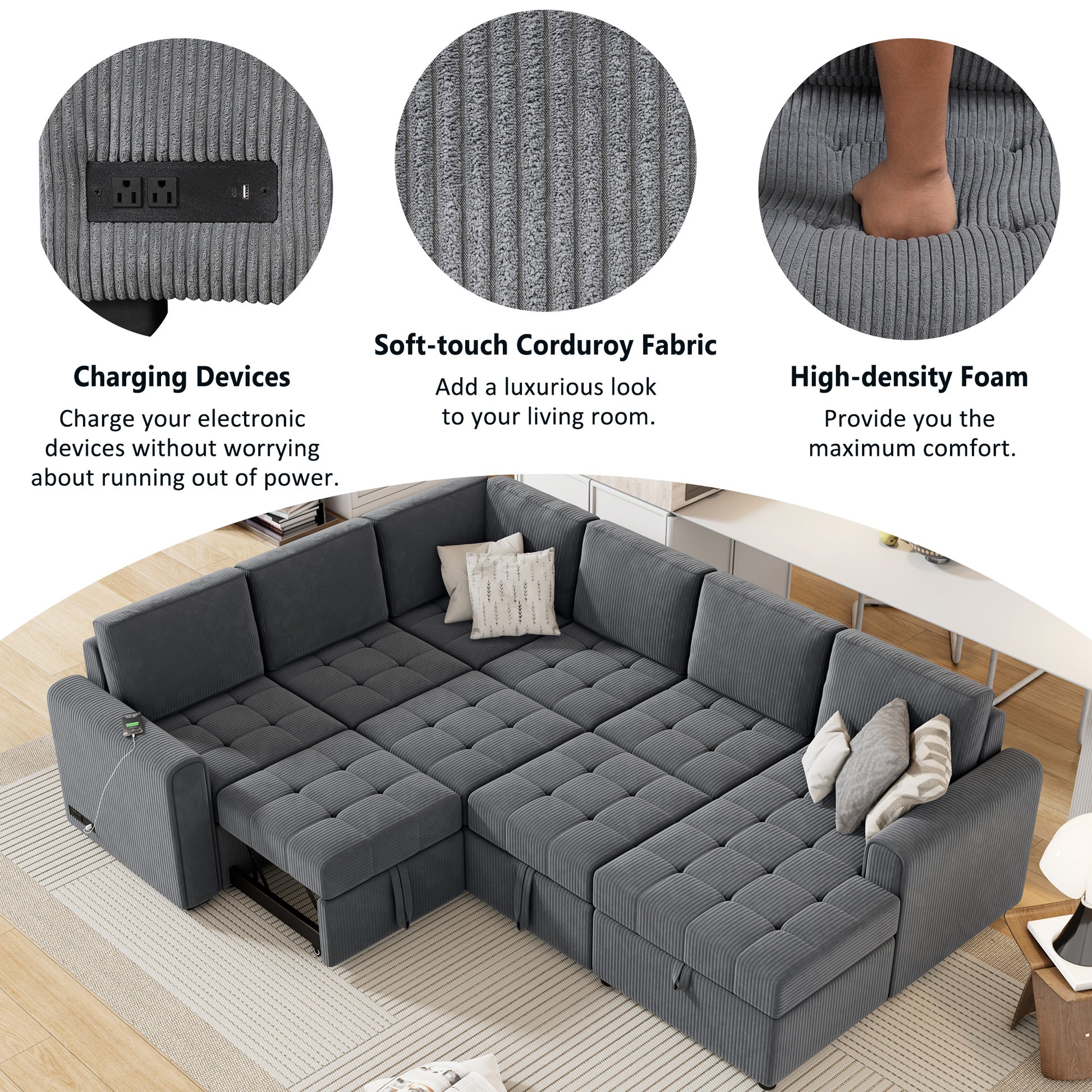 - Two USB Ports and Two Power Sockets - This sofa bed comes with two USB ports and two power sockets, providing convenient long-term power, so you can charge your electronic devices without worrying about running out of power.