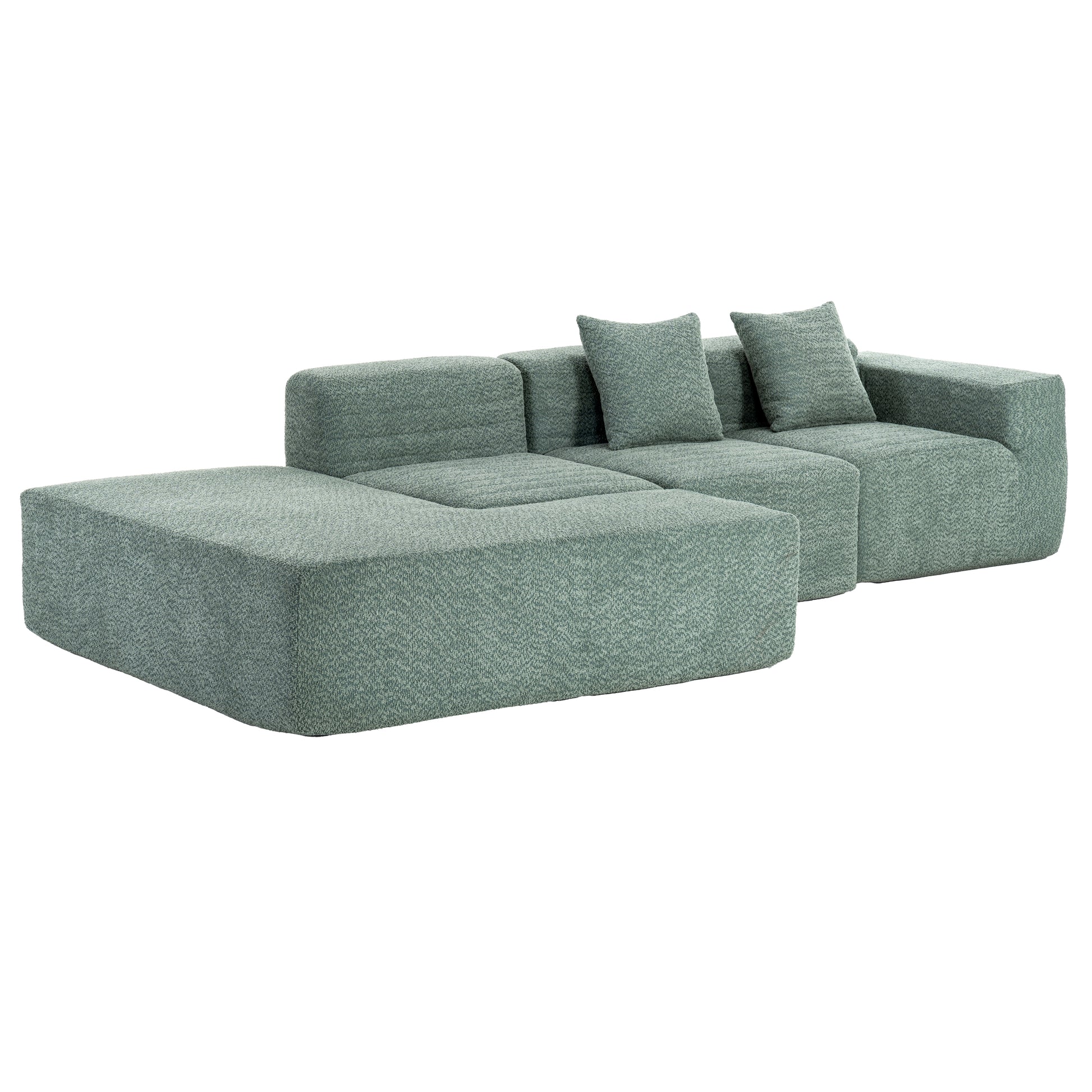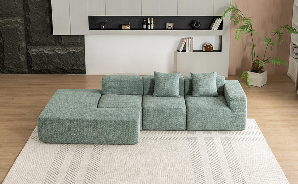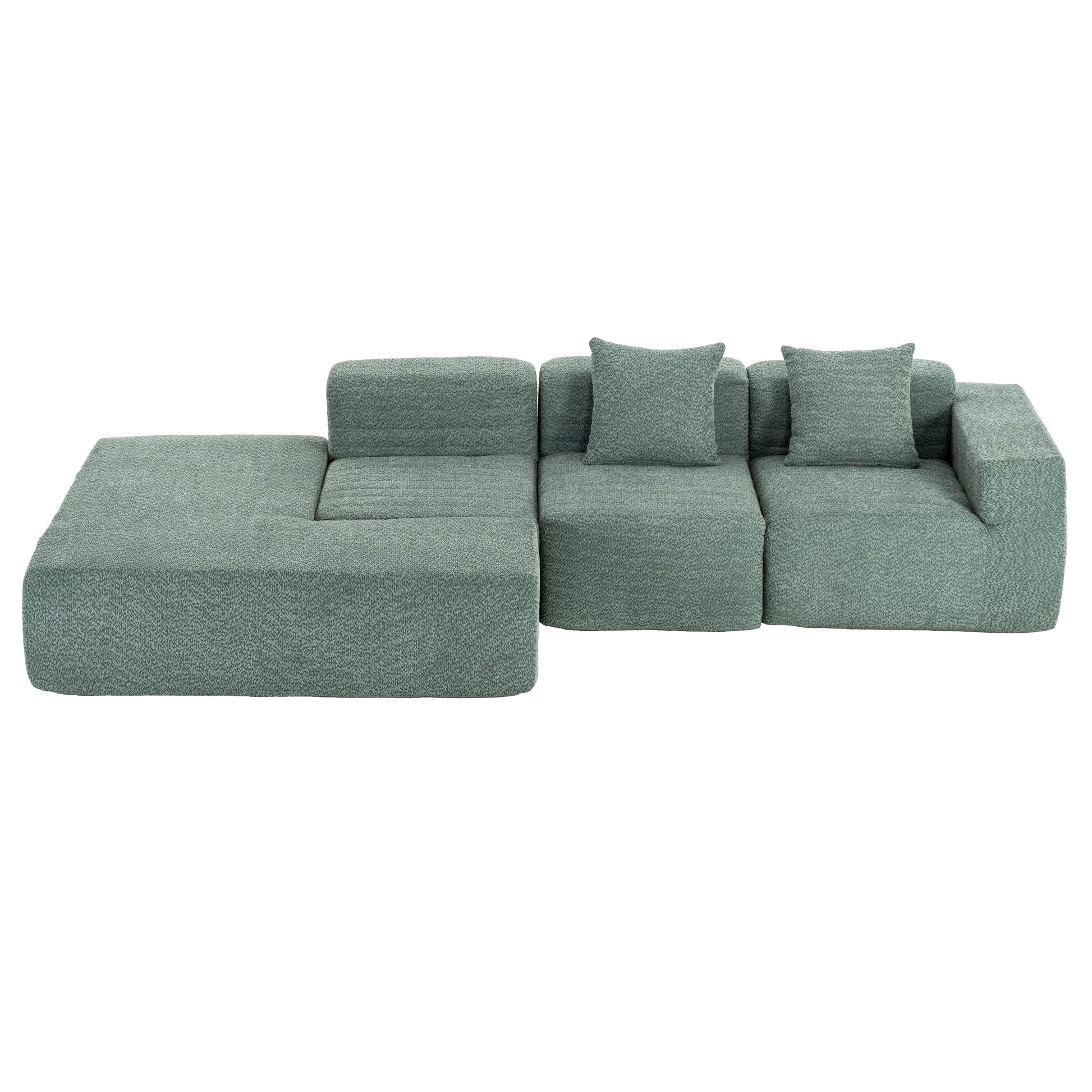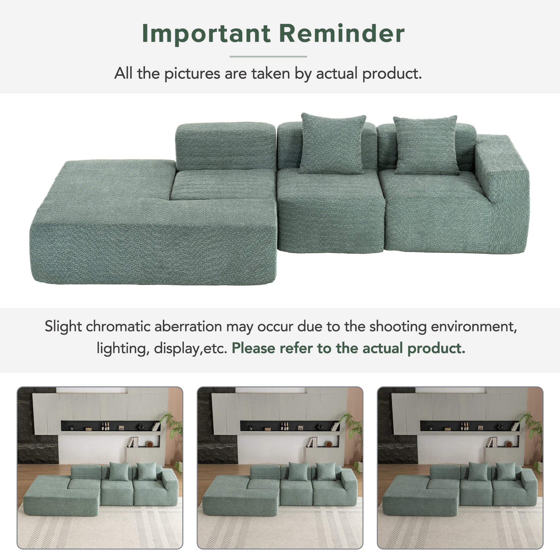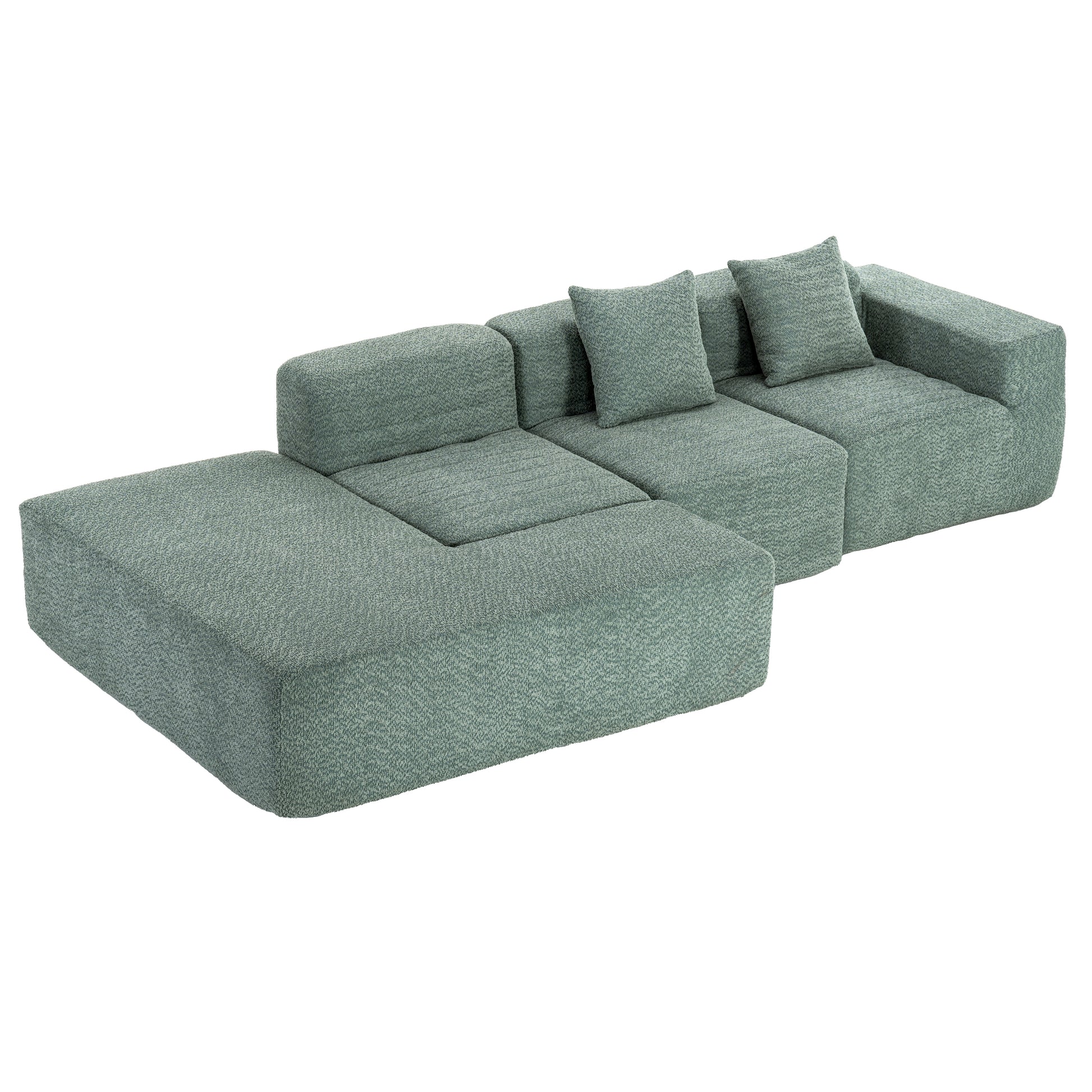116.5" Sectional Sofa Full-compressed Sofa Couch Free-combined Sofa for Living Room, Grey/Green/Beige