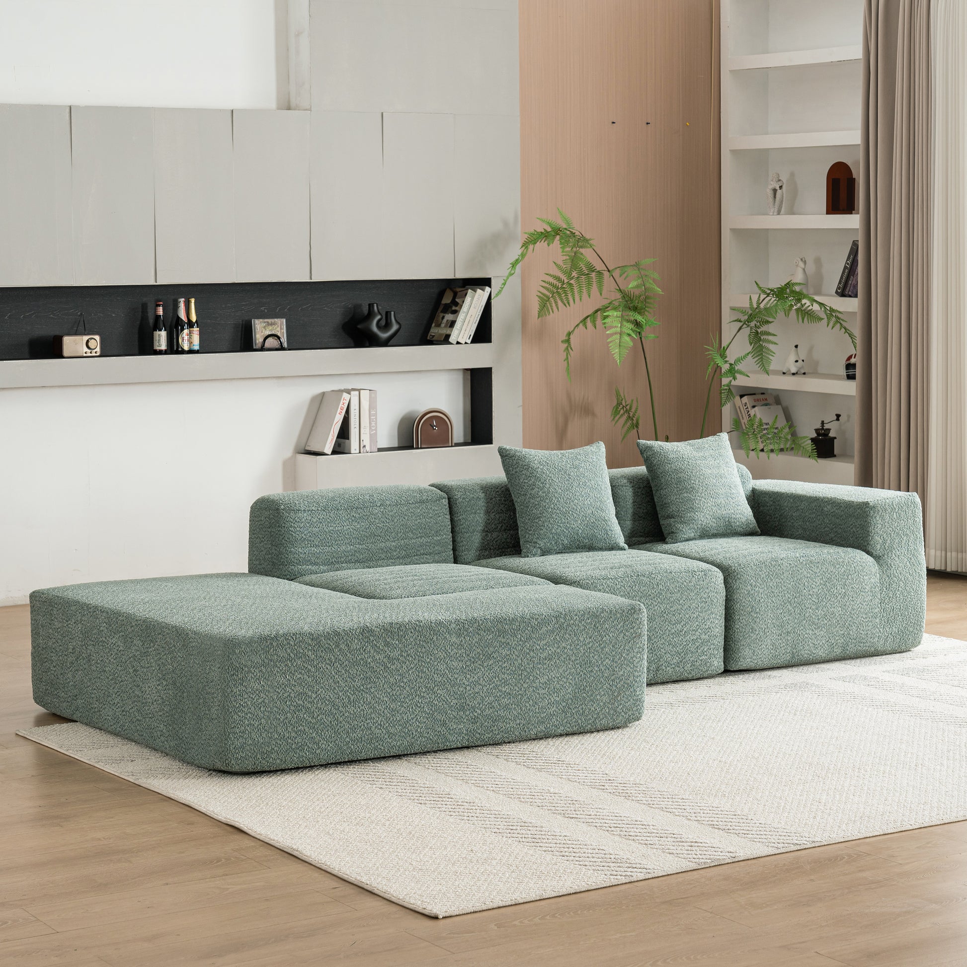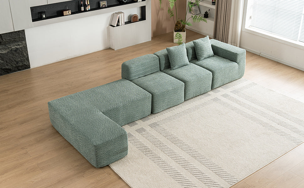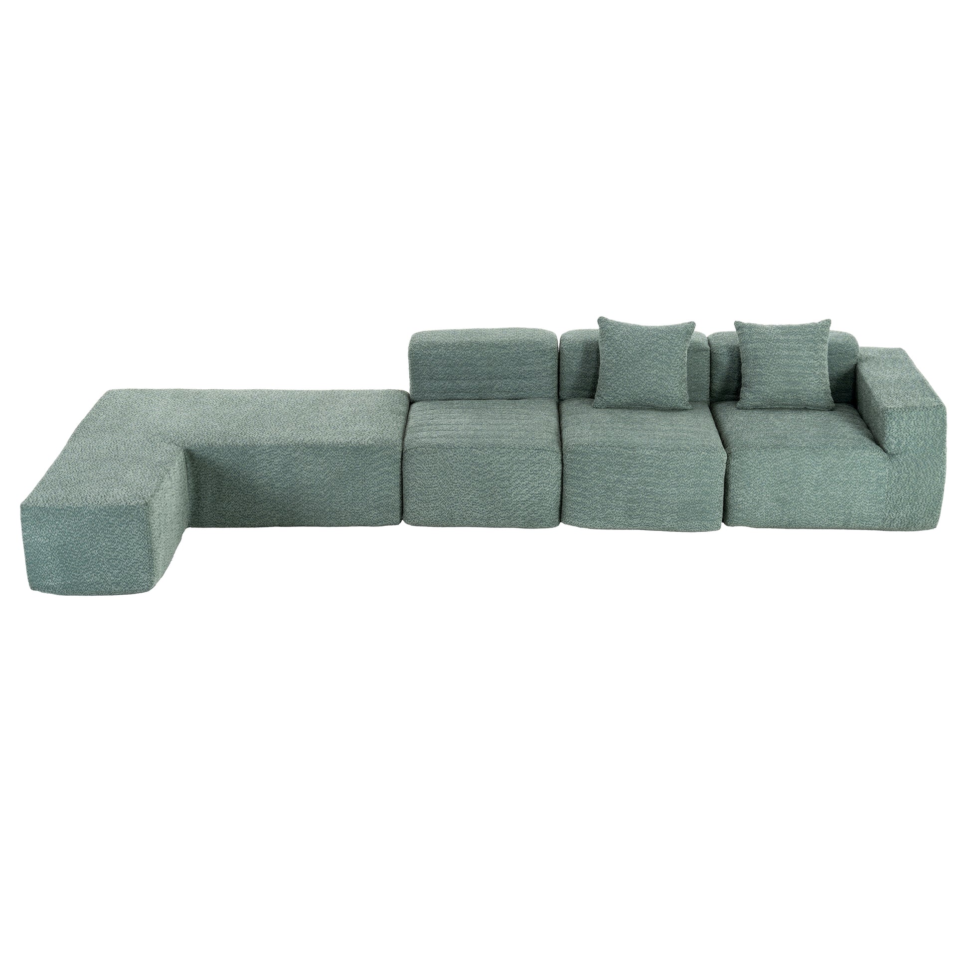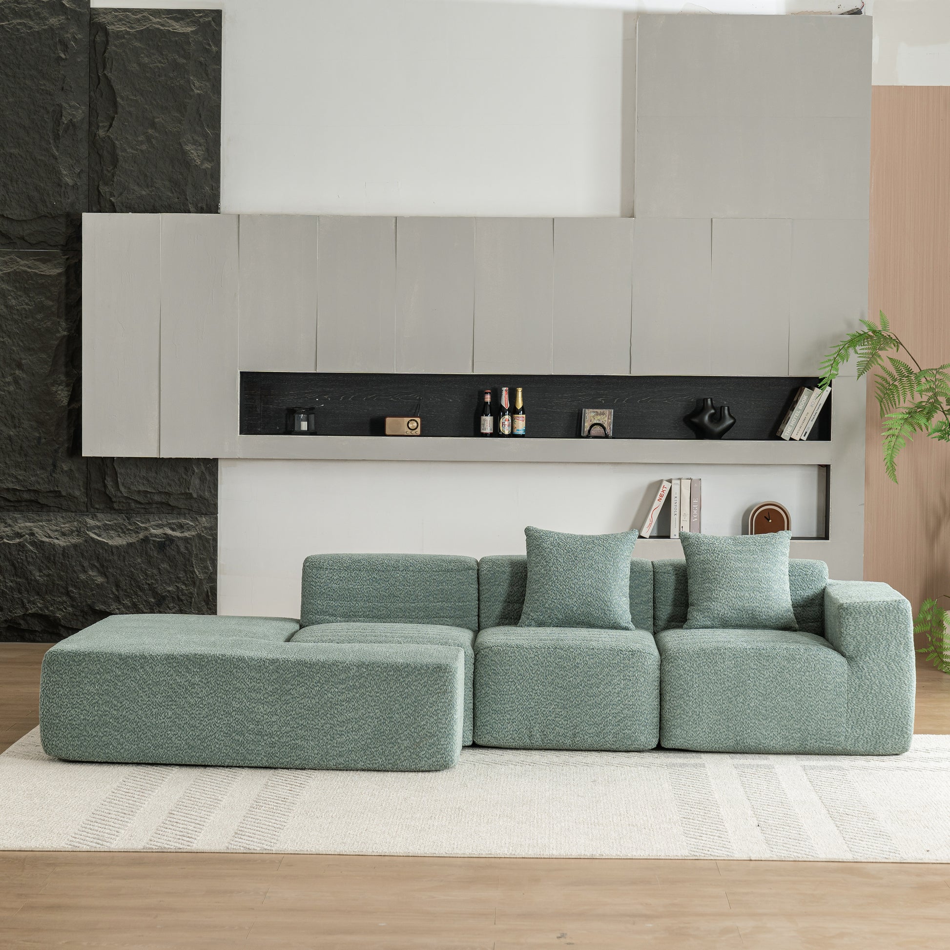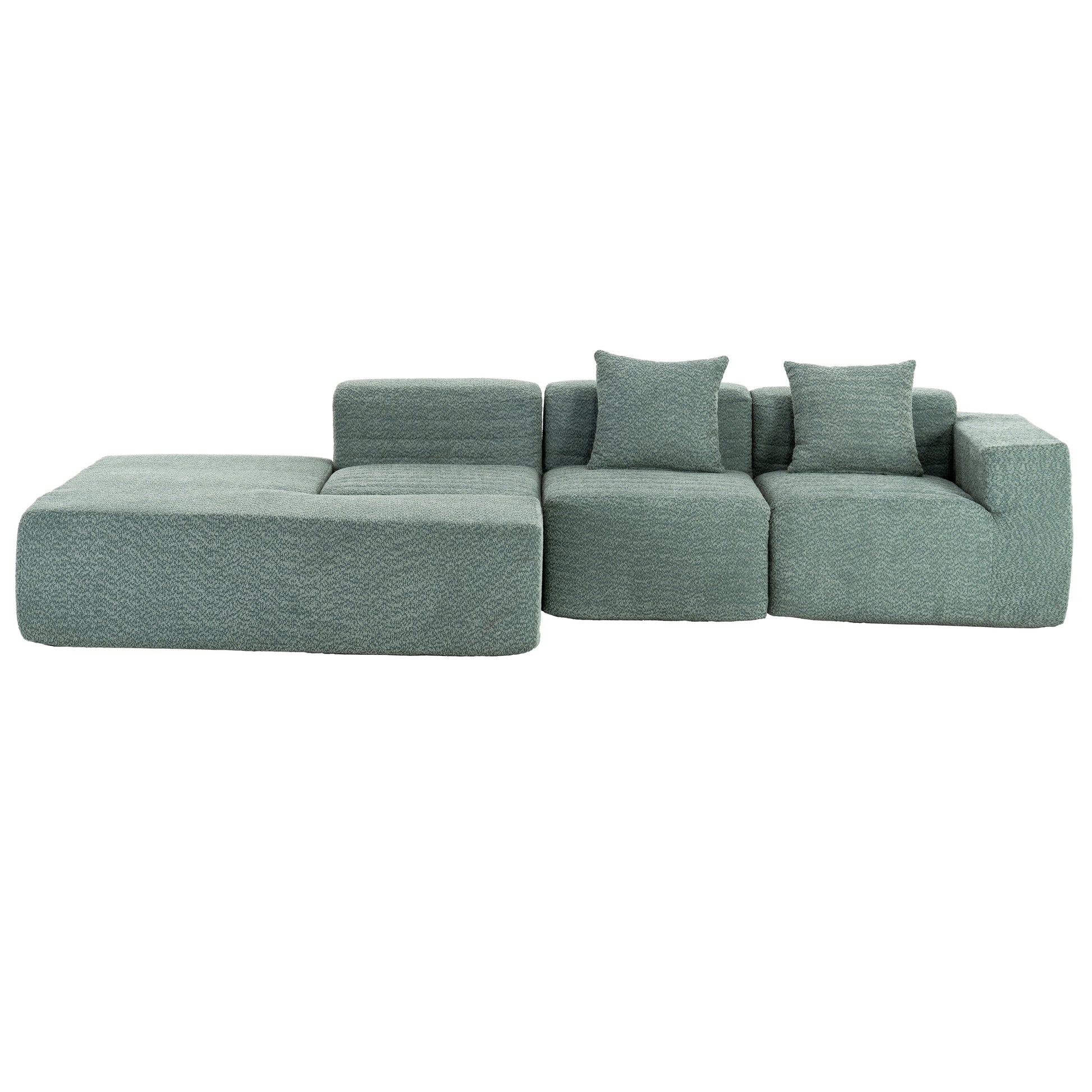 116.5" Sectional Sofa Full-compressed Sofa Couch Free-combined Sofa for Living Room, Grey/Green/Beige