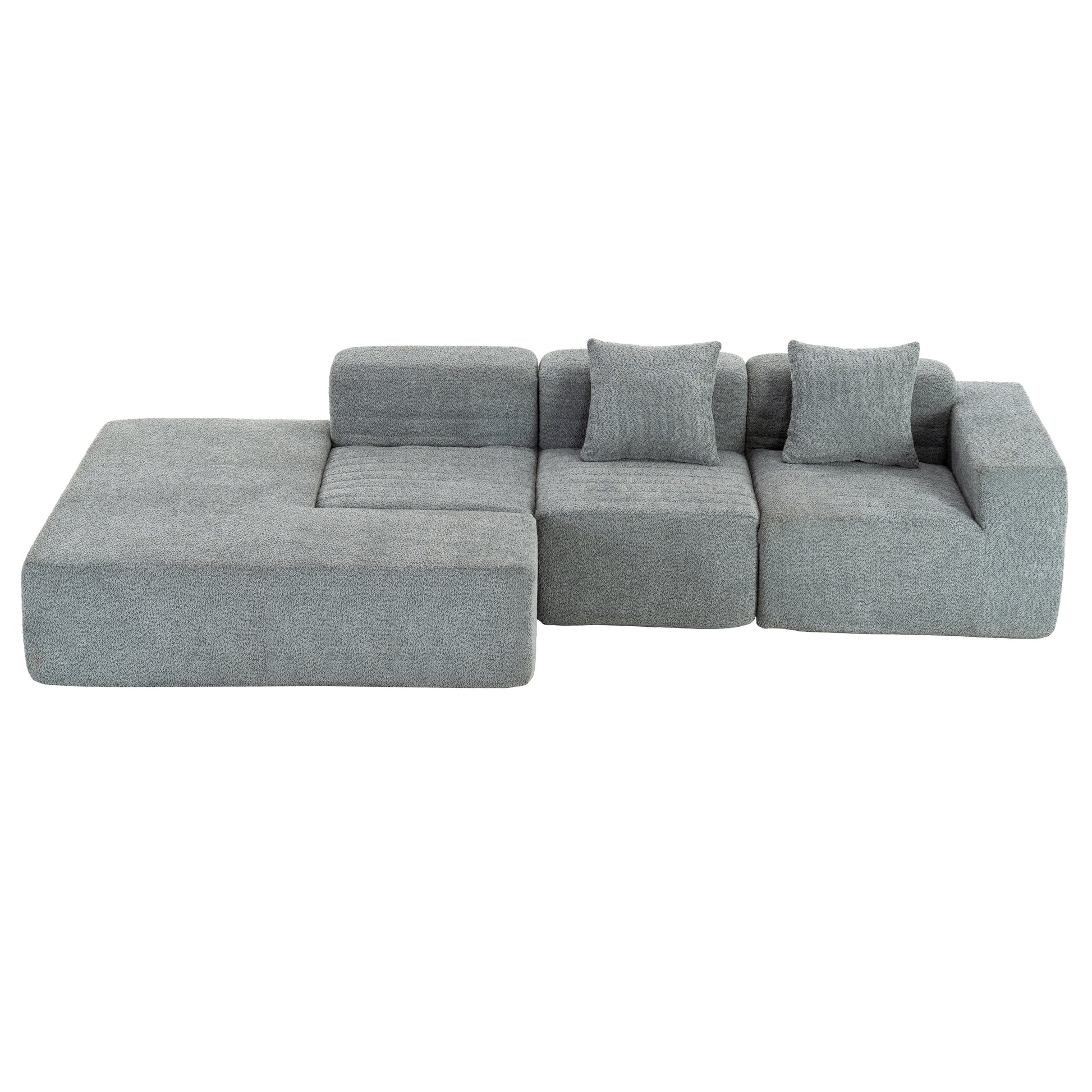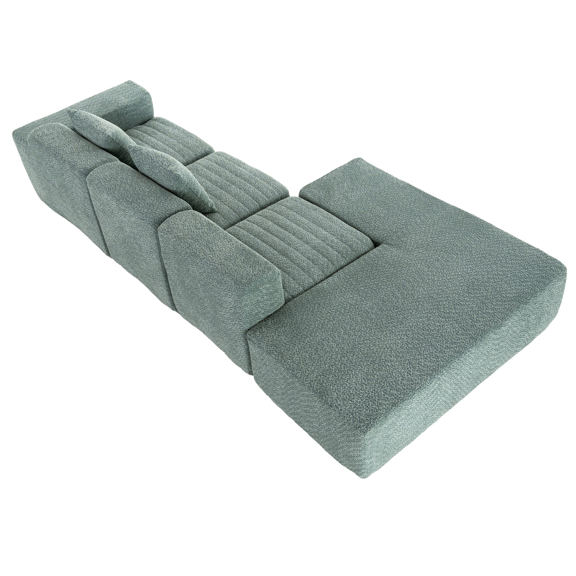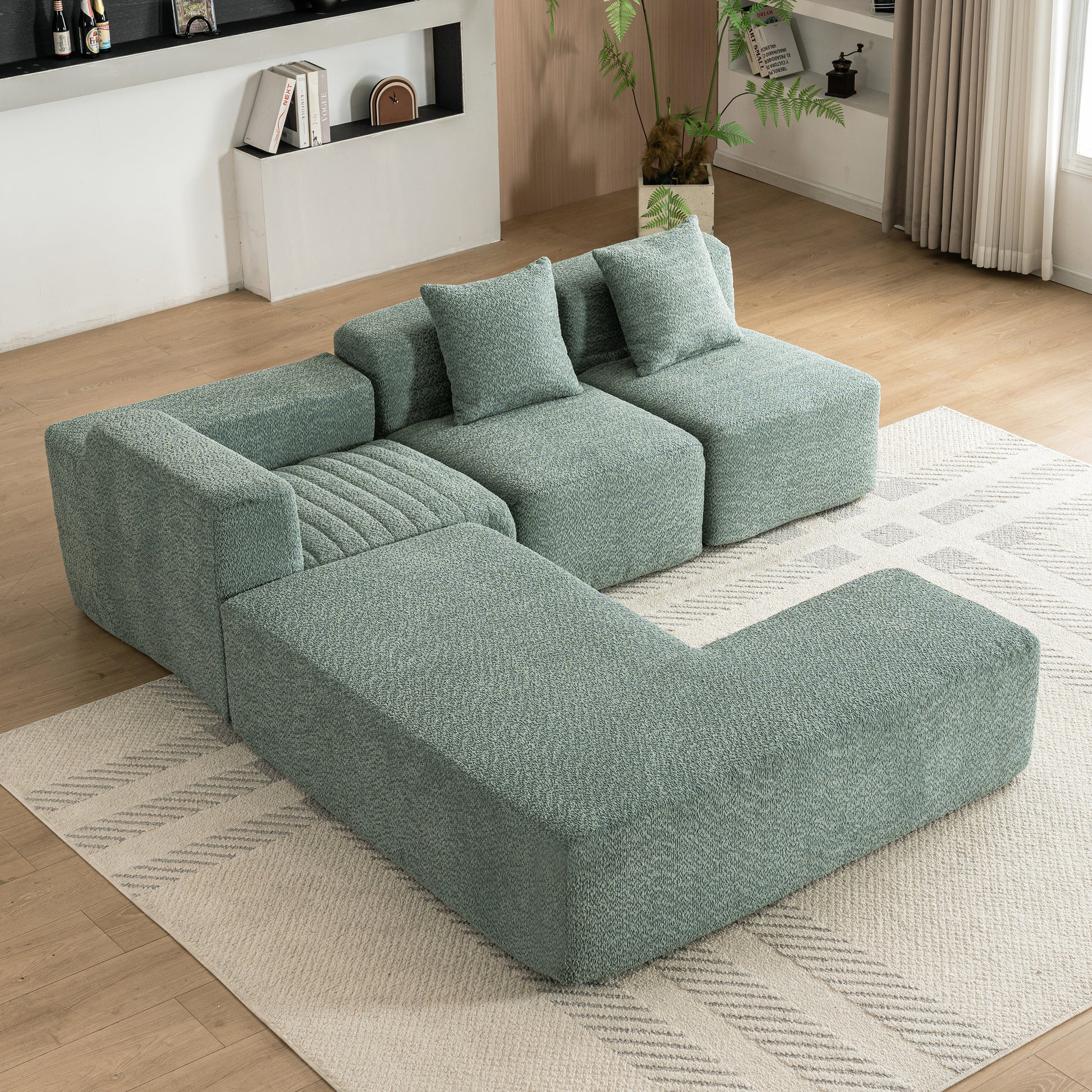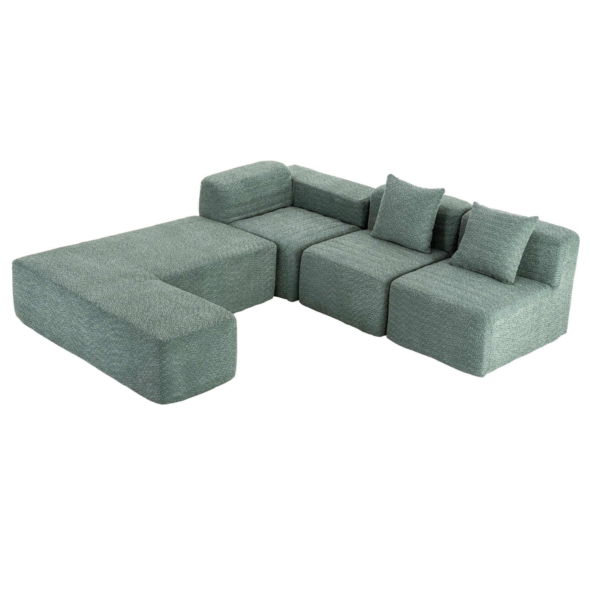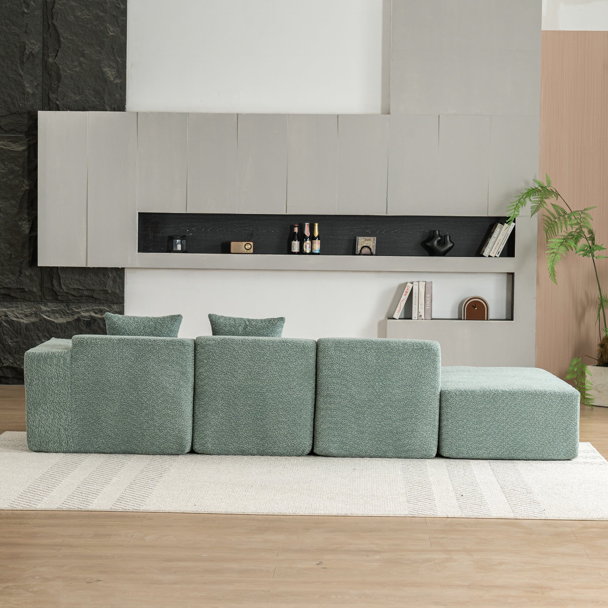 116.5" Sectional Sofa Full-compressed Sofa Couch Free-combined Sofa for Living Room, Grey/Green/Beige