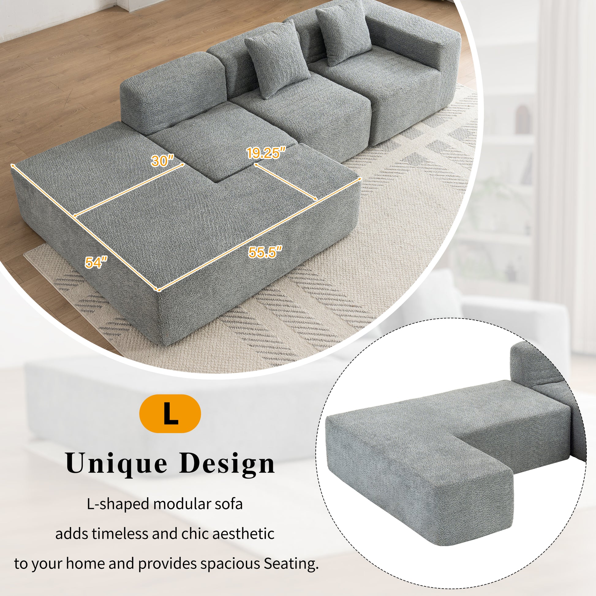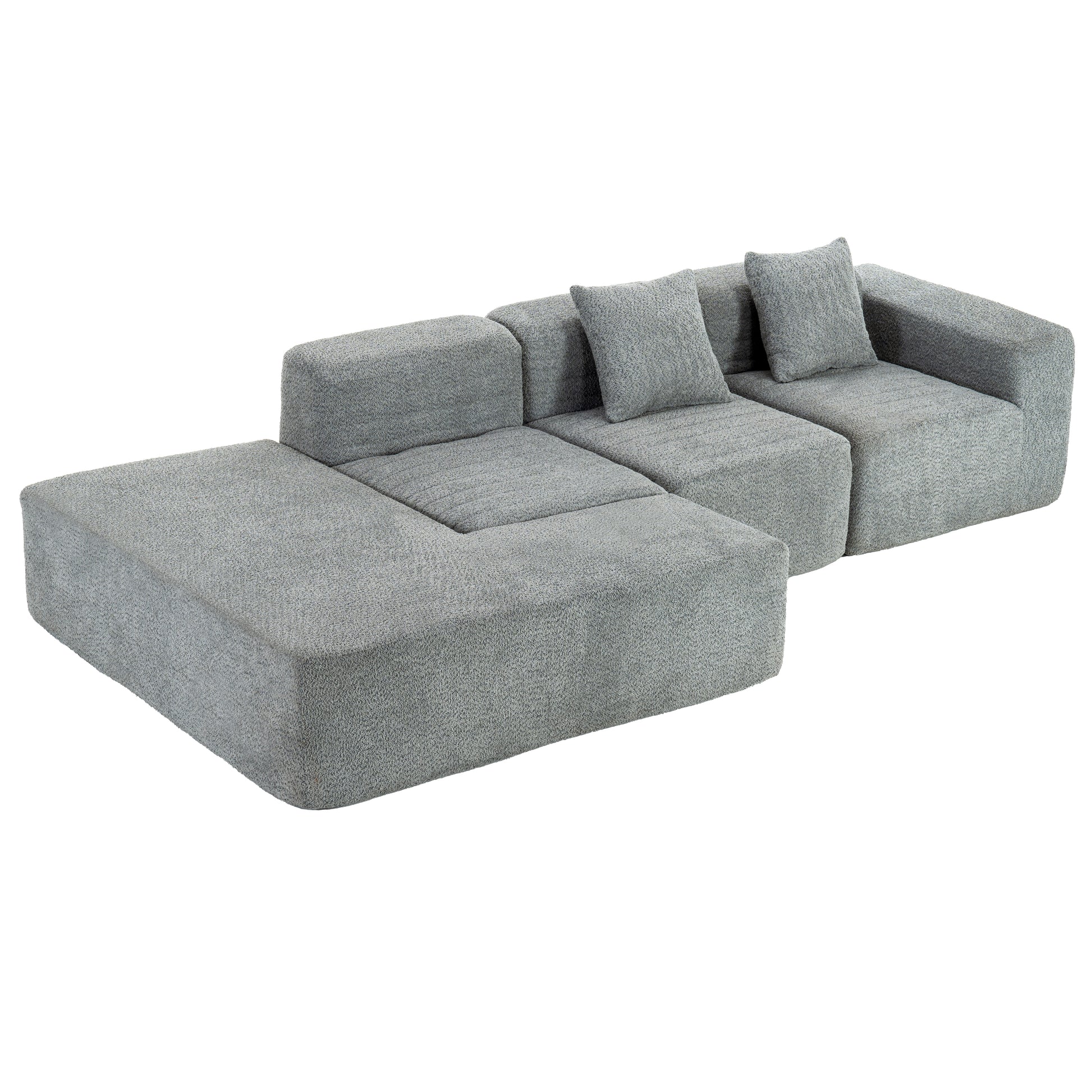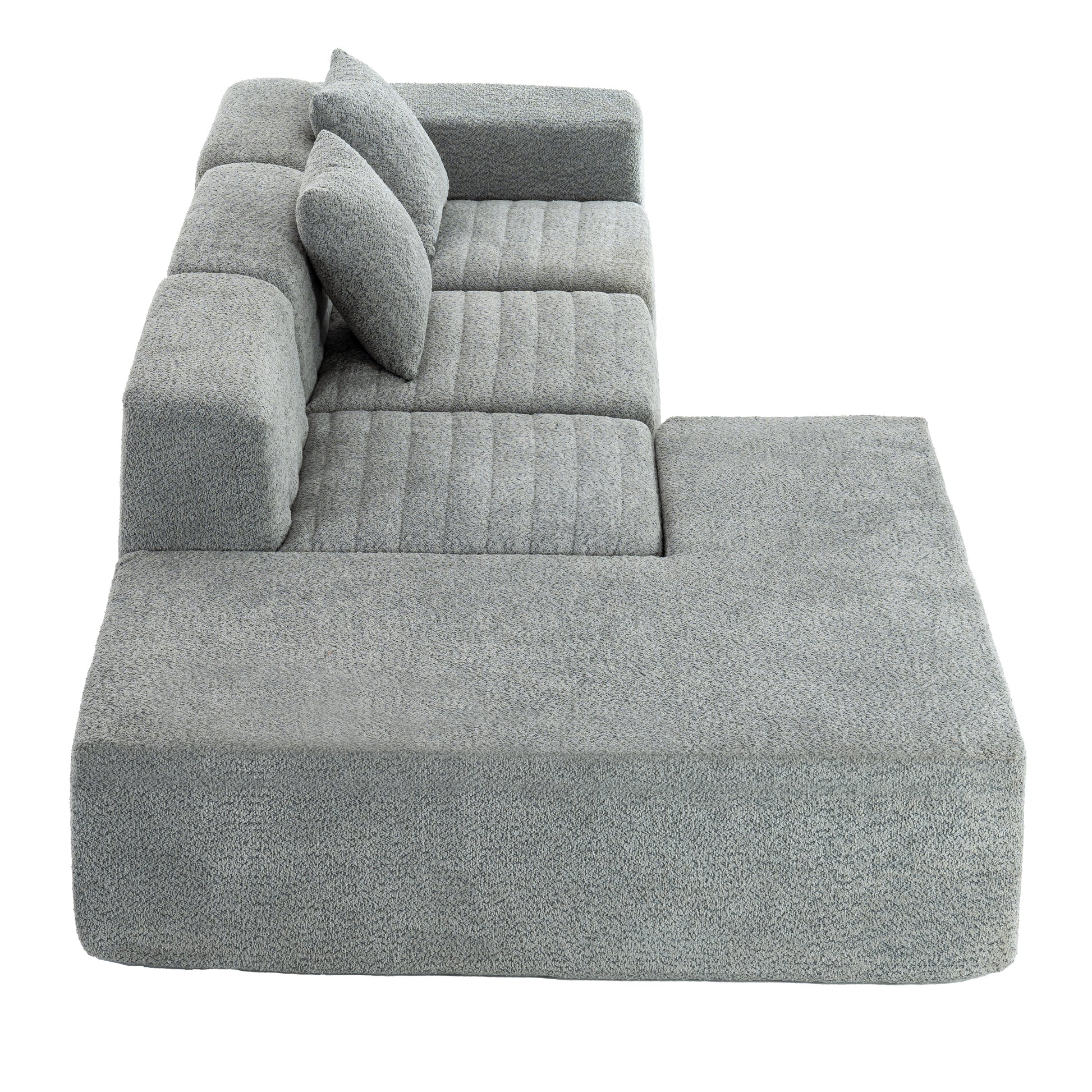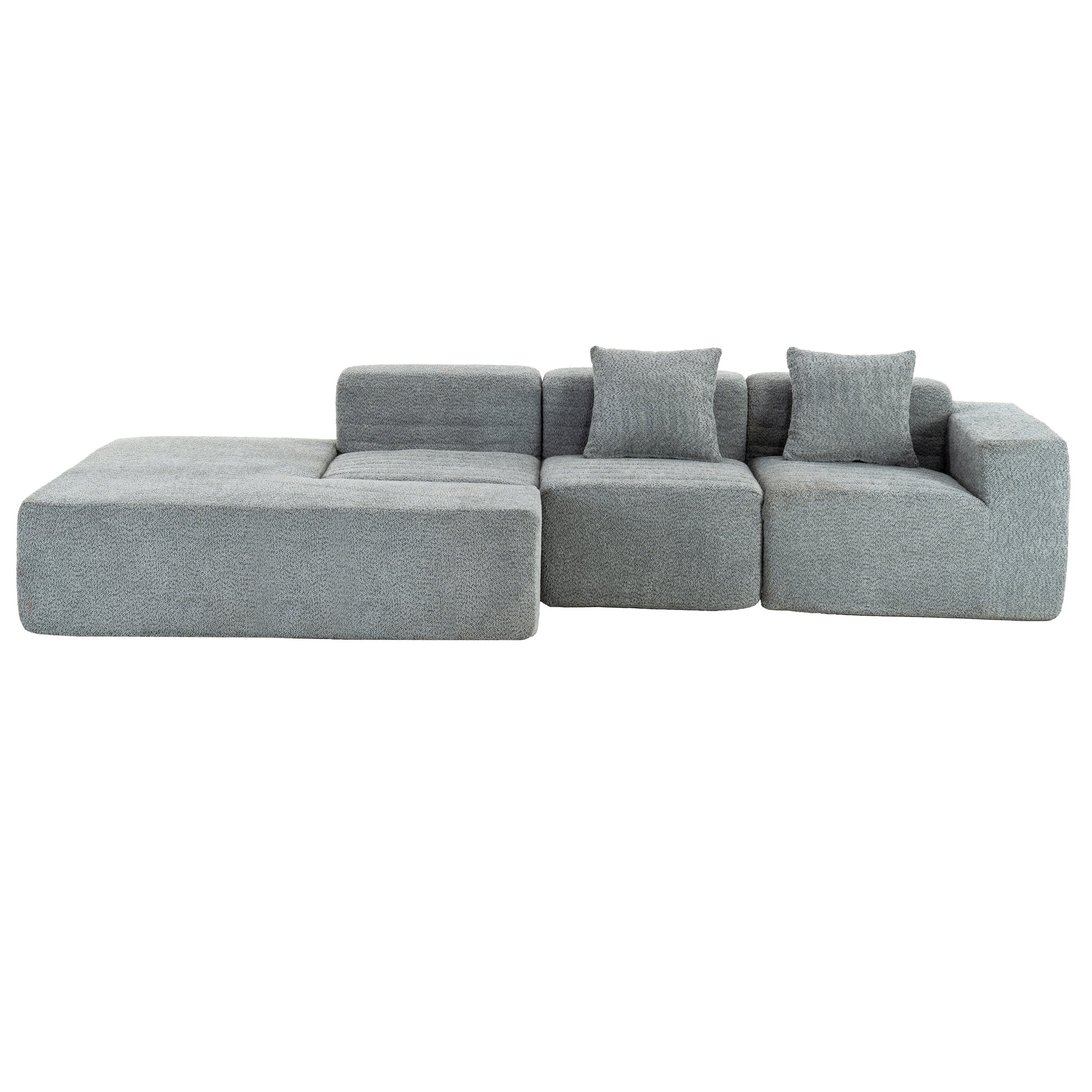 116.5" Sectional Sofa Full-compressed Sofa Couch Free-combined Sofa for Living Room, Grey/Green/Beige