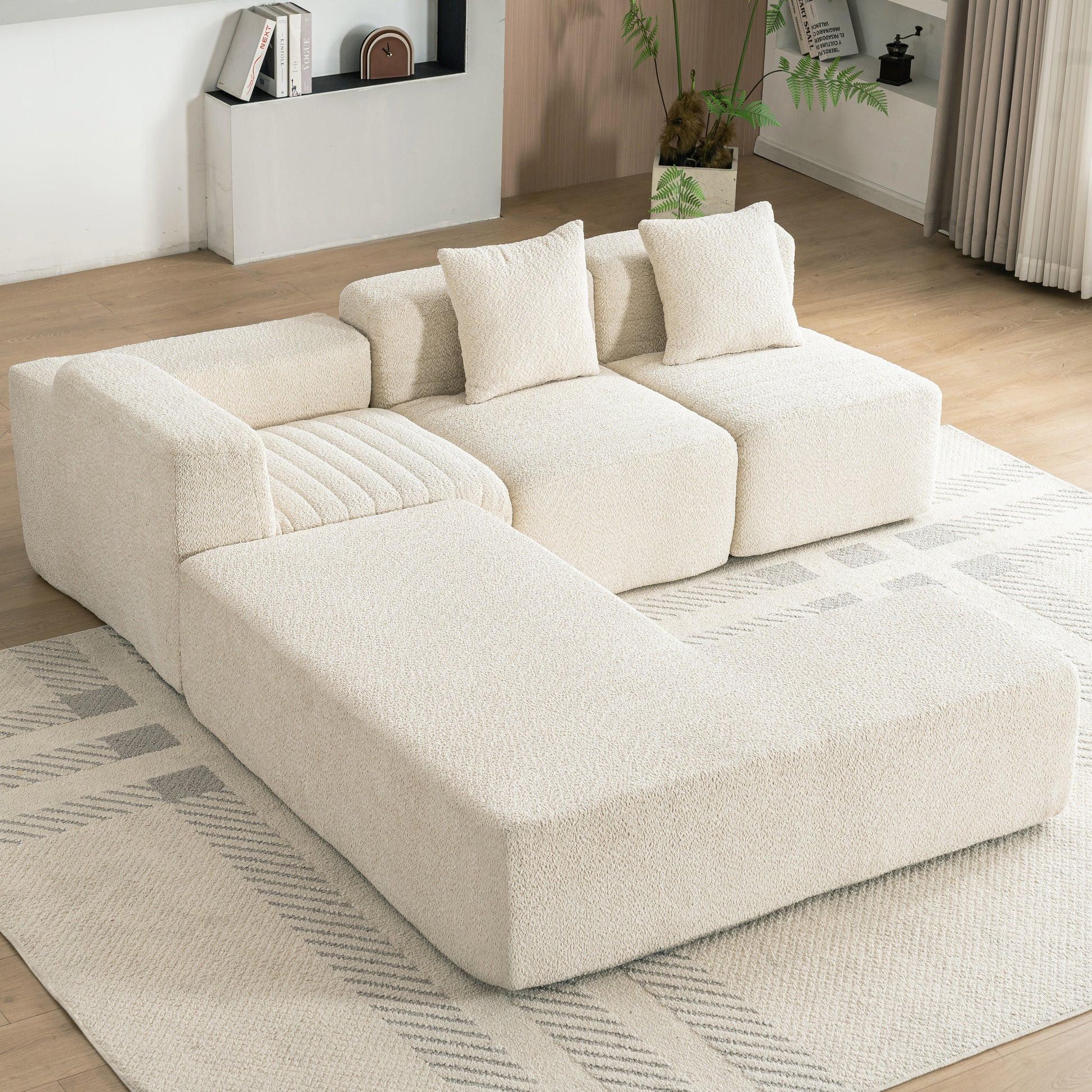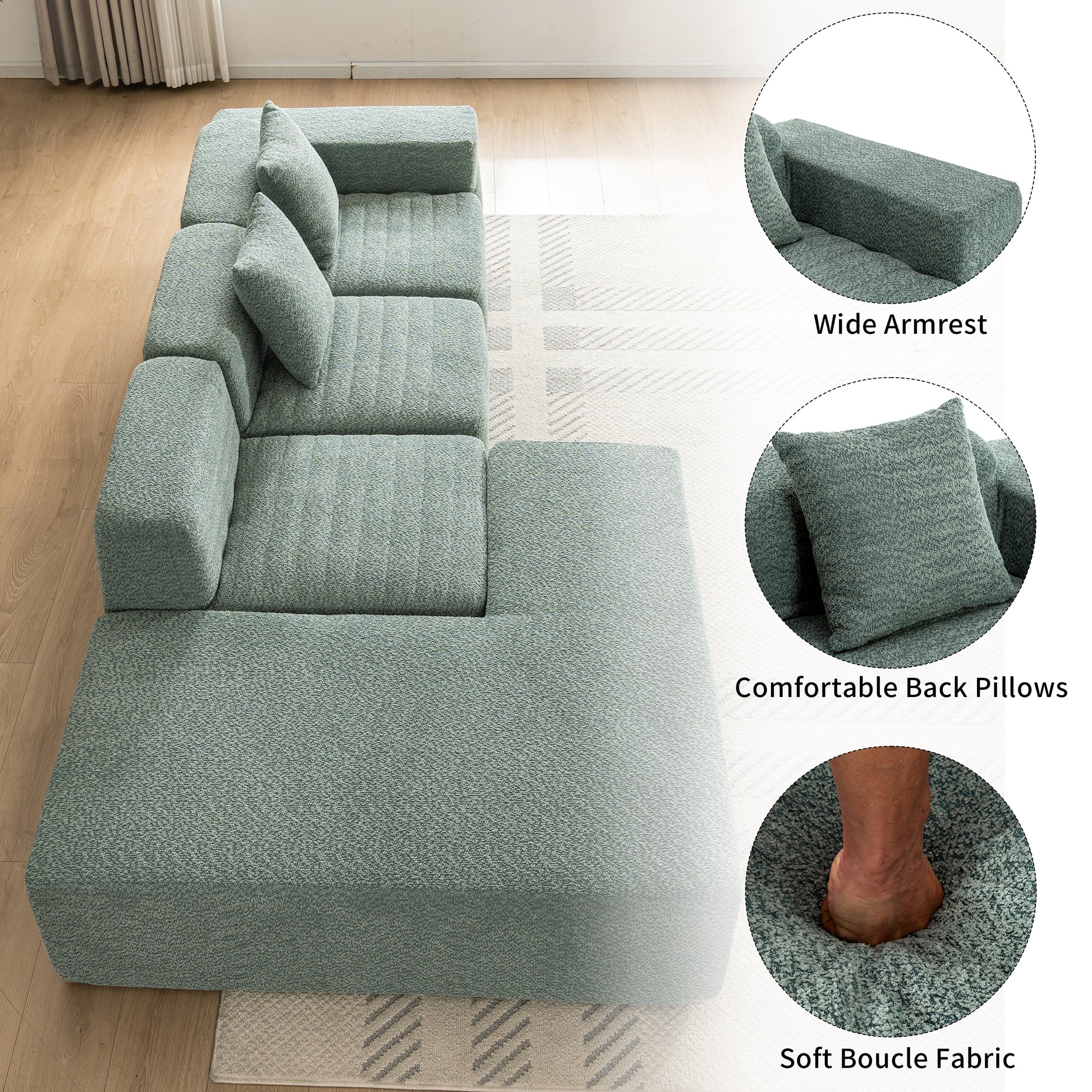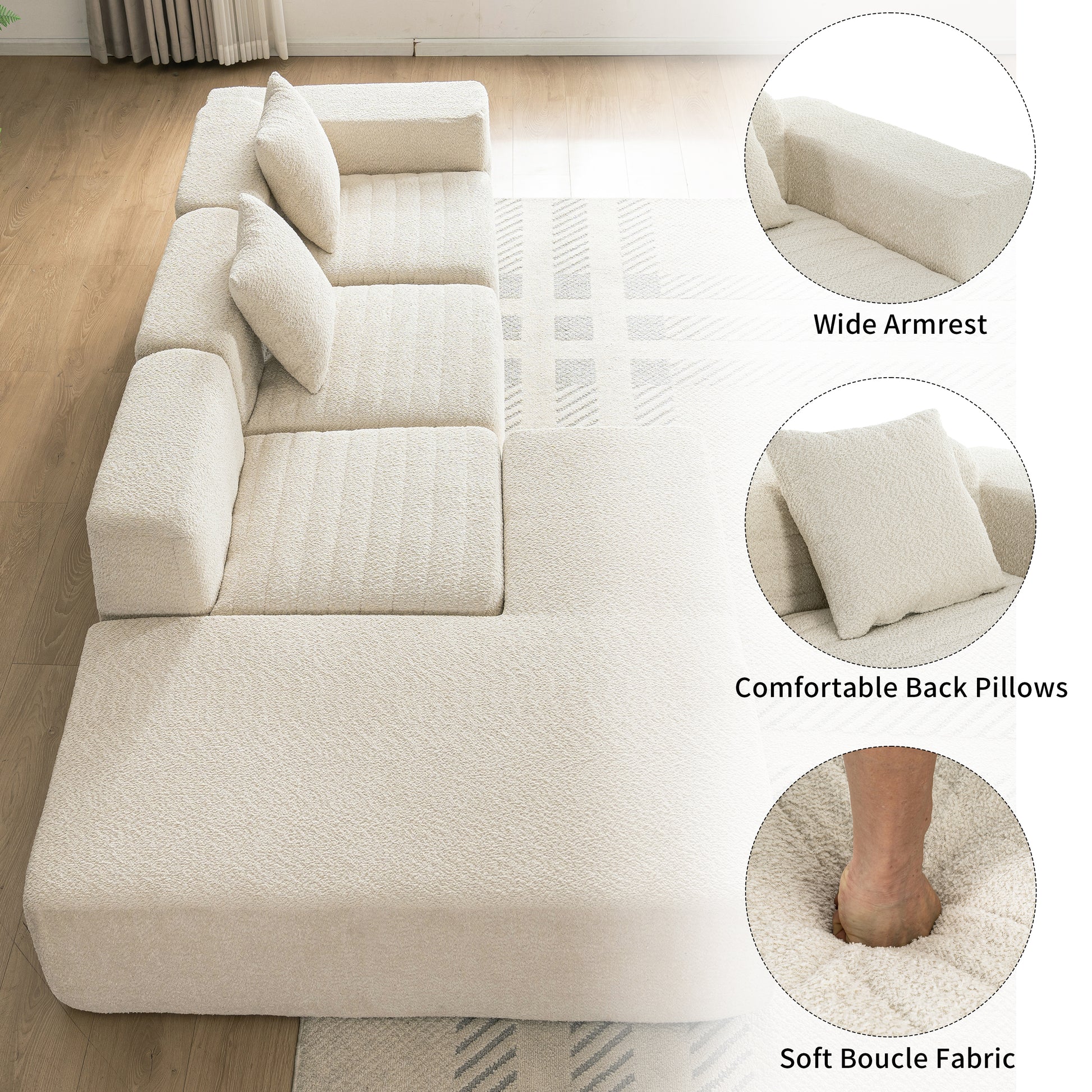 - Unmatched Comfort - This sectional sofa offers plush comfort and spacious seating. Upholstered in ultra-soft boucle fabric, the sofa comes with a pocket springs with high-density foam structure, ensuring long-lasting durability and consistently comfortable seating experience.
