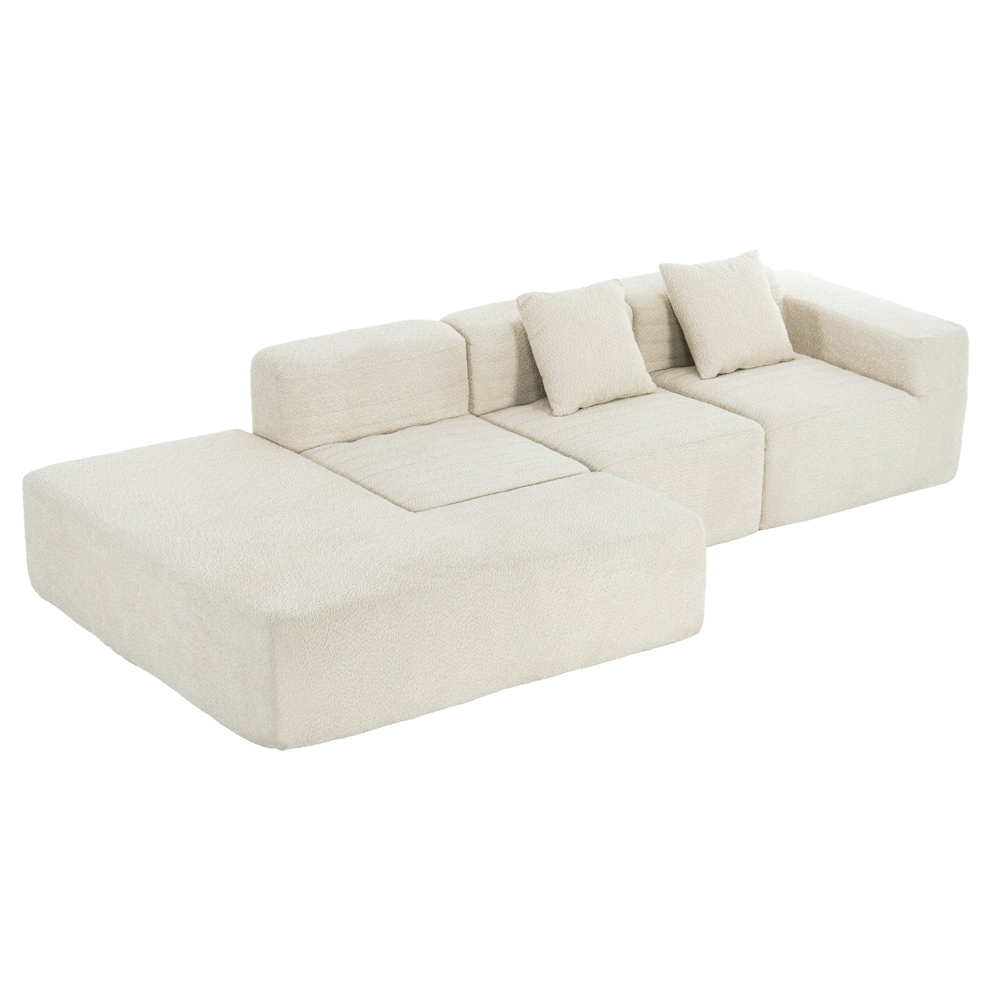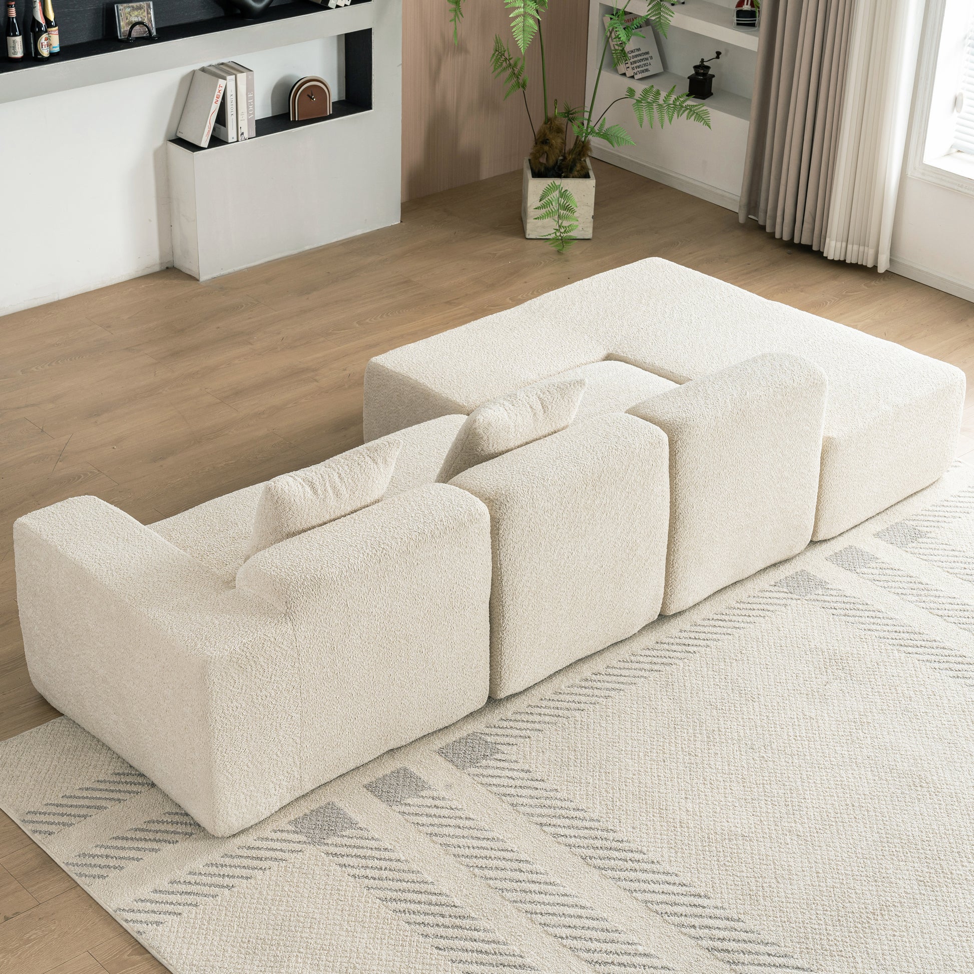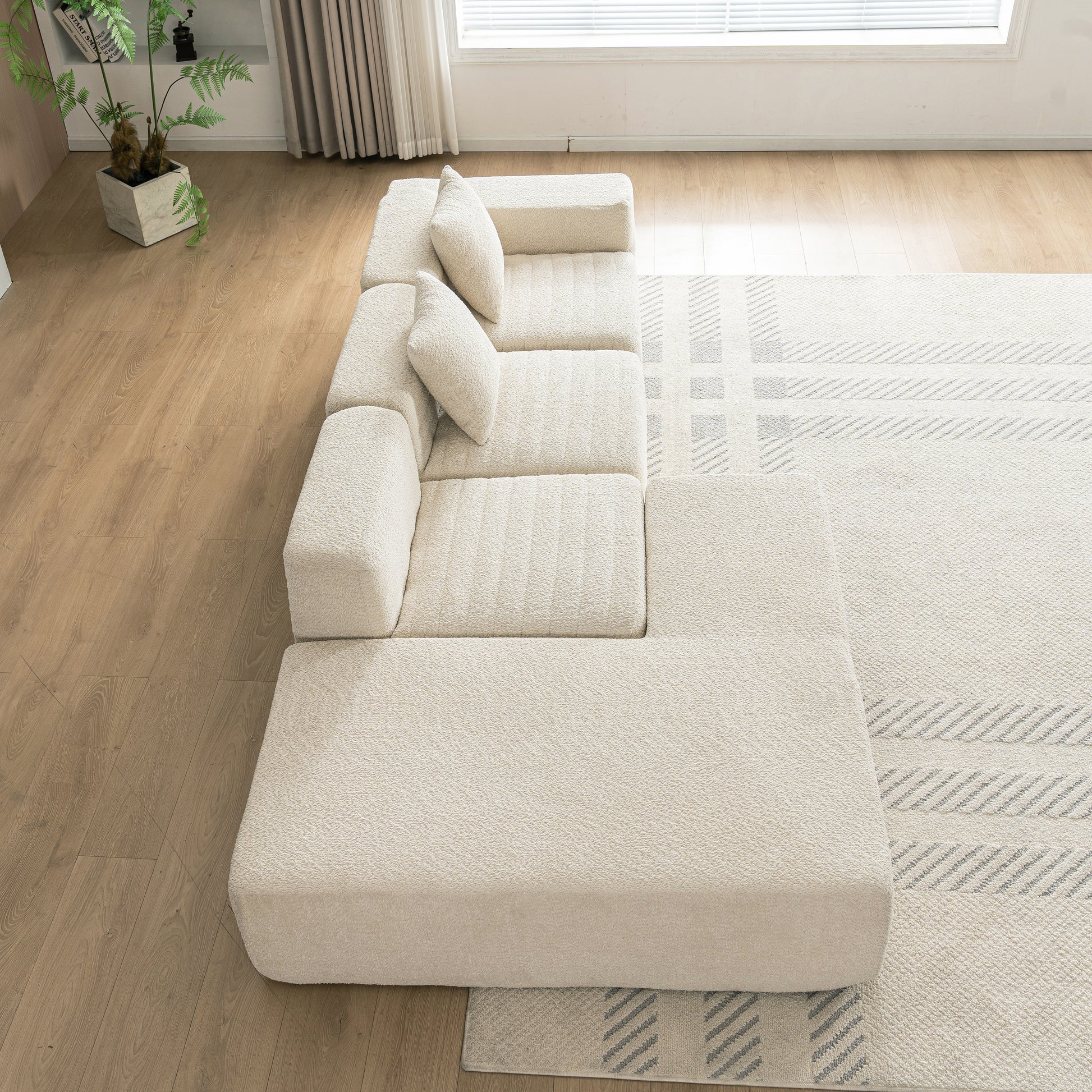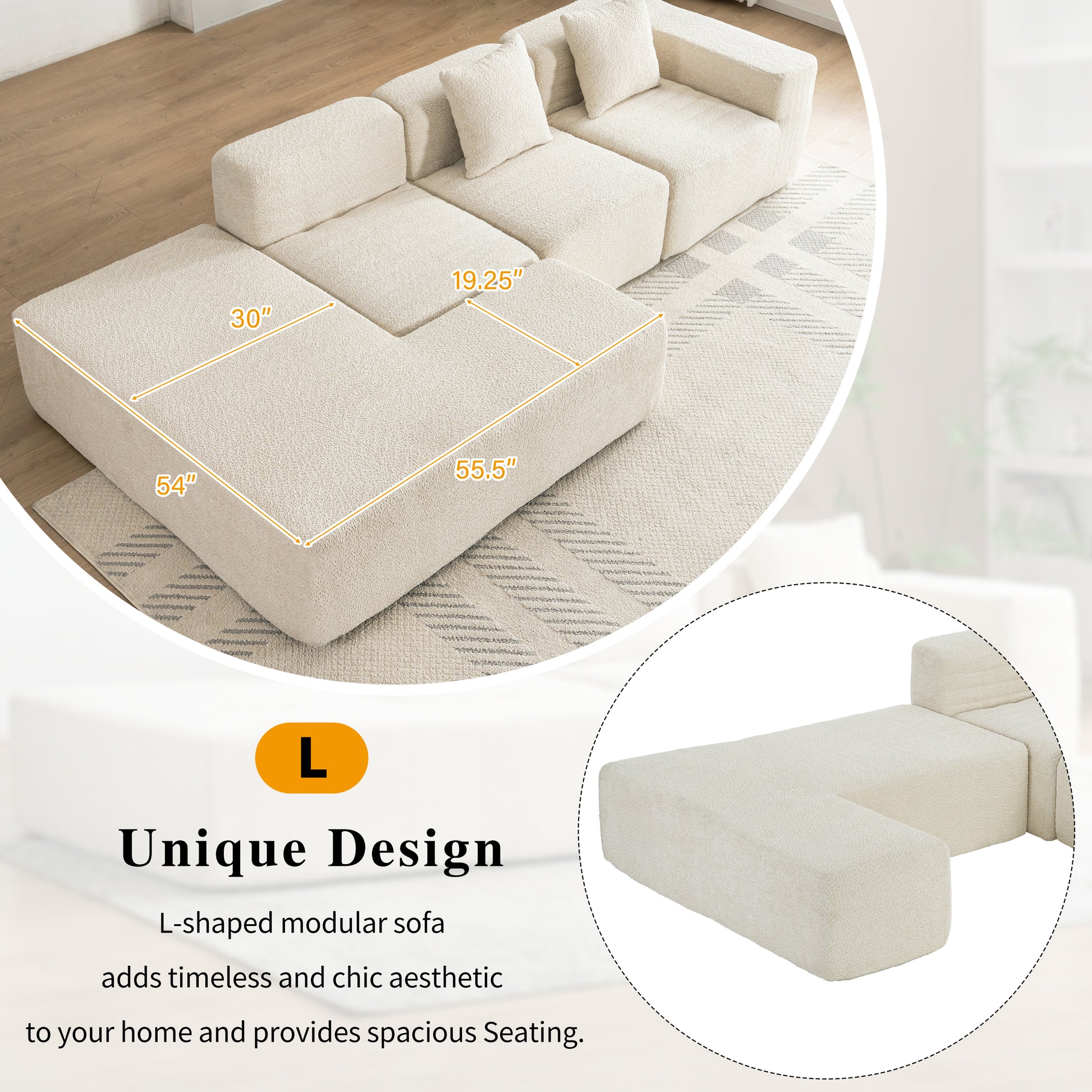 - Unmatched Comfort - This sectional sofa offers plush comfort and spacious seating. Upholstered in ultra-soft boucle fabric, the sofa comes with a pocket springs with high-density foam structure, ensuring long-lasting durability and consistently comfortable seating experience.