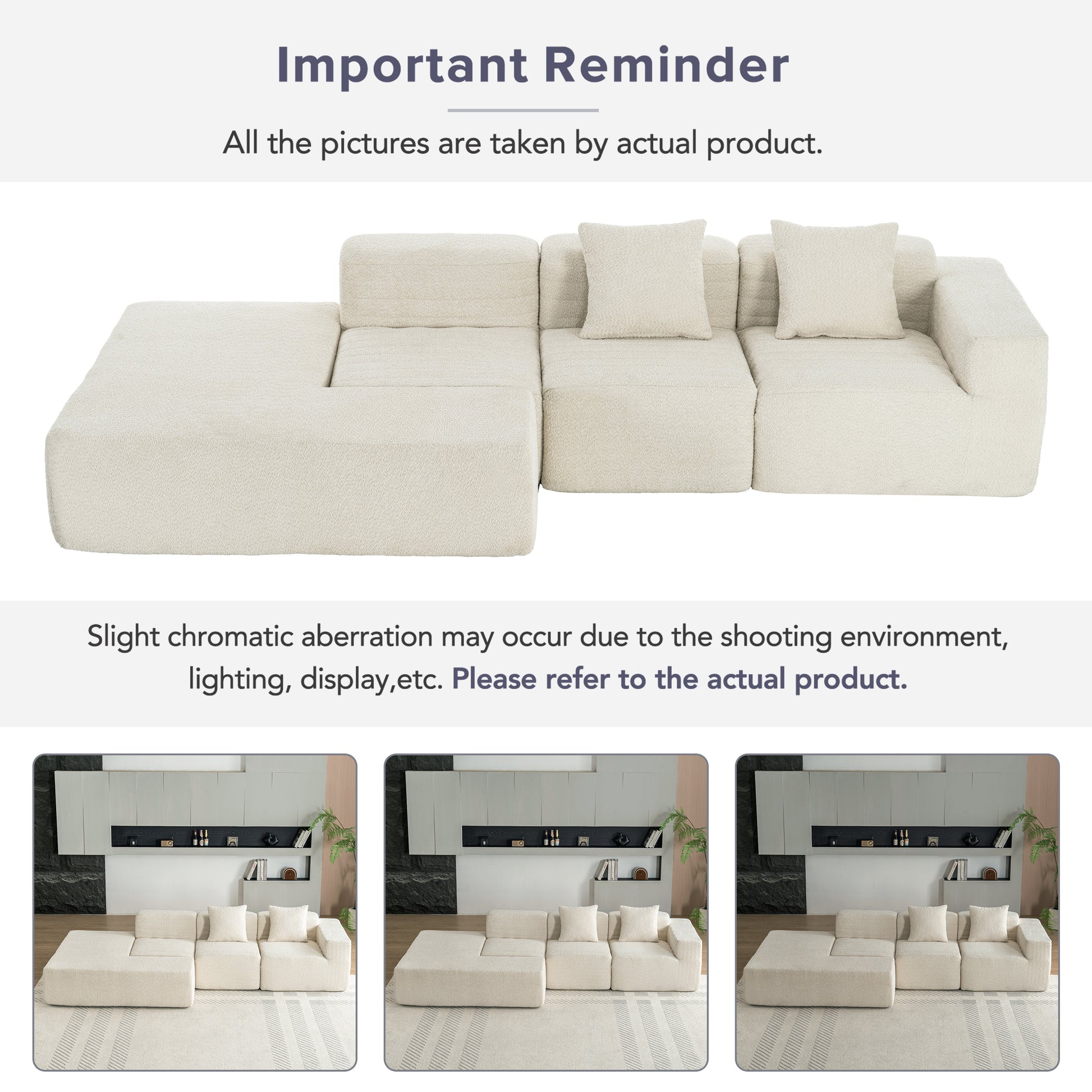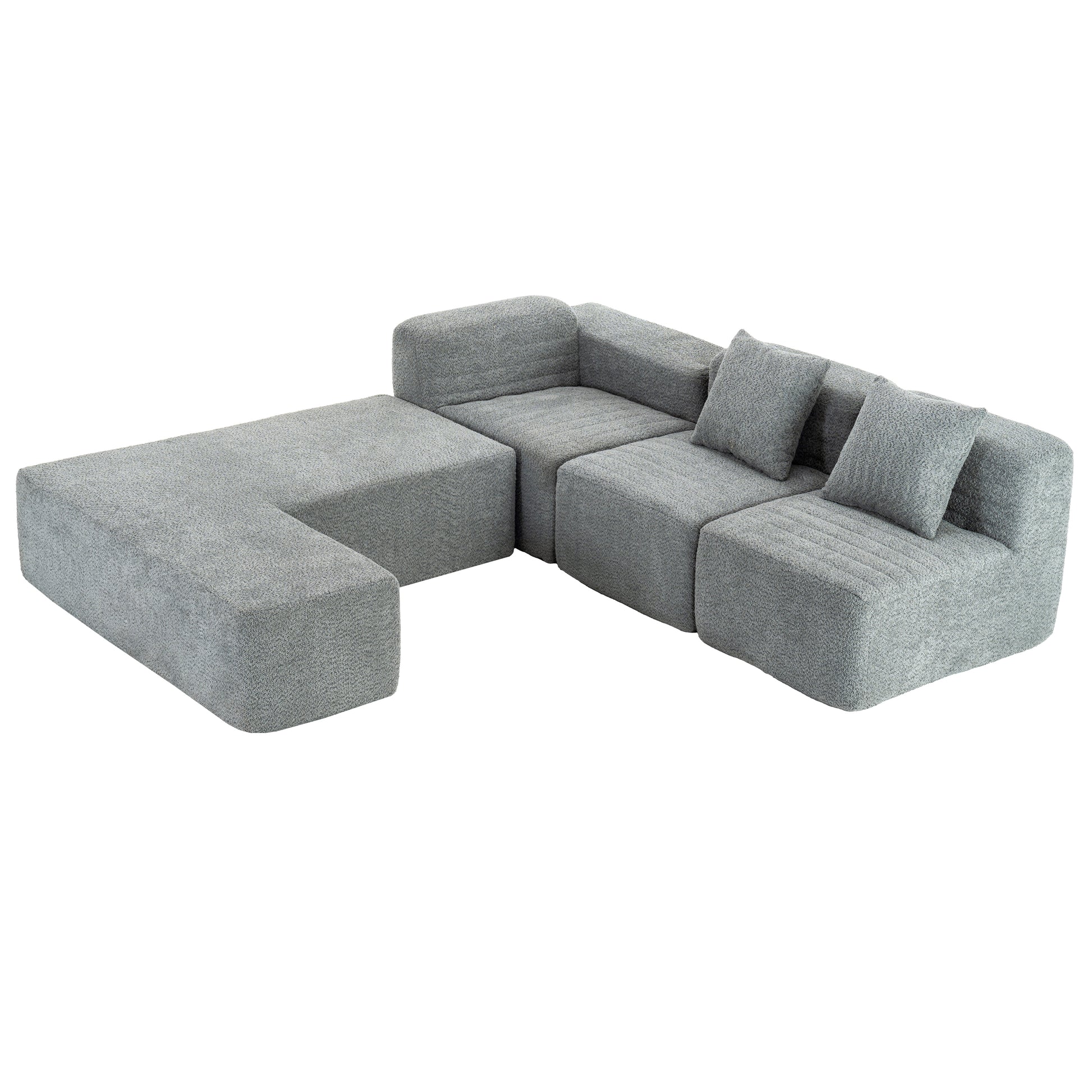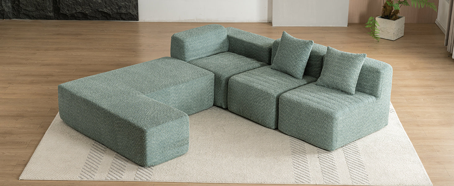 - Free Combination - This sofa consists of four individual modules, allowing you to easily alter the shape of the sectional by repositioning the modules to create a variety of configurations.