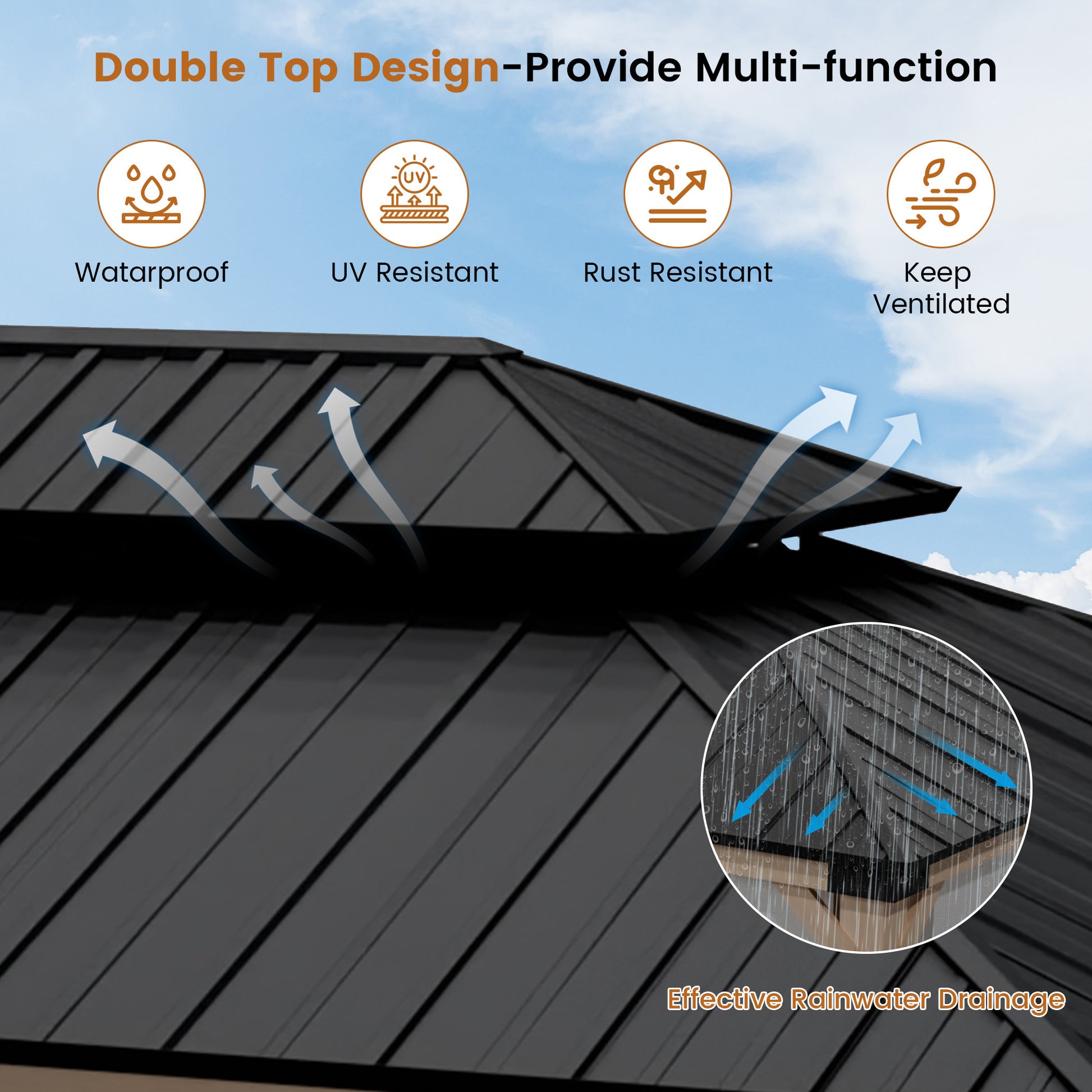 - Optimal Airflow: Dual-canopy design with a slanted roof and overhangs that facilitate quick water runoff and provide superior ventilation.