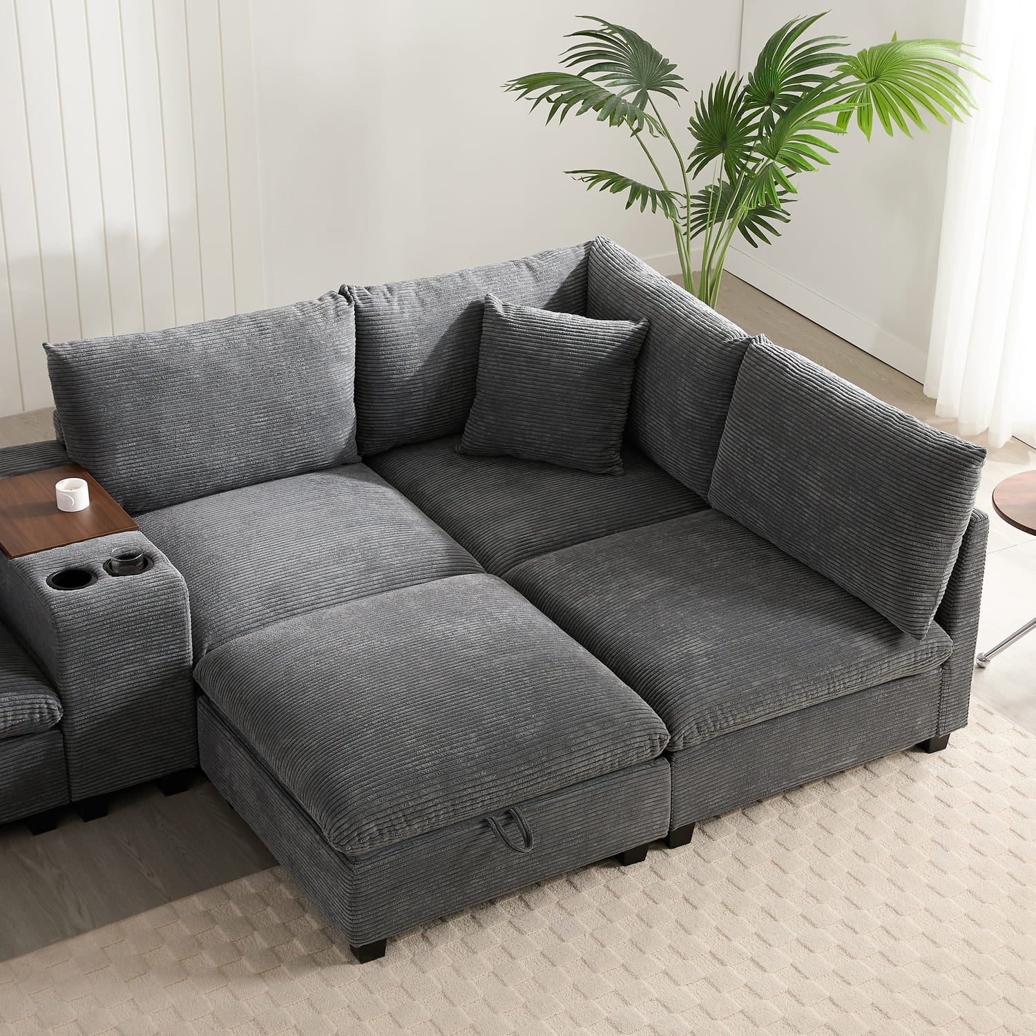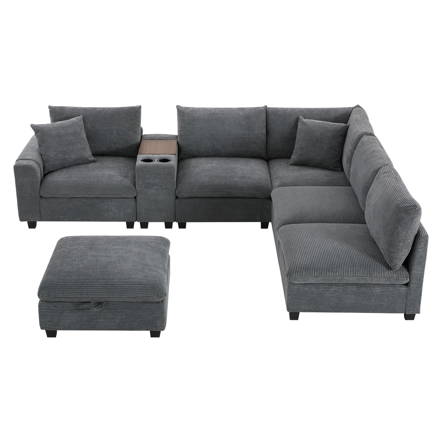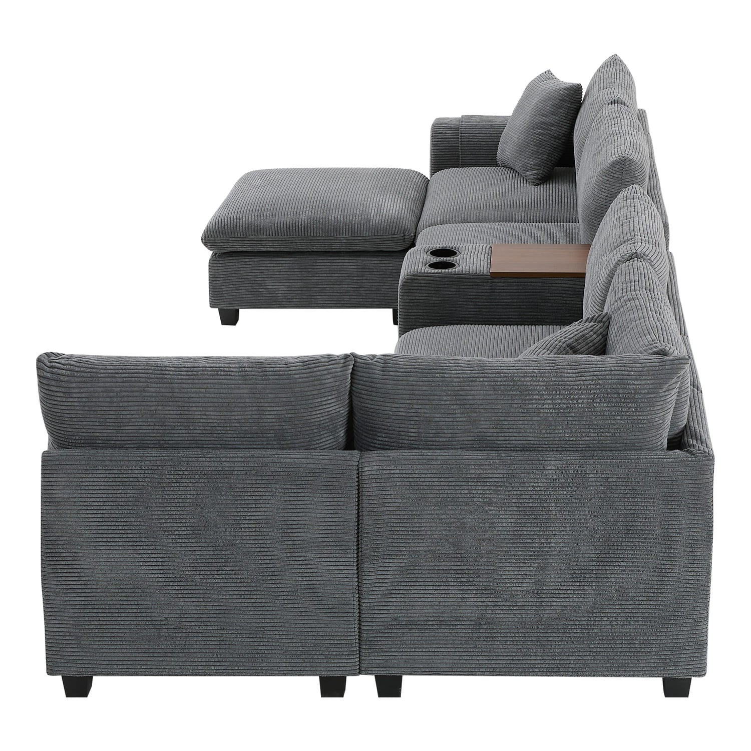 140'' Oversized Modular Sectional Sofa with Movable Storage Ottoman and Console,Removable Storage Pockets,Cup Holder,Wide Seat,USB Charger,6 Seat U Shaped Corduroy Couch for Living Room