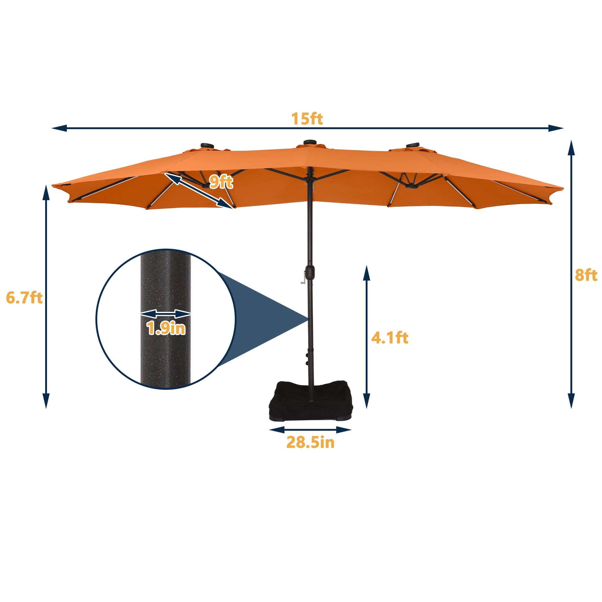 15 ft. Outdoor Rectangular Crank Market Umbrella Patio Umbrella in Beige with Solar Detachable Lights and Base£¬Orange