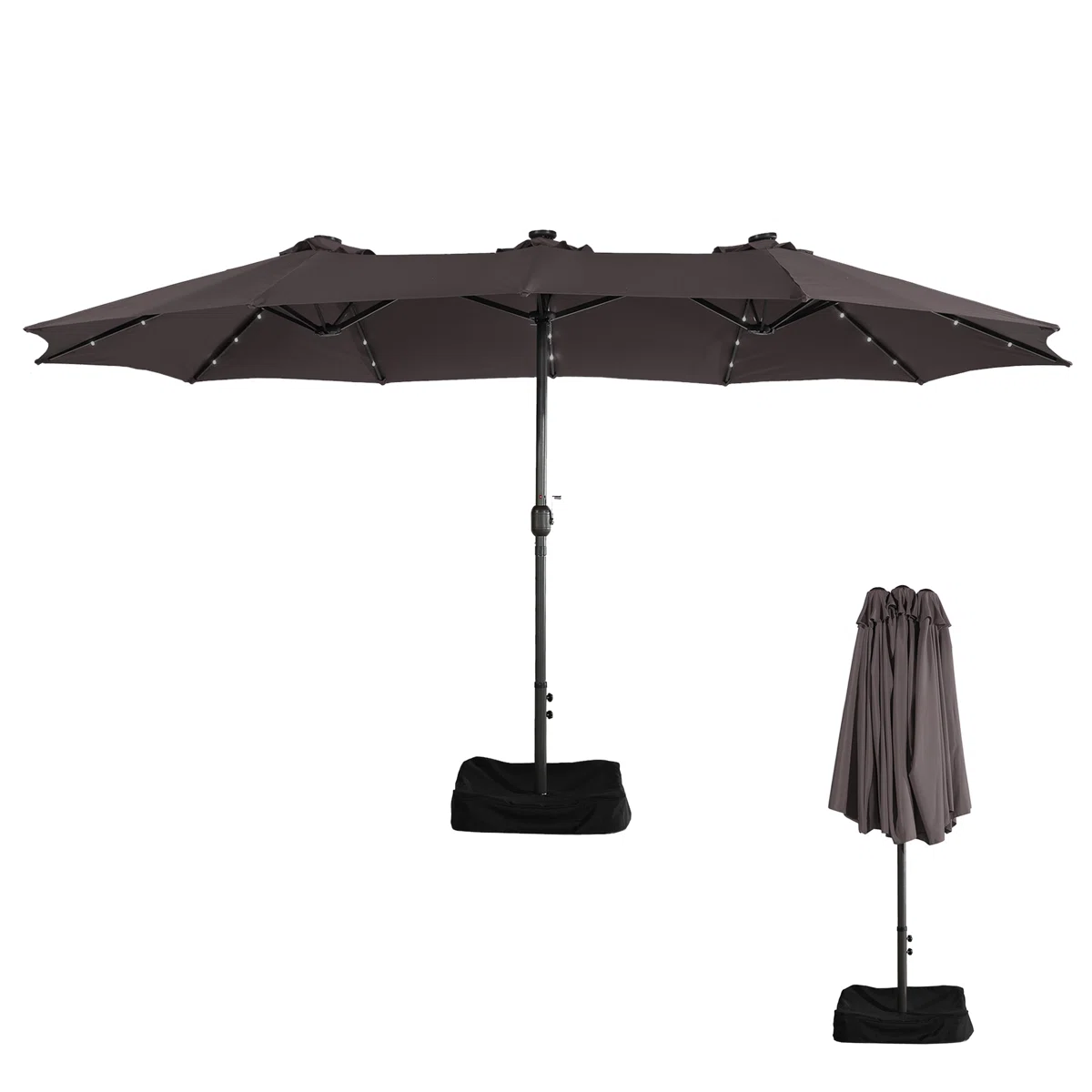 15ft patio umbrella with base included and led lights, outdoor market extra large umbrella, outdoor patio table umbrella, pool umbrella for deck, pool, garden, lawn,Coffee