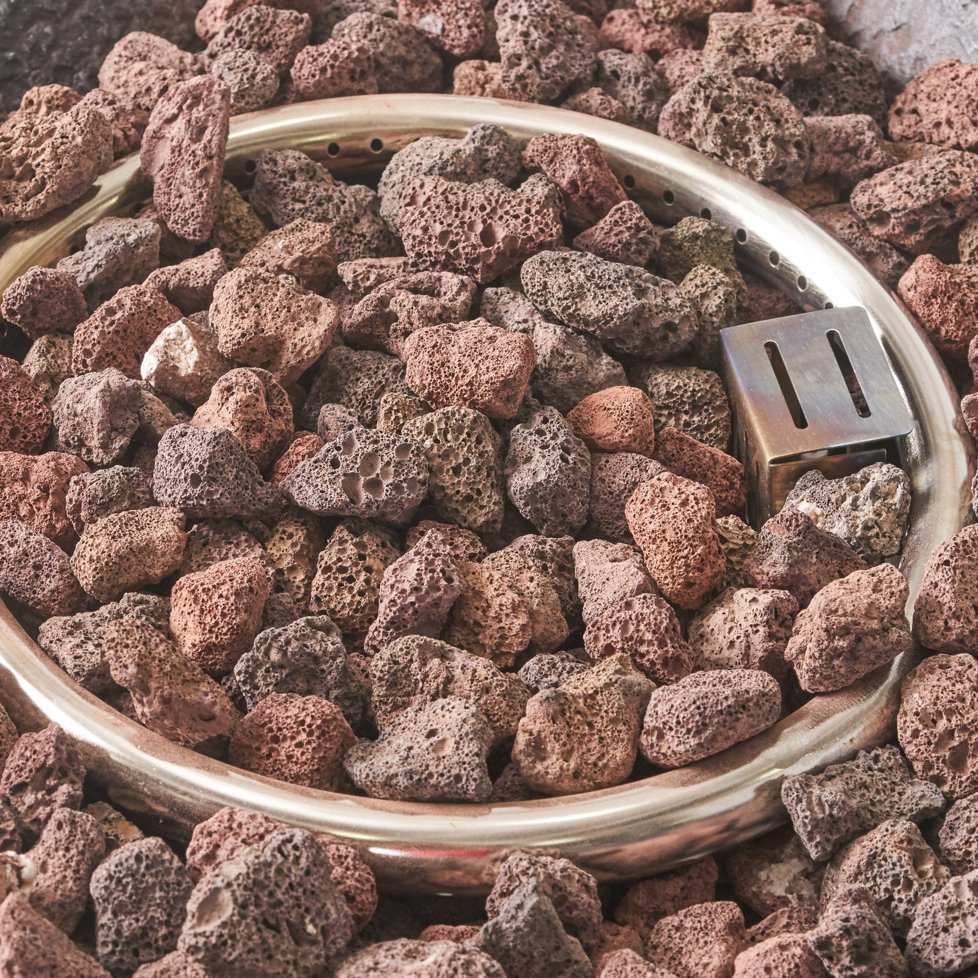 - Featuring a beautiful column shape and a natural stone finish, this accessory offers both warmth and excellent style for all to enjoy. Complete with brilliant lava rocks, this accent piece is an excellent addition to any outdoor set.
