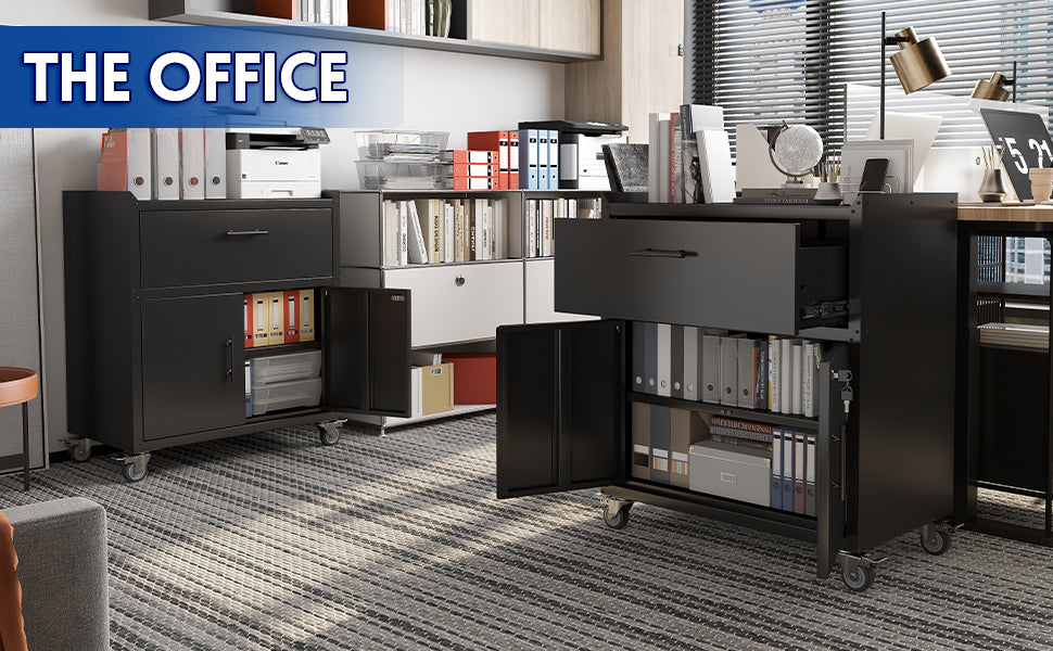 - [Lockable & Safe] The rolling storage cabinet is designed with 1 lock on the door with 2 keys to secure your items in the cabinet