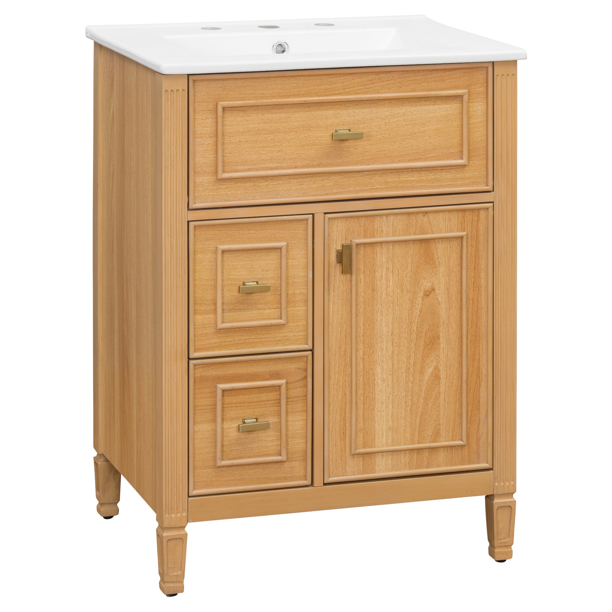 24" Bathroom Vanity with Sink, Bathroom Vanity Cabinet with One Flip Drawer and Two Drawers, Adjustable Shelf, Solid Wood and MDF, Wood