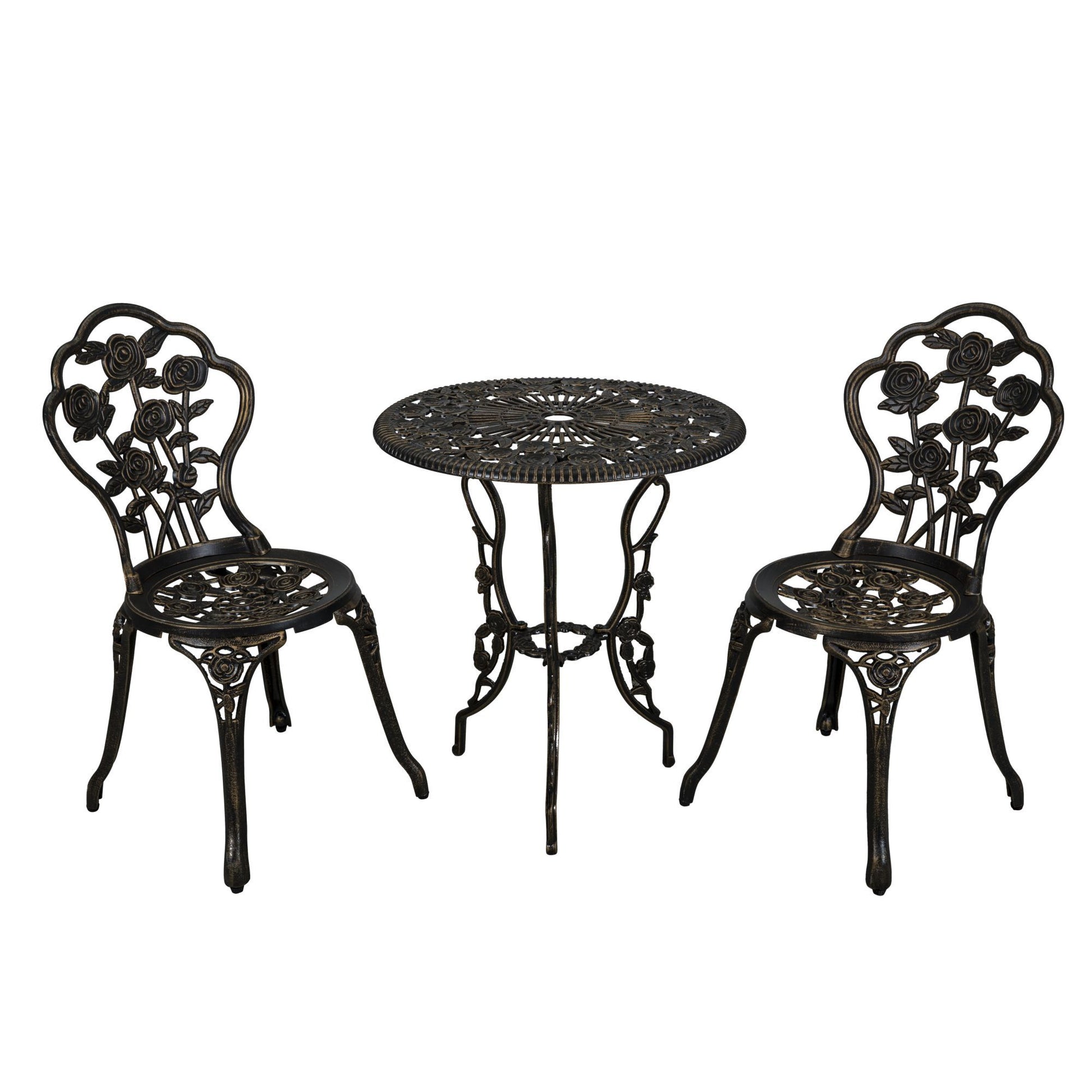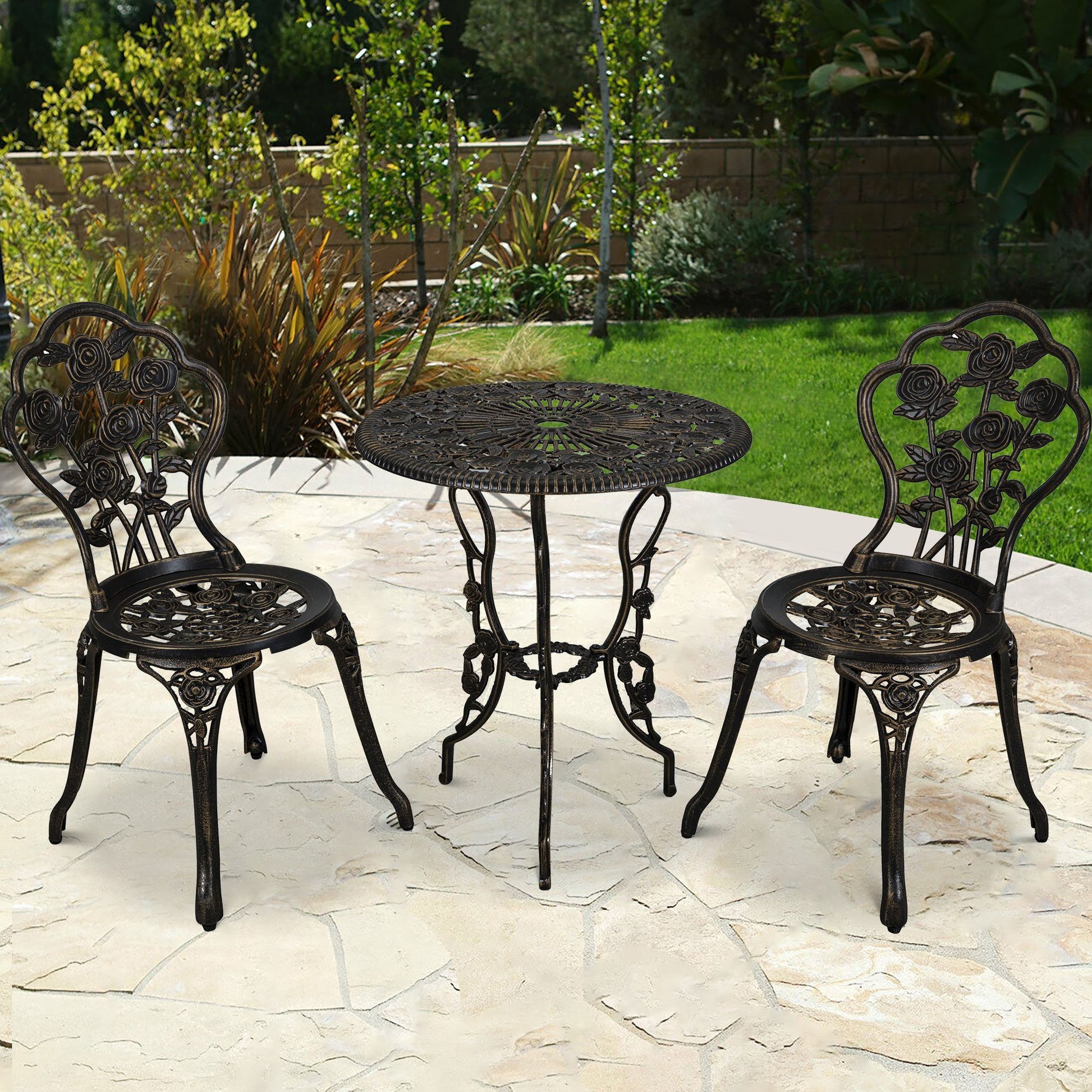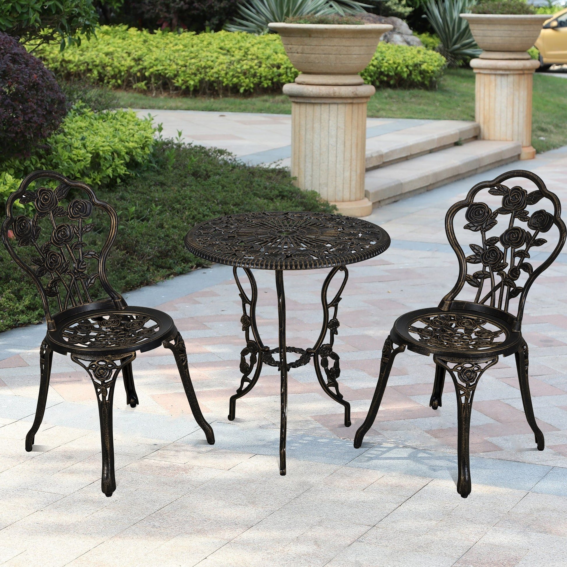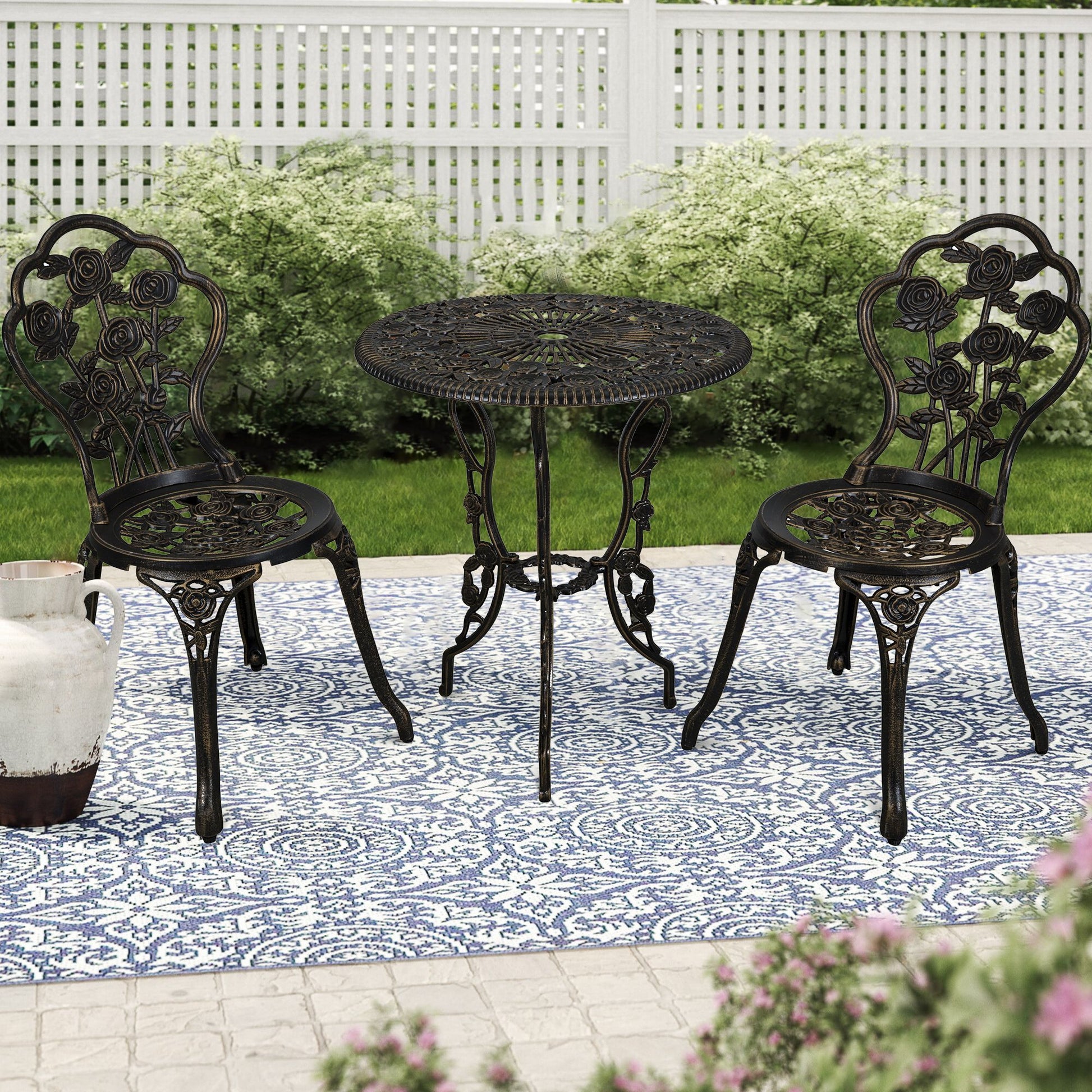 3-Piece Aluminum Round Outdoor Bistro Set with Umbrella Hole