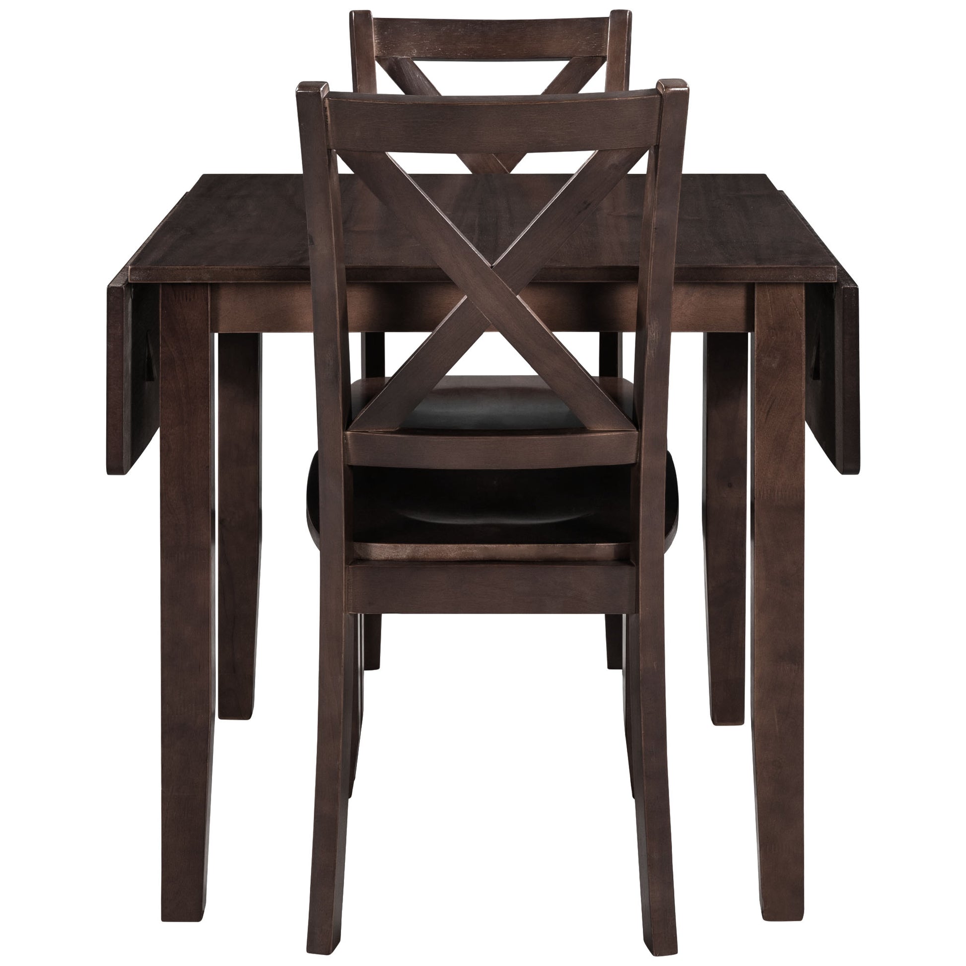 3-Piece Wood Drop Leaf Breakfast Nook Dining Table Set with 2 X-back Chairs for Small Places, Espresso