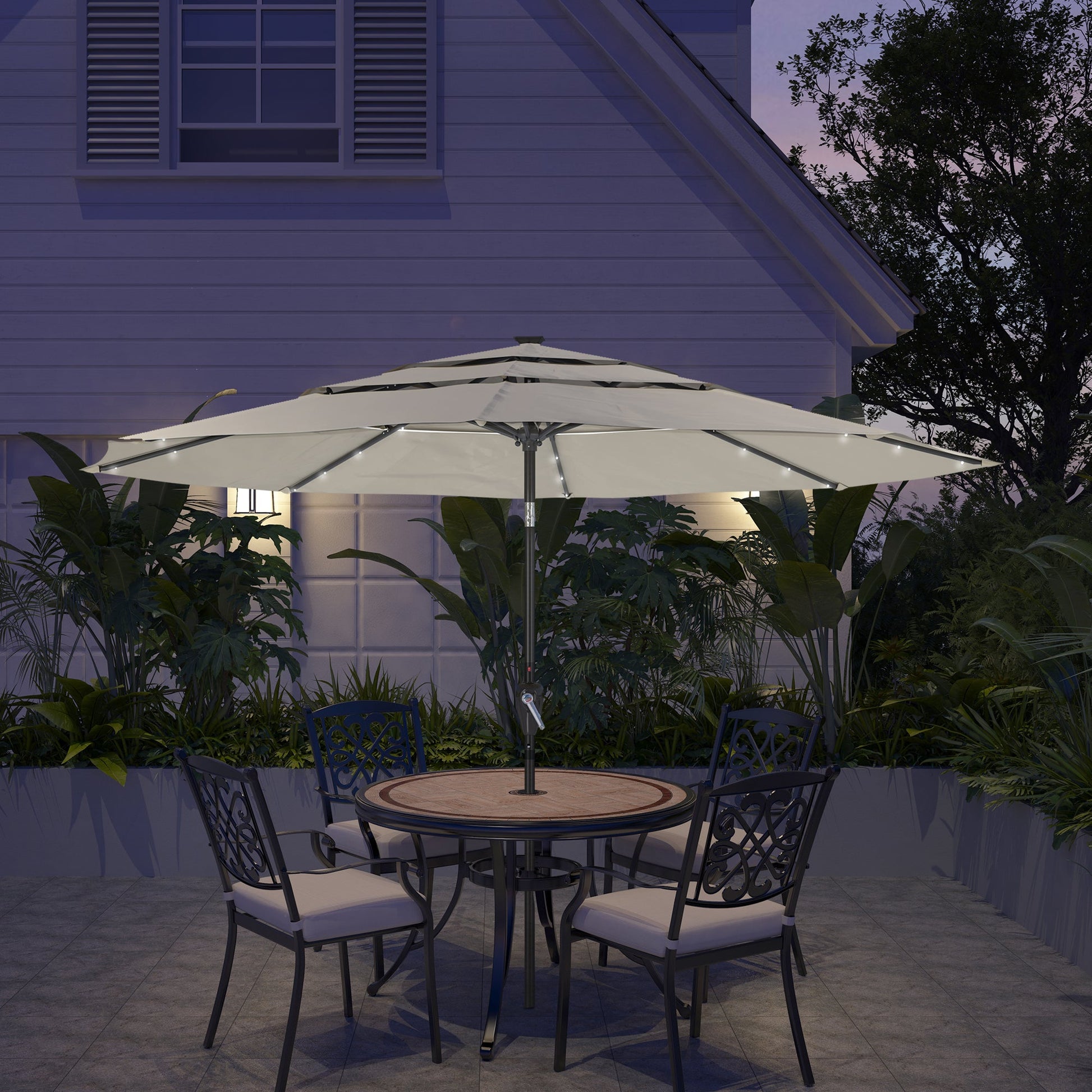3-Tier Patio Umbrella with Led Lights 10ft Outdoor Patio Table Umbrella Large Umbrella Pool Umbrella For Deck, Pool, Garden, Patio,Beige