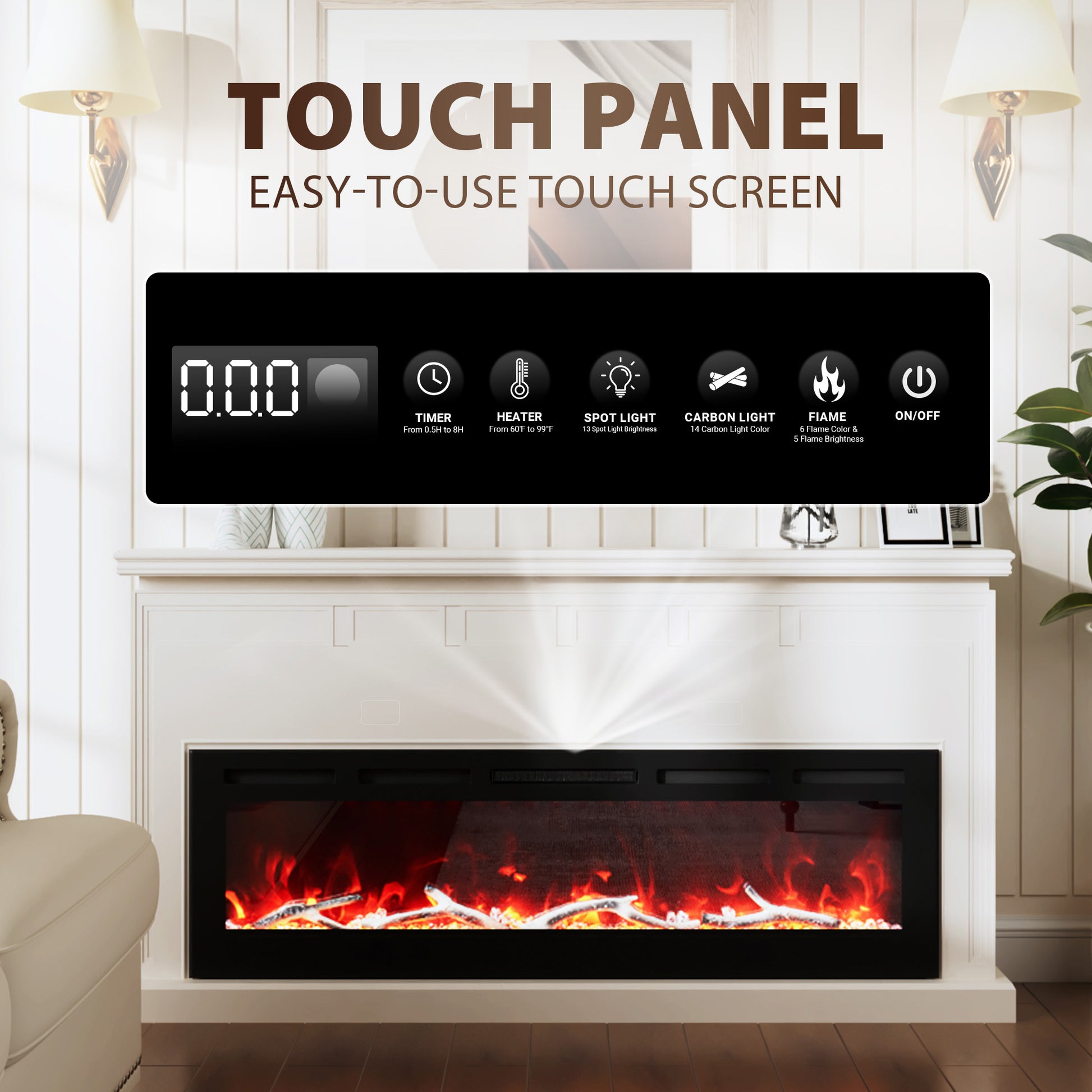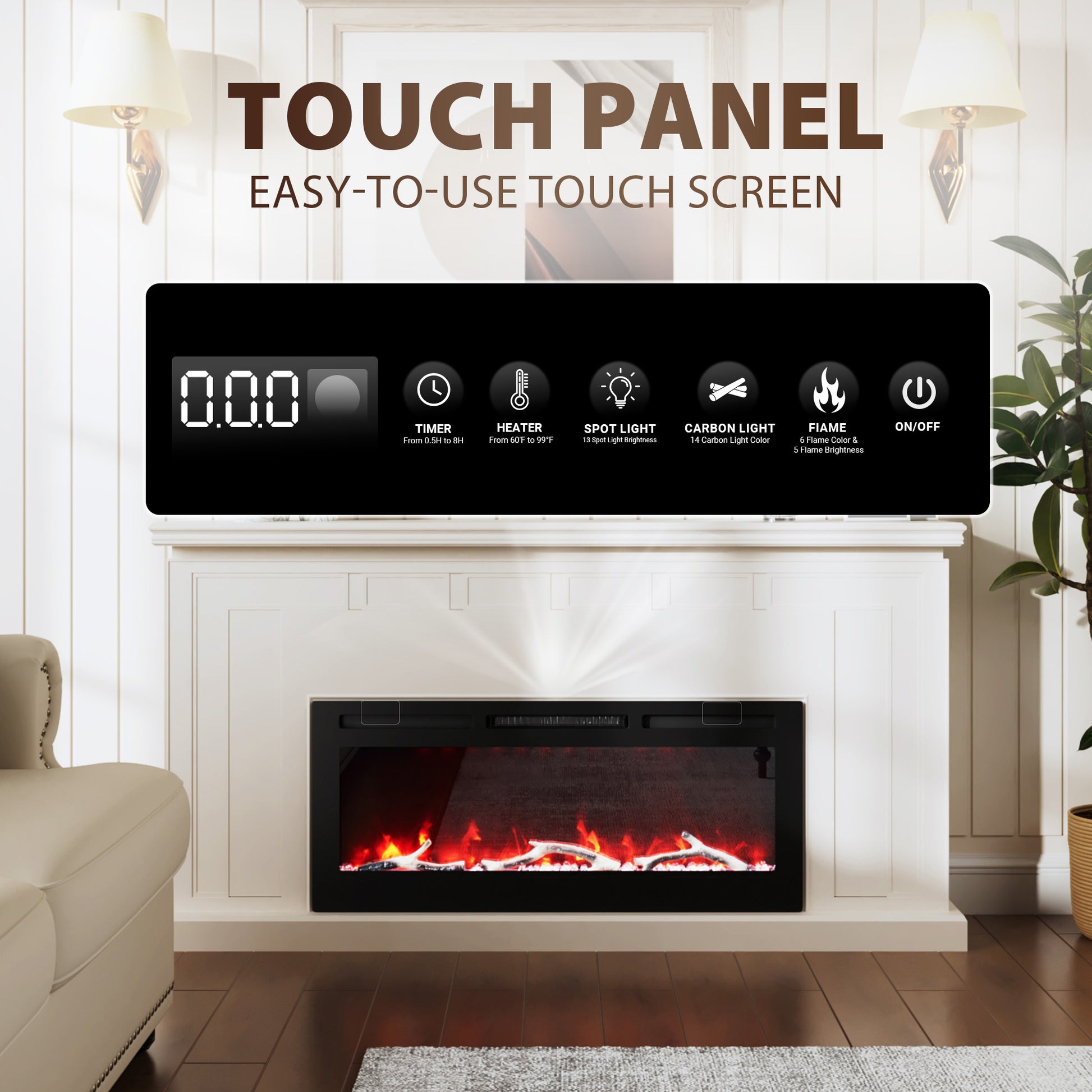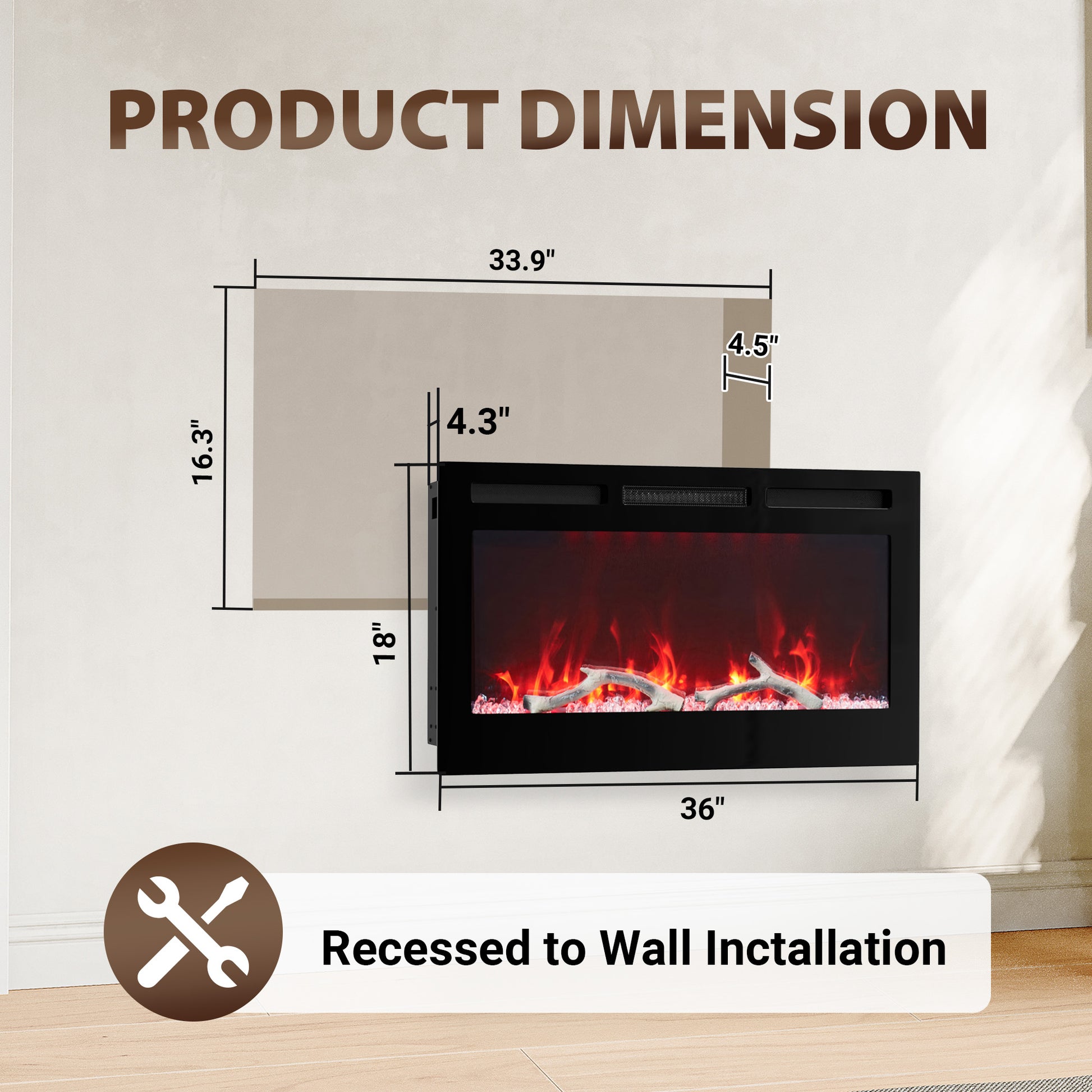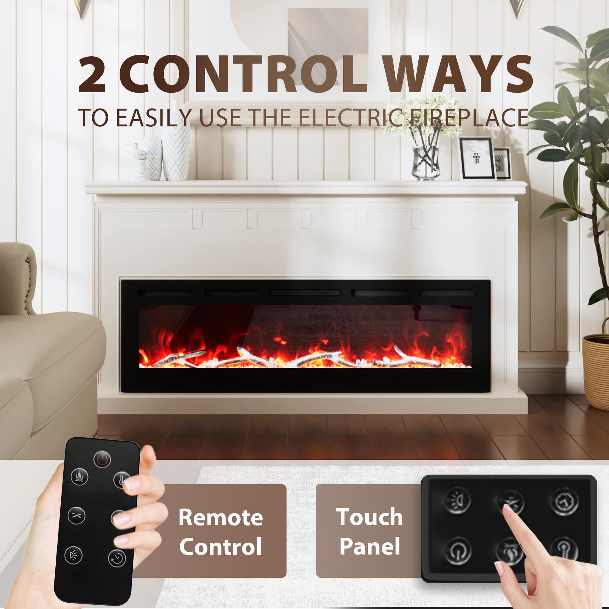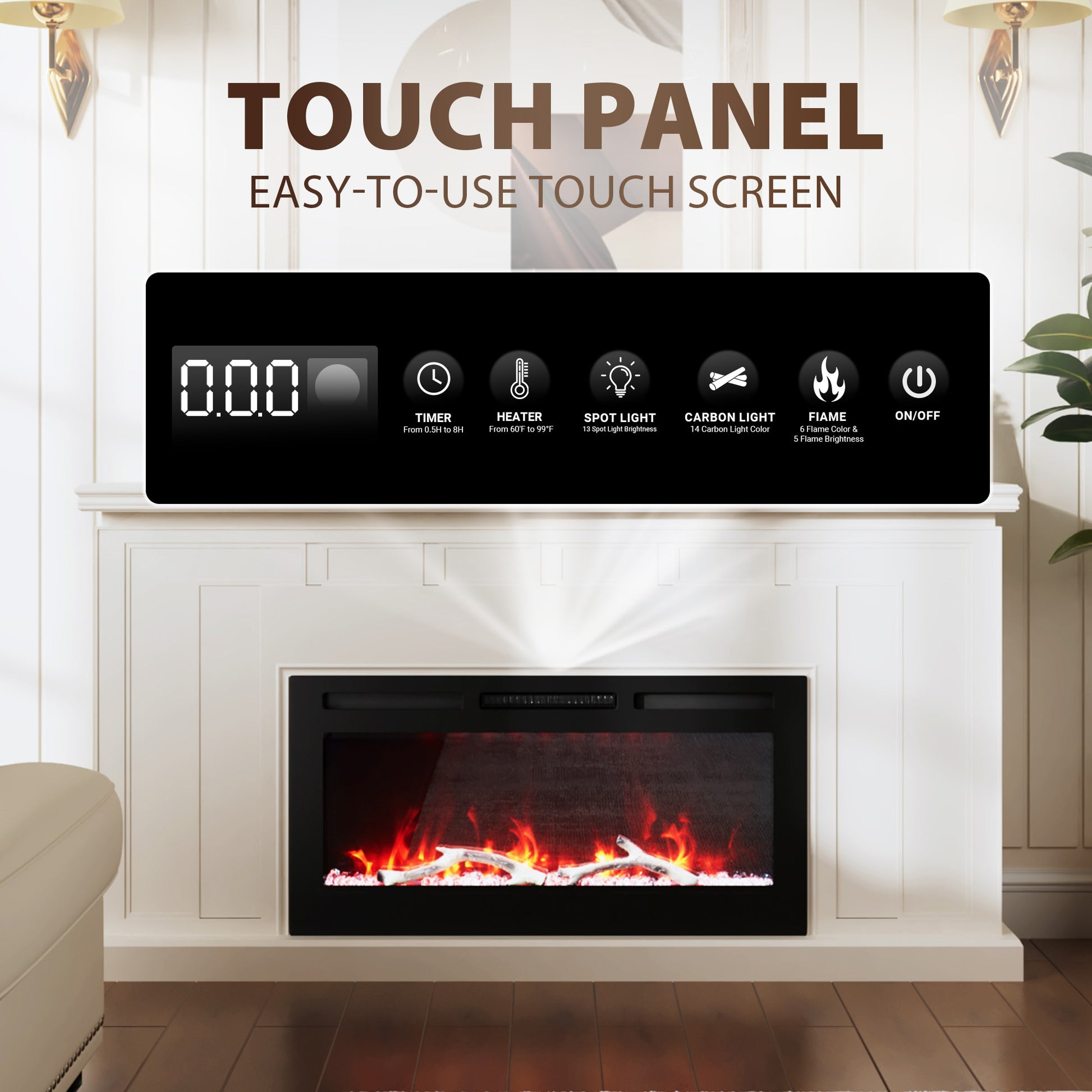 This electric fireplace is designed for recessed in-wall/wall-mounted installation. Enjoy the warmth and ambiance of a traditional fireplace with this sleek rectangular design and the modern black scheme of an electric fireplace. It has realistic flames that look like real fire. Multiple flame settings radiate a soft, soft glow until it burns intensely. Control the heat and flames with the remote control or touch screen. Bring more warmth and interest to your room, upgrade your home with this electric fireplace today and add texture to any living room, bedroom, library or hallway.