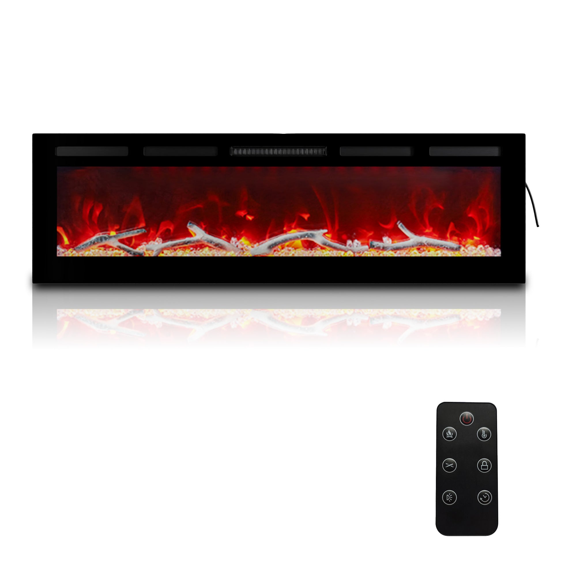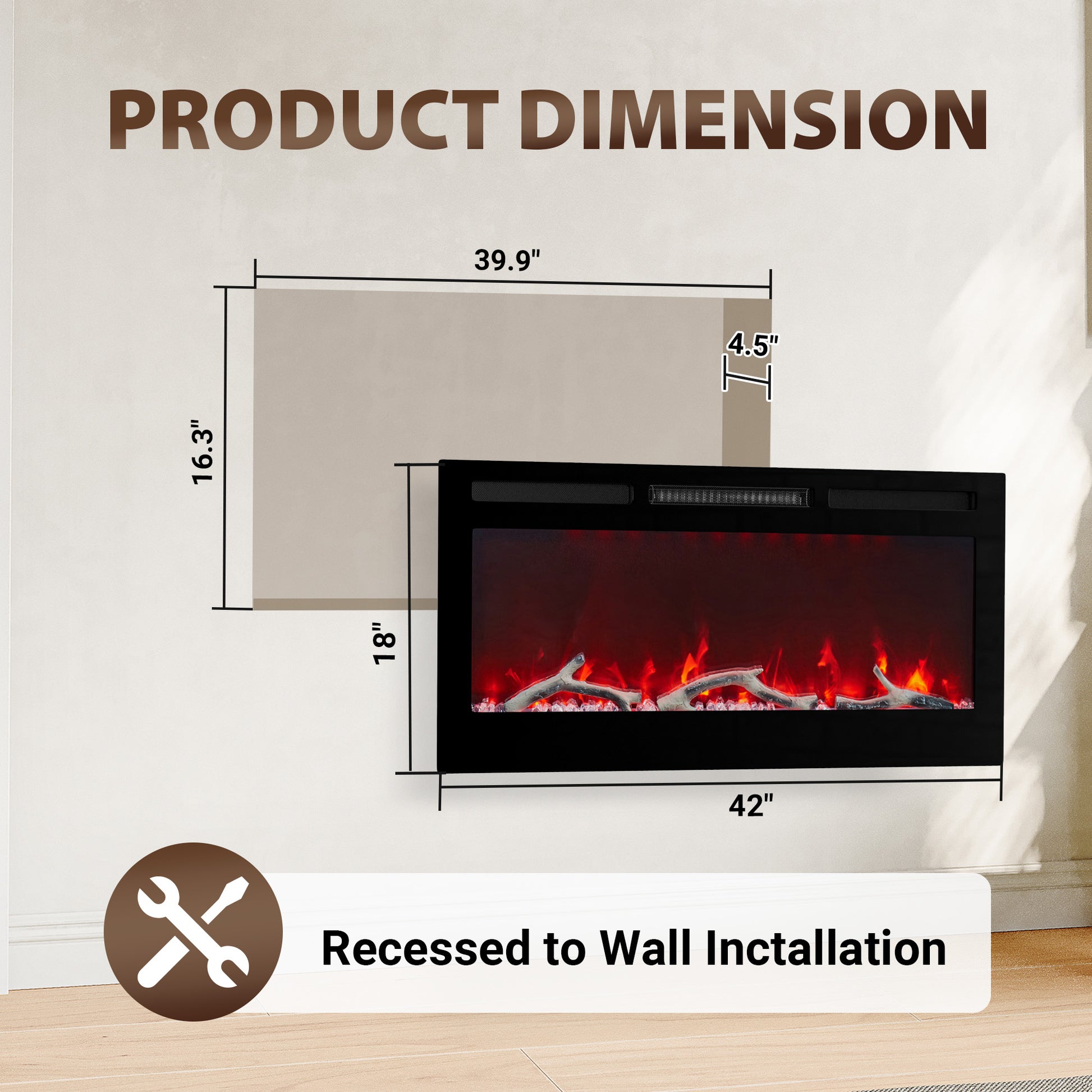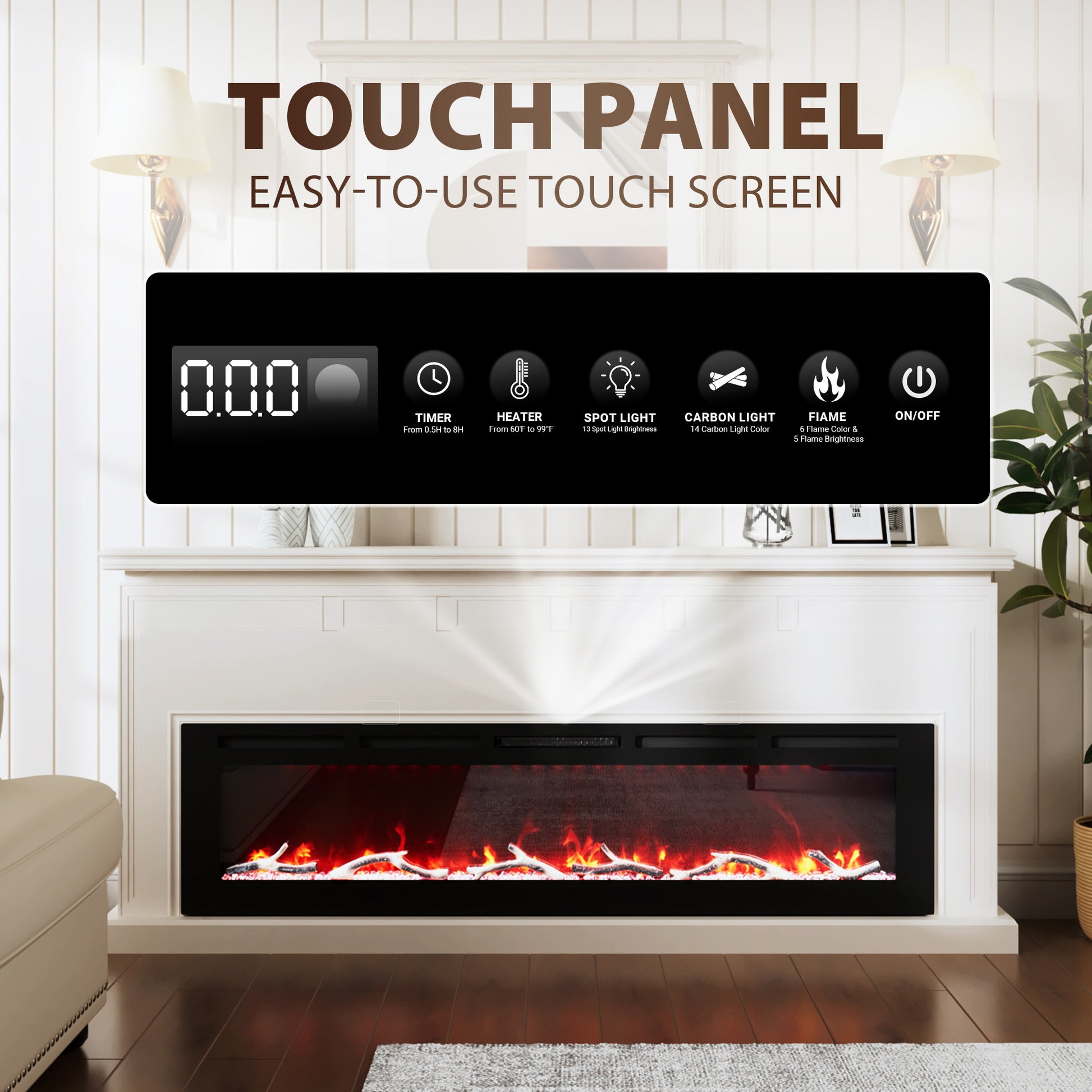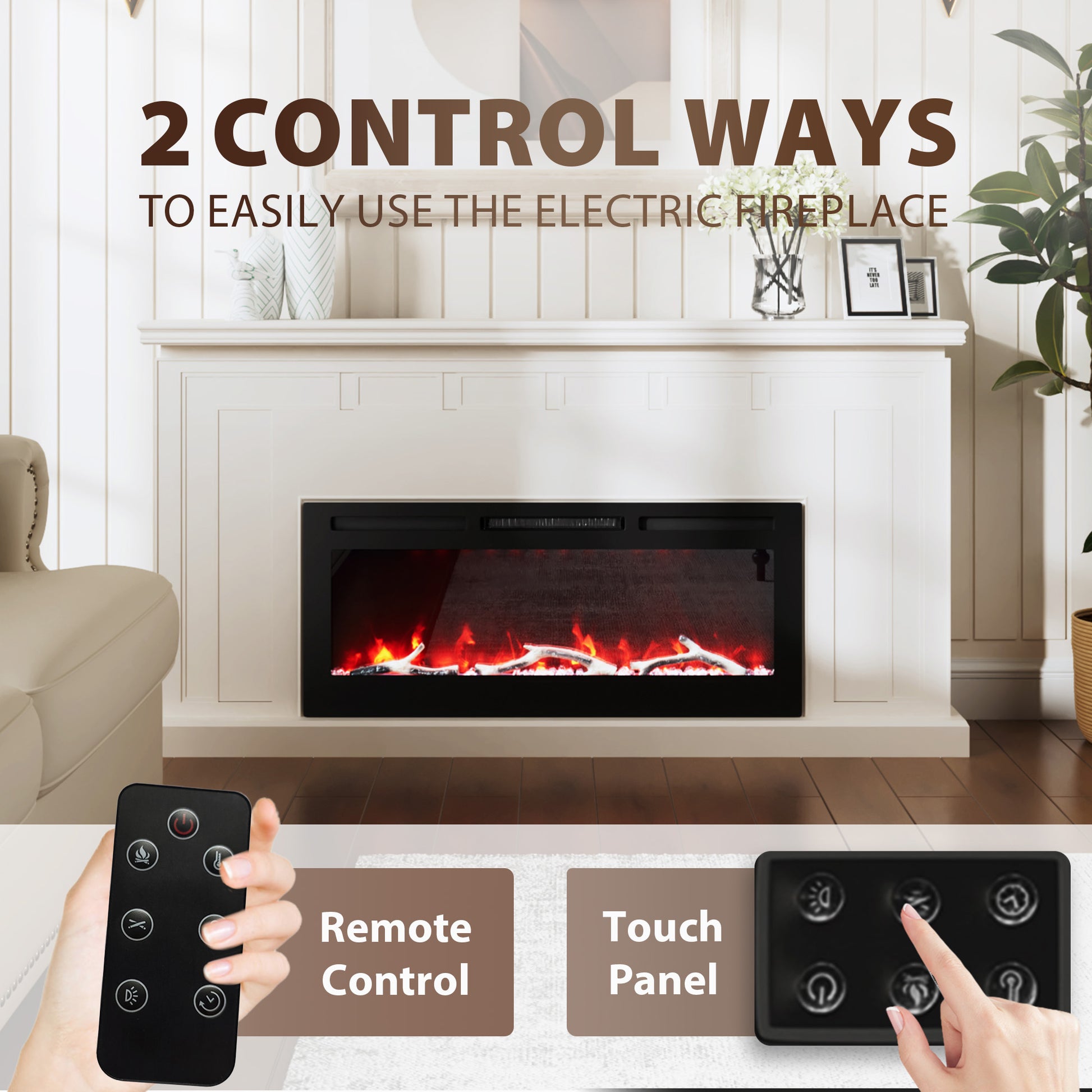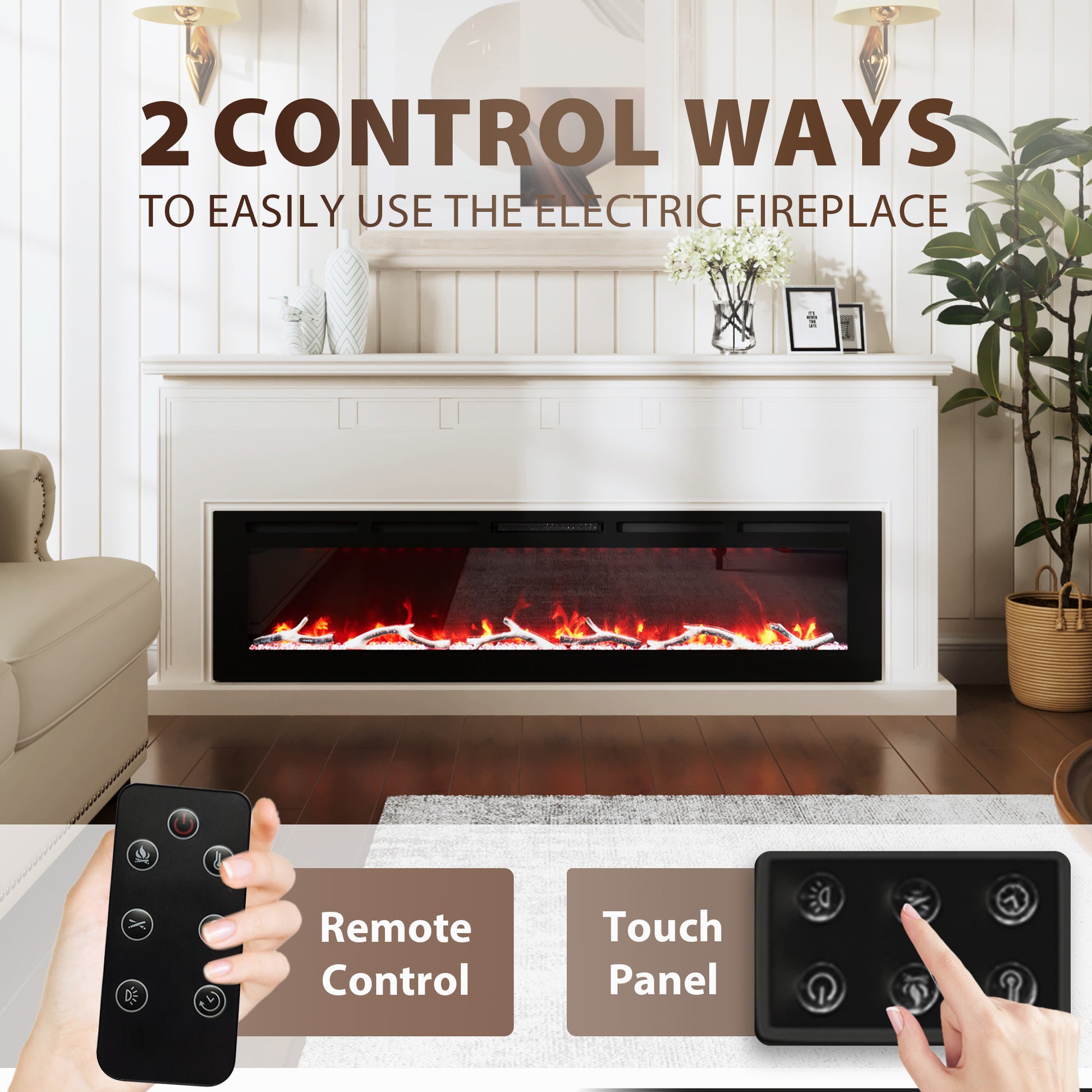 This electric fireplace is designed for recessed in-wall/wall-mounted installation. Enjoy the warmth and ambiance of a traditional fireplace with this sleek rectangular design and the modern black scheme of an electric fireplace. It has realistic flames that look like real fire. Multiple flame settings radiate a soft, soft glow until it burns intensely. Control the heat and flames with the remote control or touch screen. Bring more warmth and interest to your room, upgrade your home with this electric fireplace today and add texture to any living room, bedroom, library or hallway.