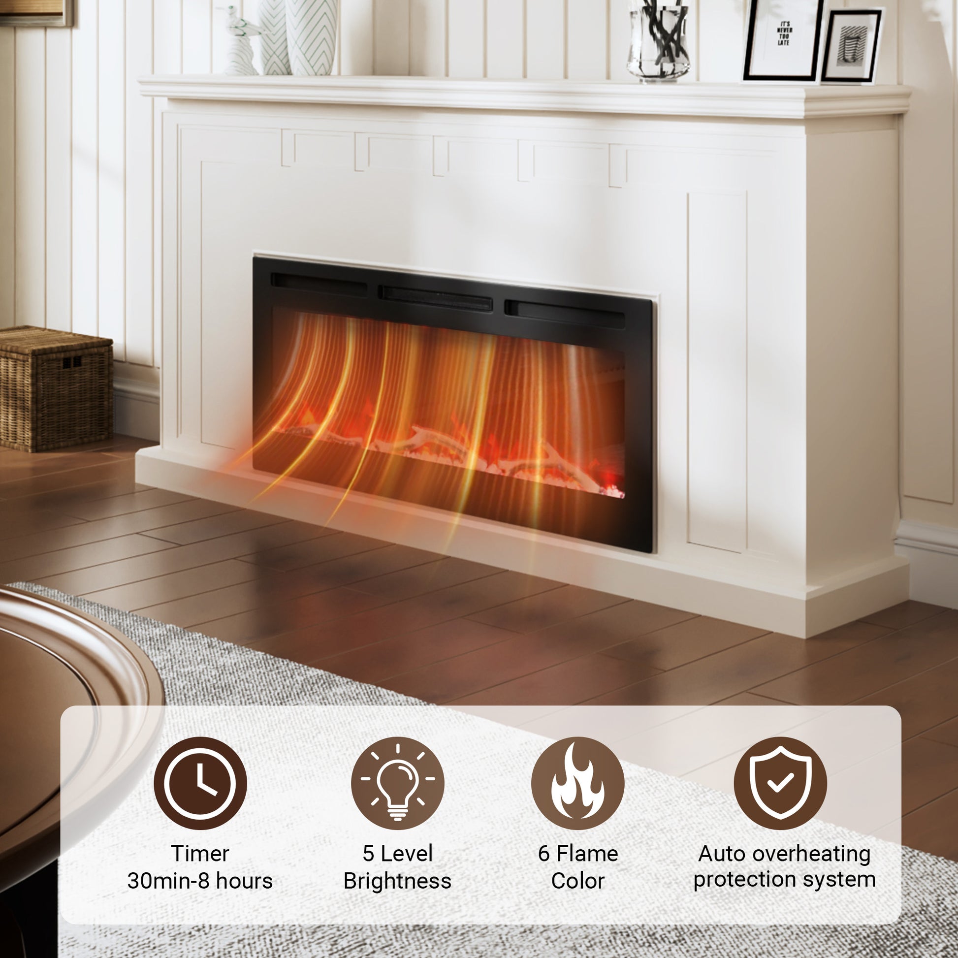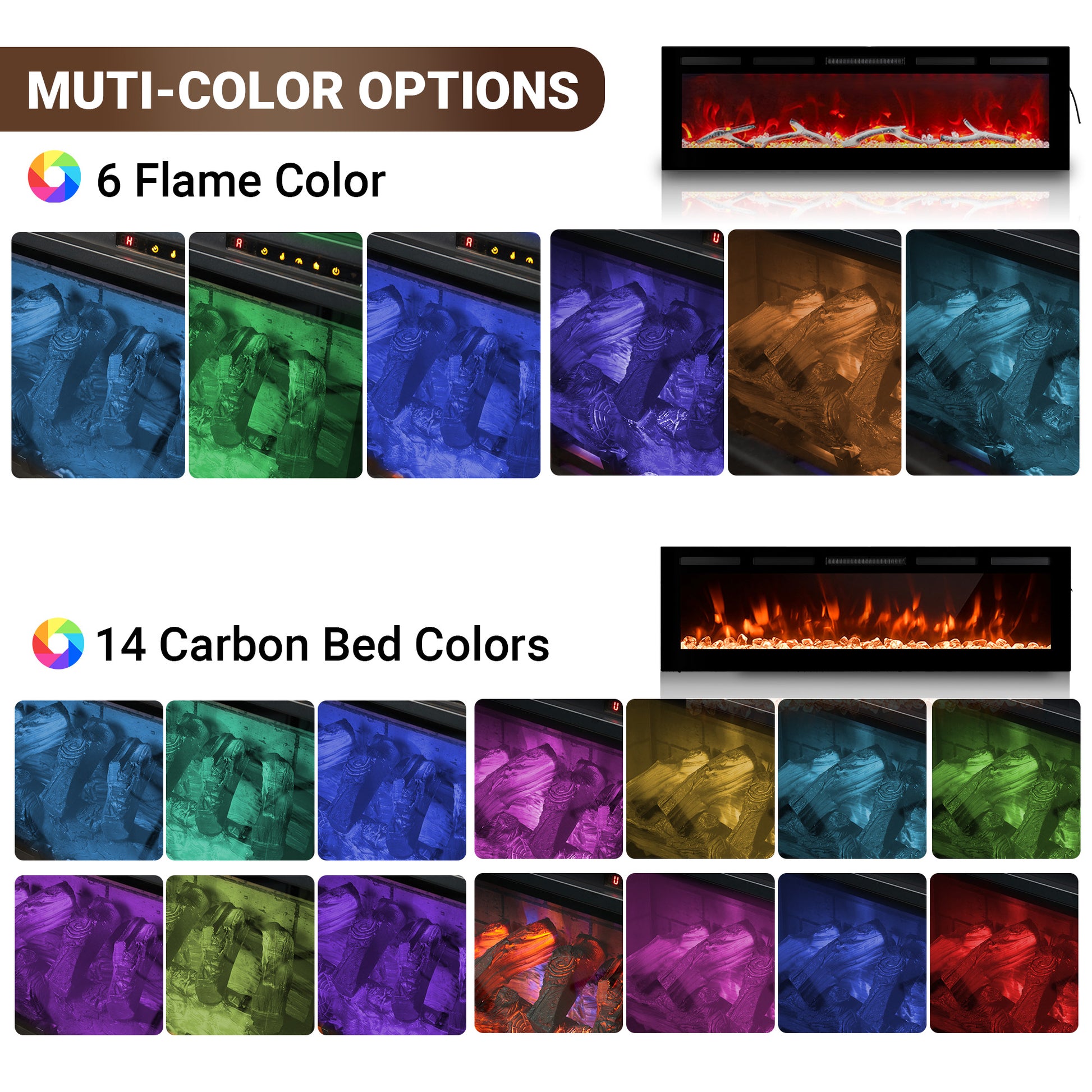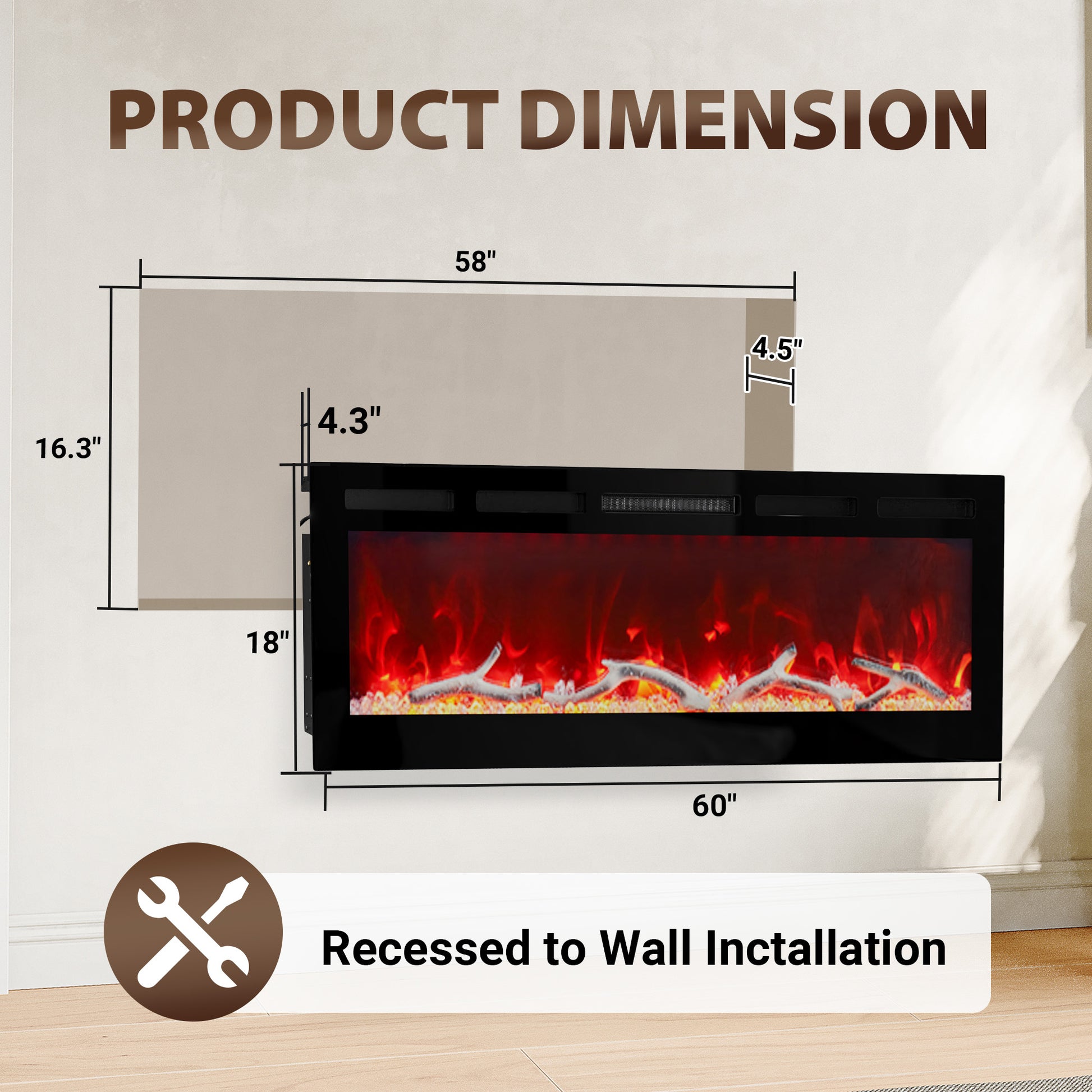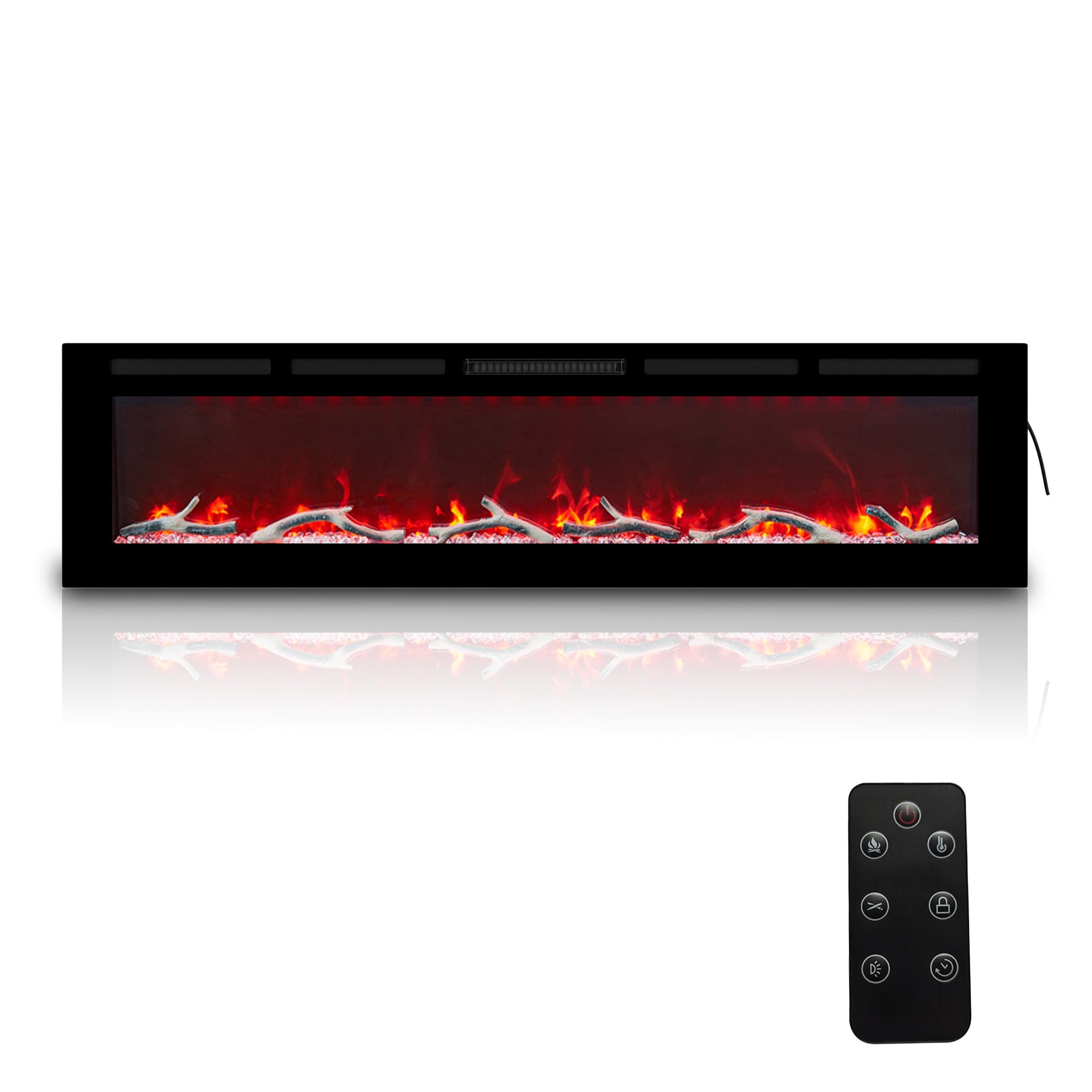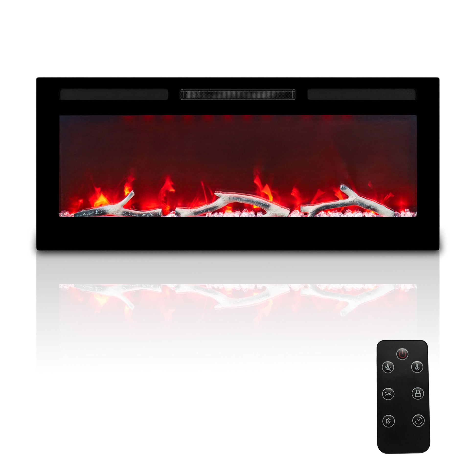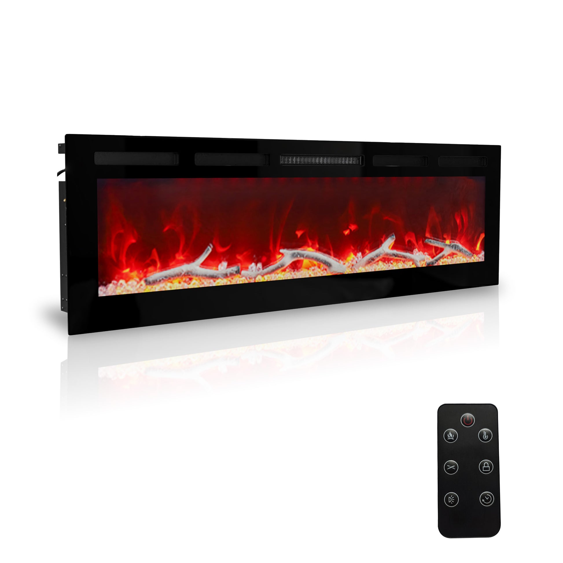 This electric fireplace is designed for recessed in-wall/wall-mounted installation. Enjoy the warmth and ambiance of a traditional fireplace with this sleek rectangular design and the modern black scheme of an electric fireplace. It has realistic flames that look like real fire. Multiple flame settings radiate a soft, soft glow until it burns intensely. Control the heat and flames with the remote control or touch screen. Bring more warmth and interest to your room, upgrade your home with this electric fireplace today and add texture to any living room, bedroom, library or hallway.