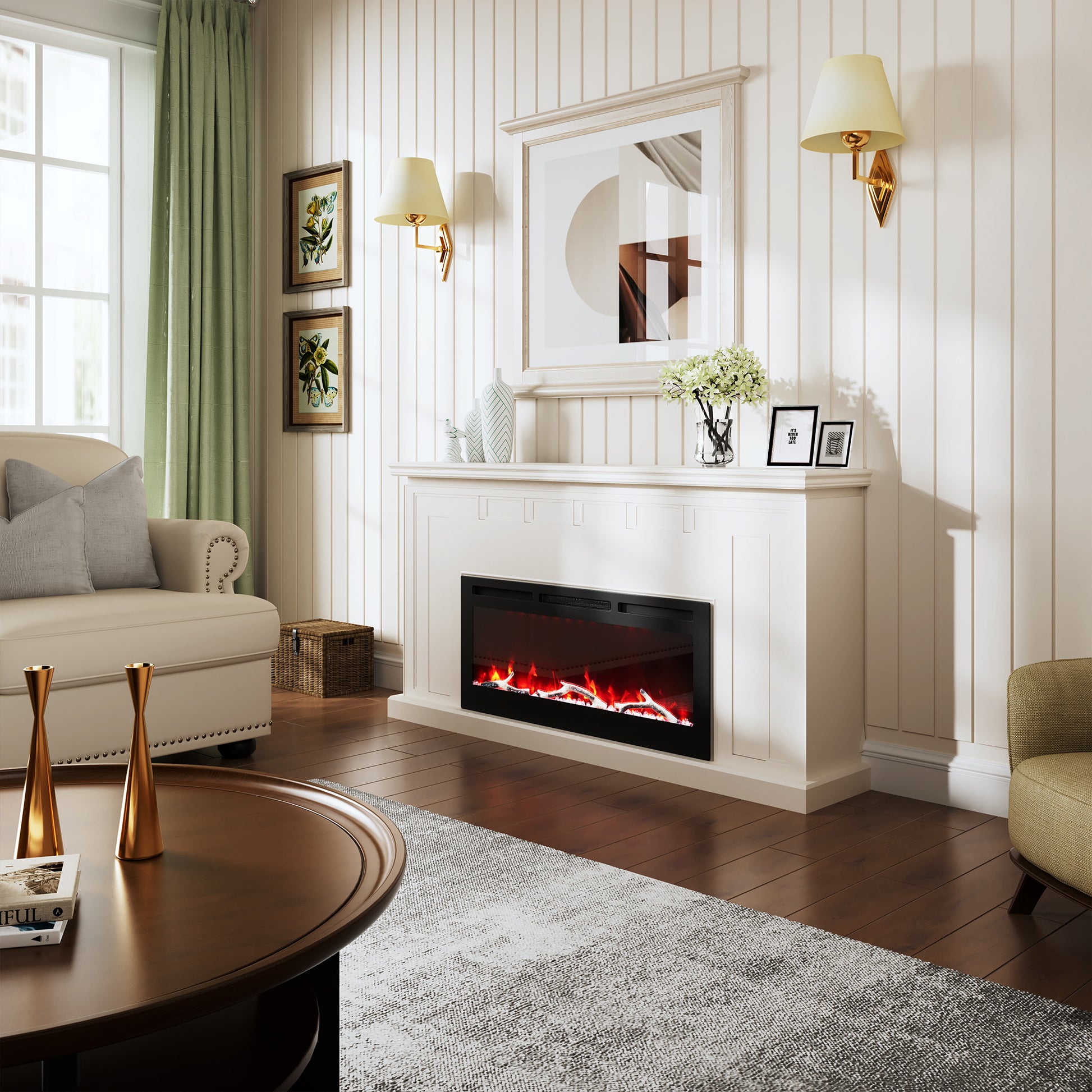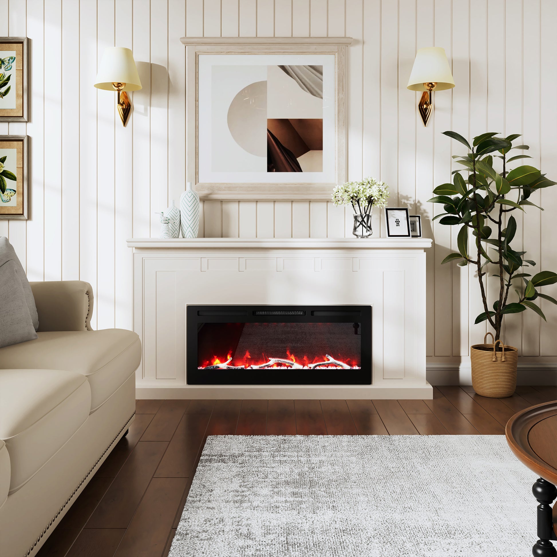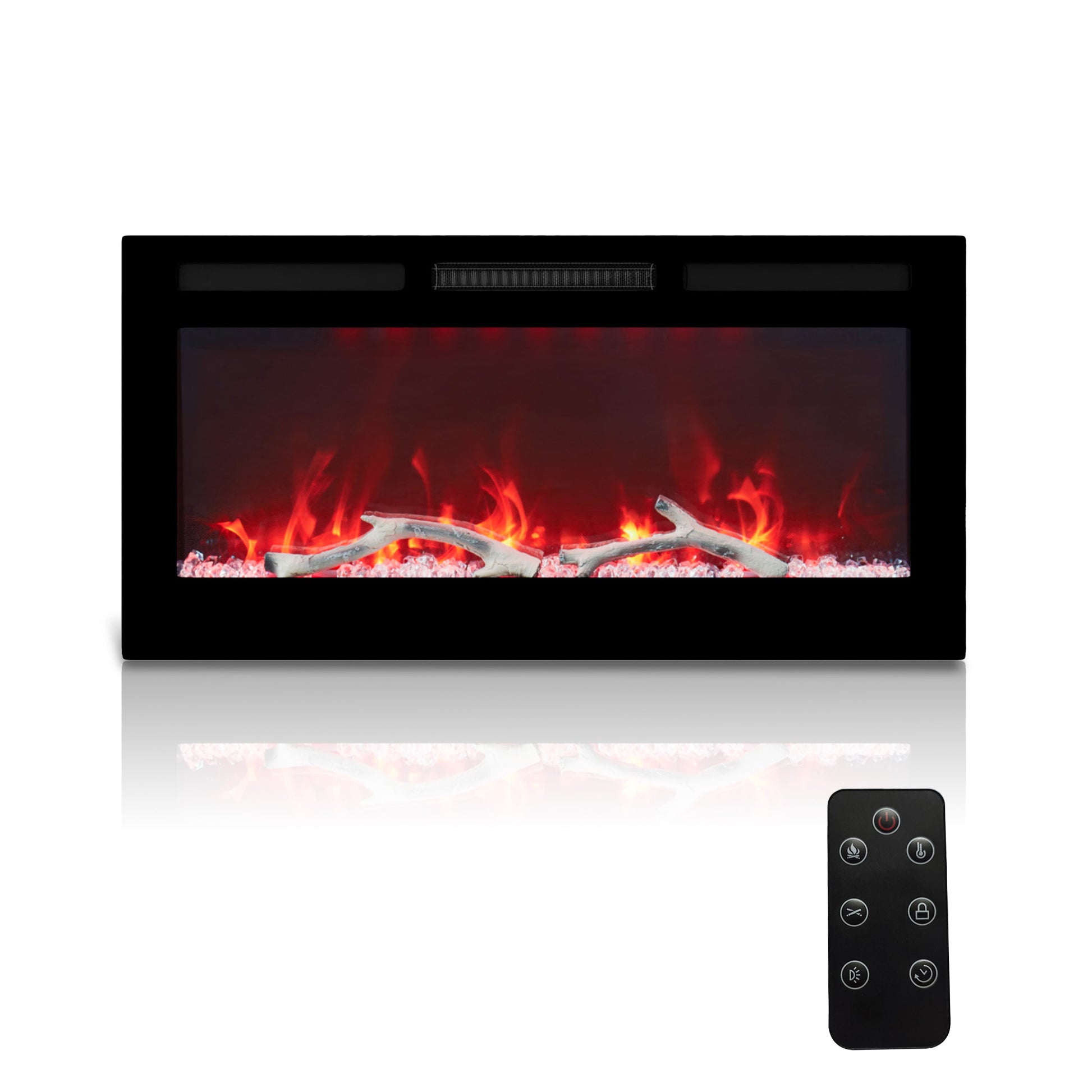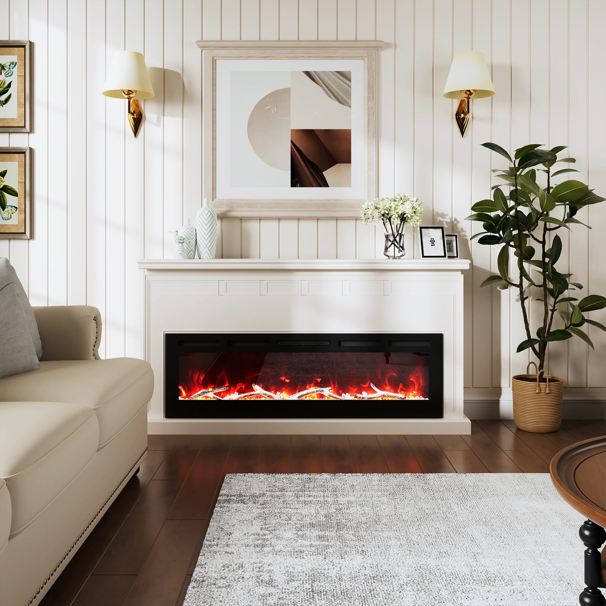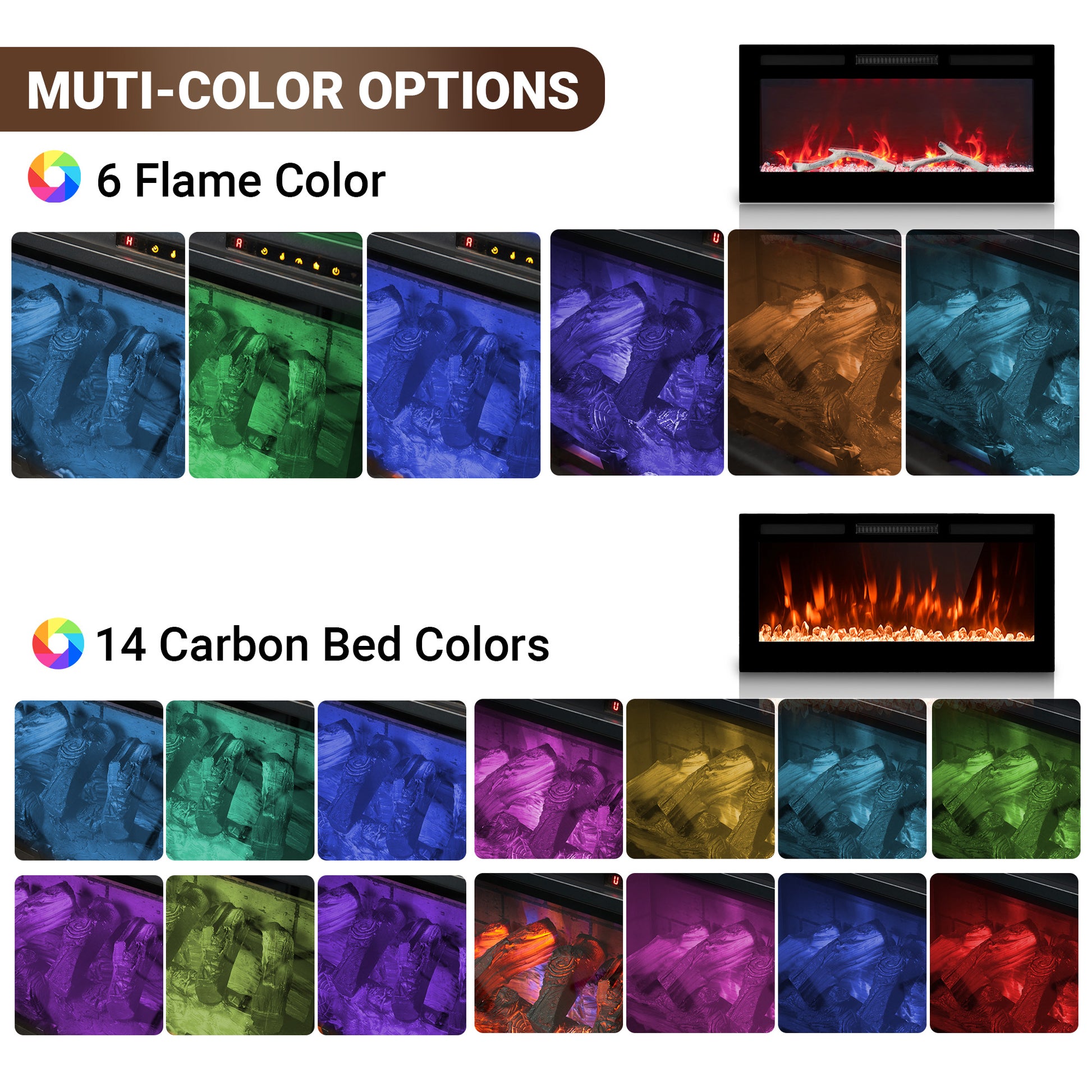 This electric fireplace is designed for recessed in-wall/wall-mounted installation. Enjoy the warmth and ambiance of a traditional fireplace with this sleek rectangular design and the modern black scheme of an electric fireplace. It has realistic flames that look like real fire. Multiple flame settings radiate a soft, soft glow until it burns intensely. Control the heat and flames with the remote control or touch screen. Bring more warmth and interest to your room, upgrade your home with this electric fireplace today and add texture to any living room, bedroom, library or hallway.