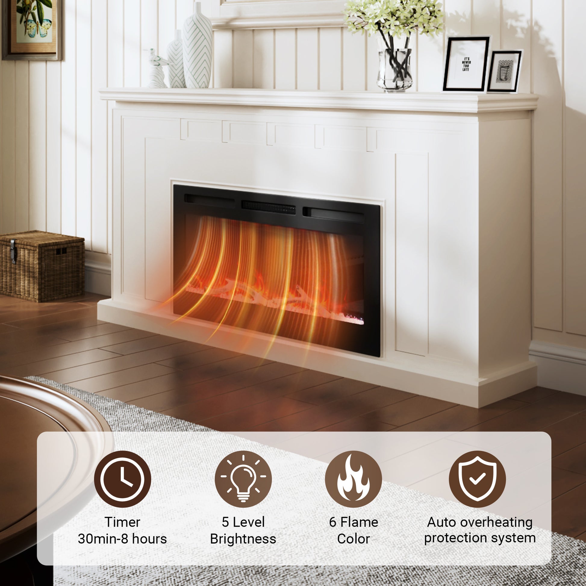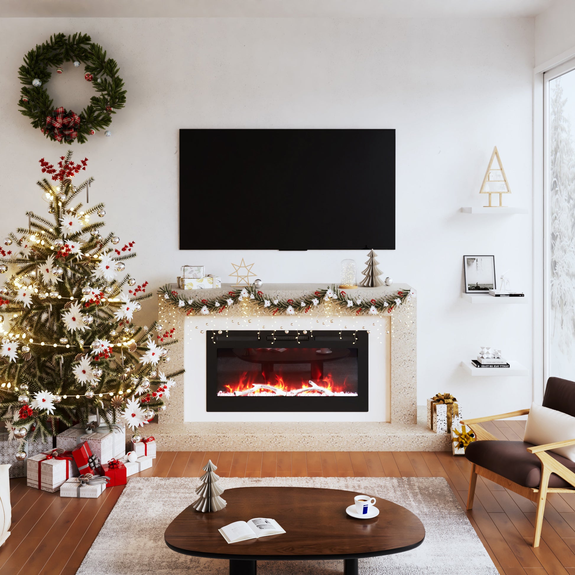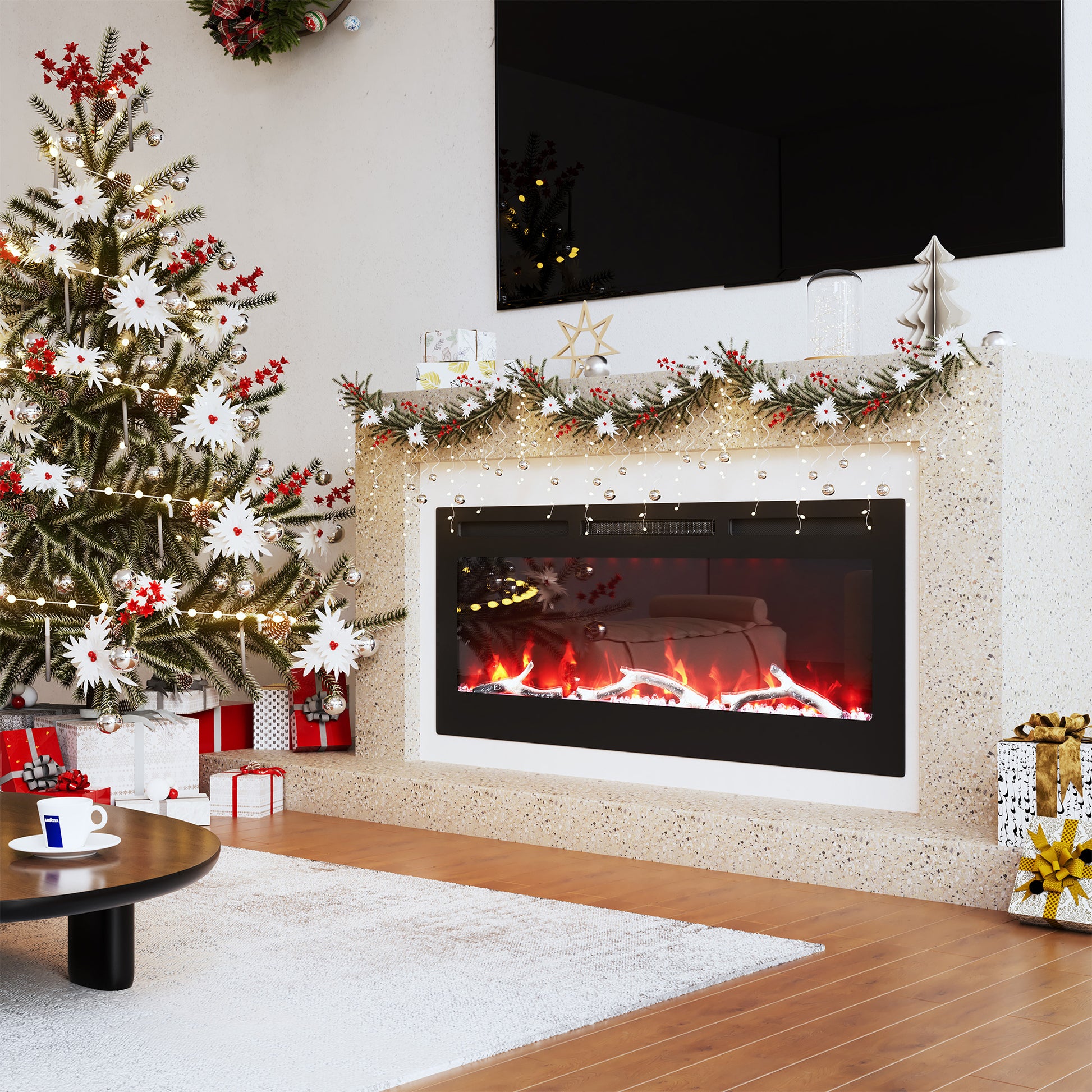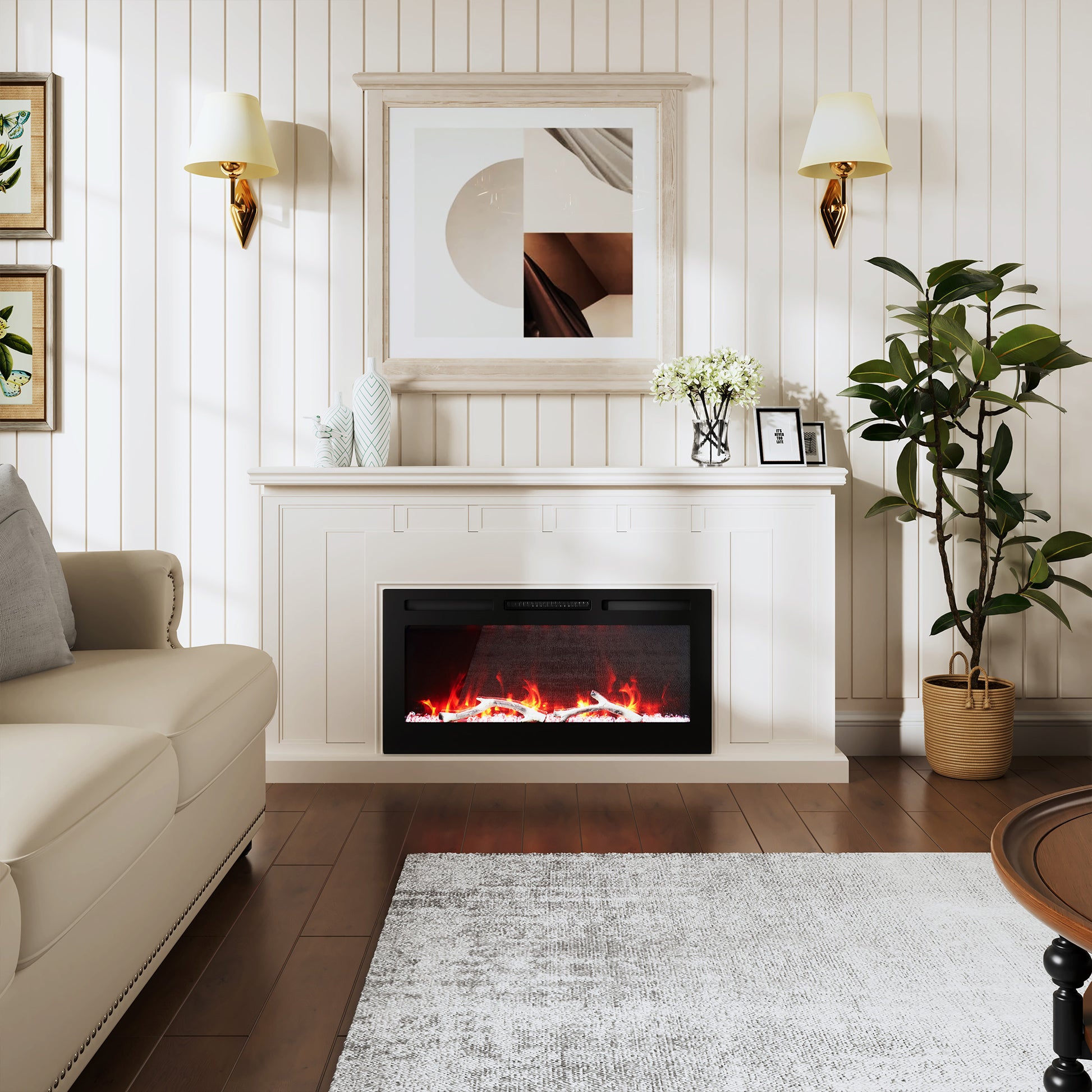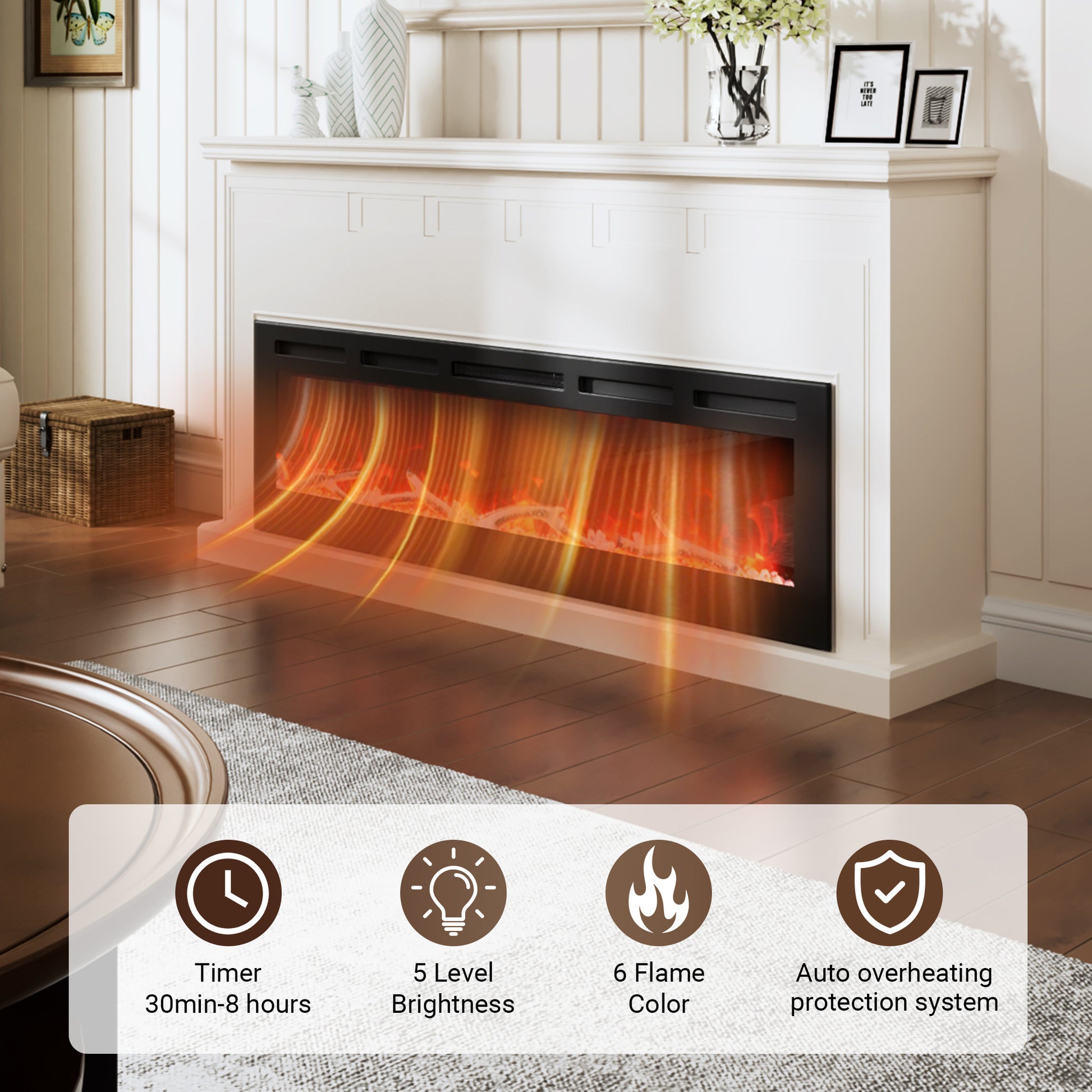 This electric fireplace is designed for recessed in-wall/wall-mounted installation. Enjoy the warmth and ambiance of a traditional fireplace with this sleek rectangular design and the modern black scheme of an electric fireplace. It has realistic flames that look like real fire. Multiple flame settings radiate a soft, soft glow until it burns intensely. Control the heat and flames with the remote control or touch screen. Bring more warmth and interest to your room, upgrade your home with this electric fireplace today and add texture to any living room, bedroom, library or hallway.