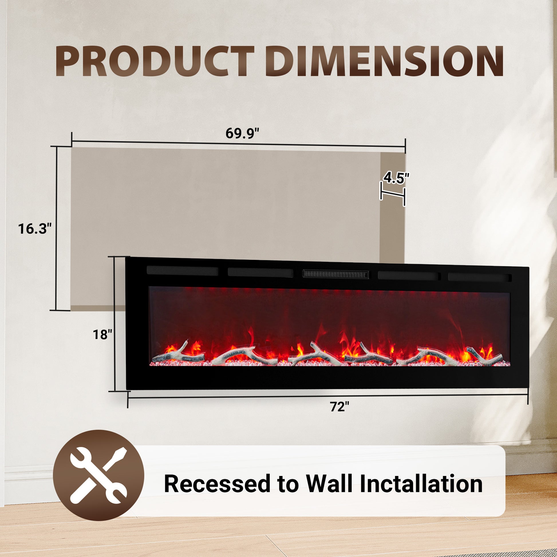 36/42/60/72 in. 4780 BTU Recessed/Wall-mounted Electric Fireplace