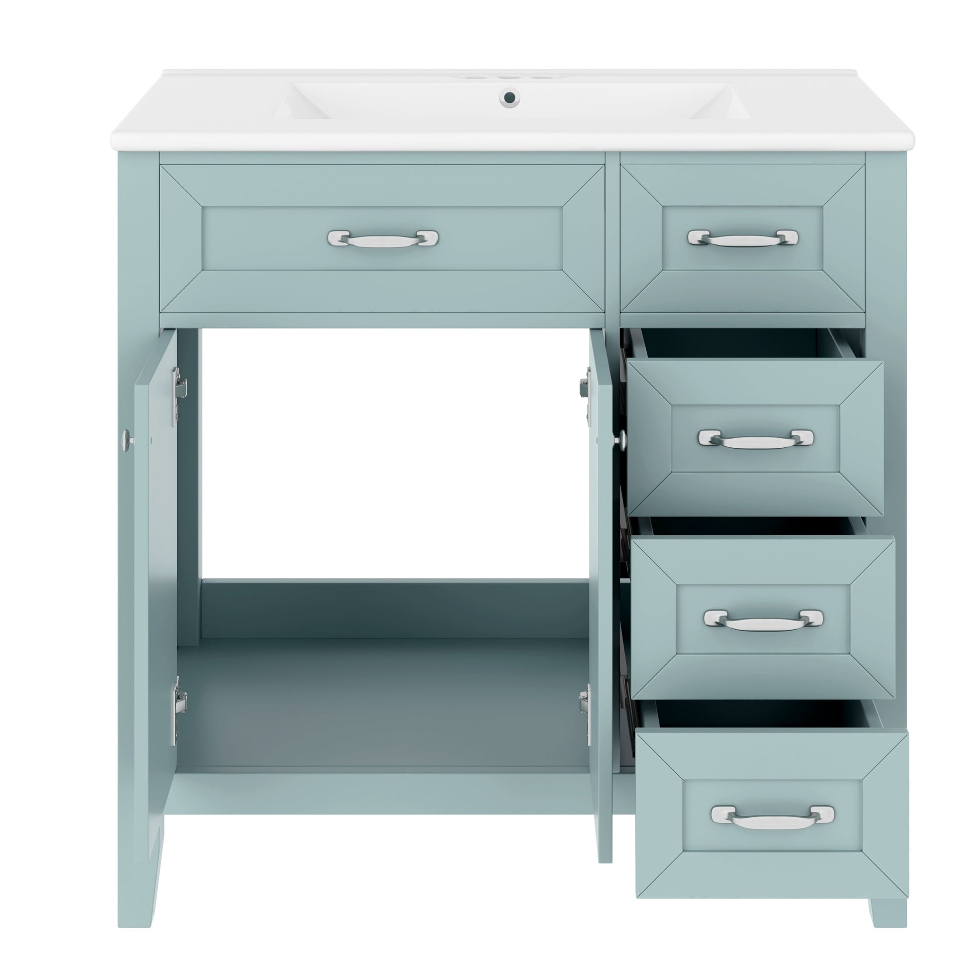 36" Bathroom Vanity with Sink Combo, Green Bathroom Cabinet with Drawers, Solid Frame and MDF Board (Old Sku:JL000007AAG)
