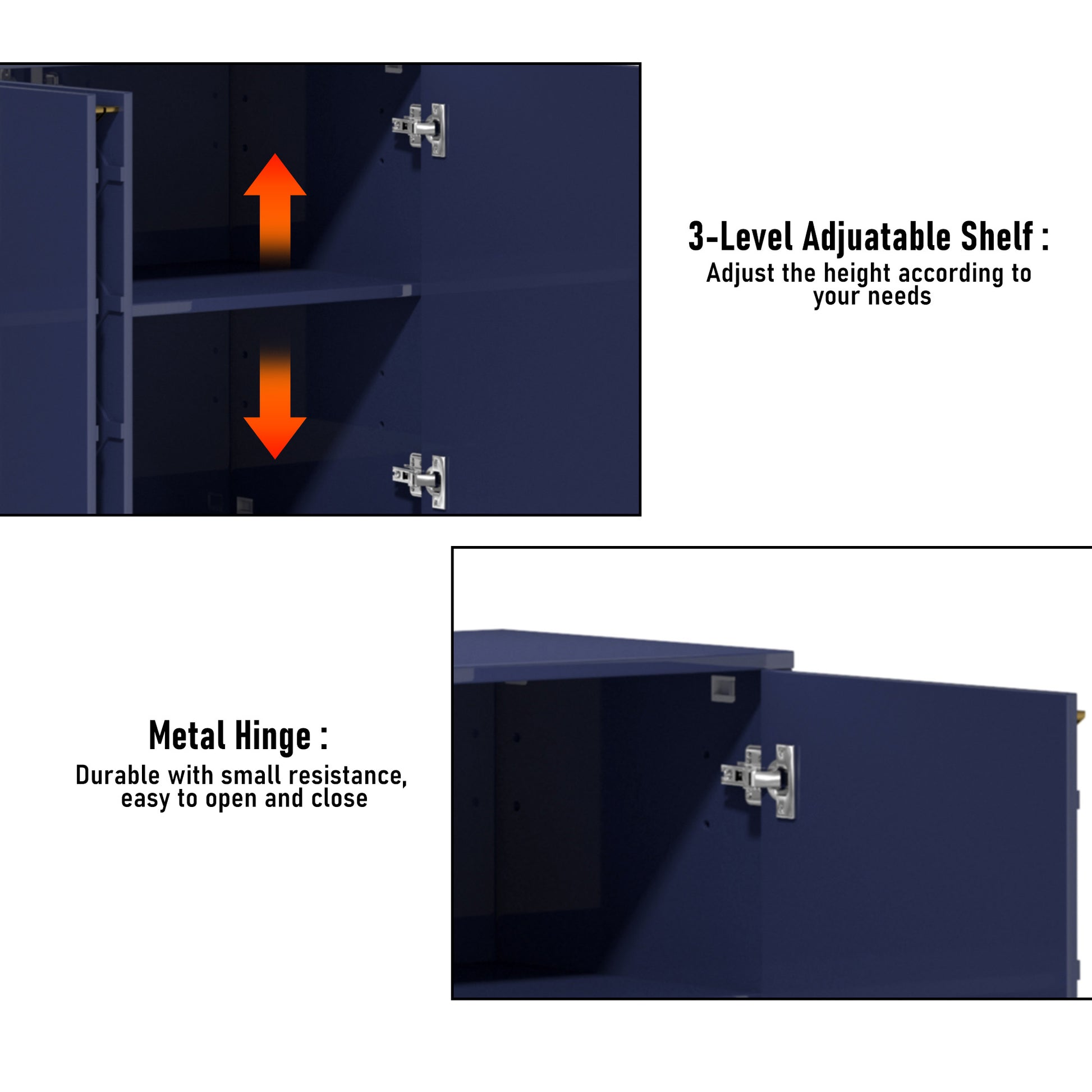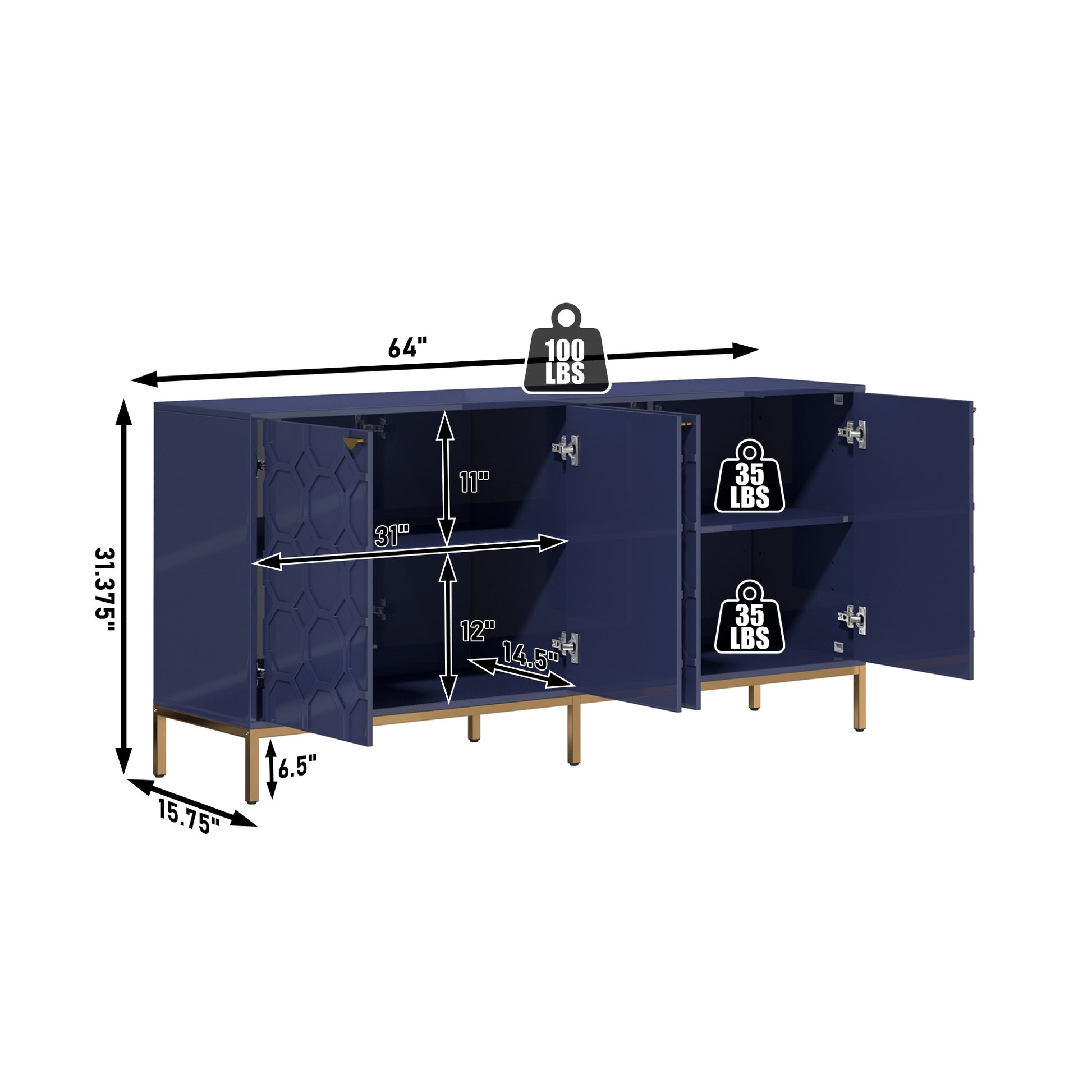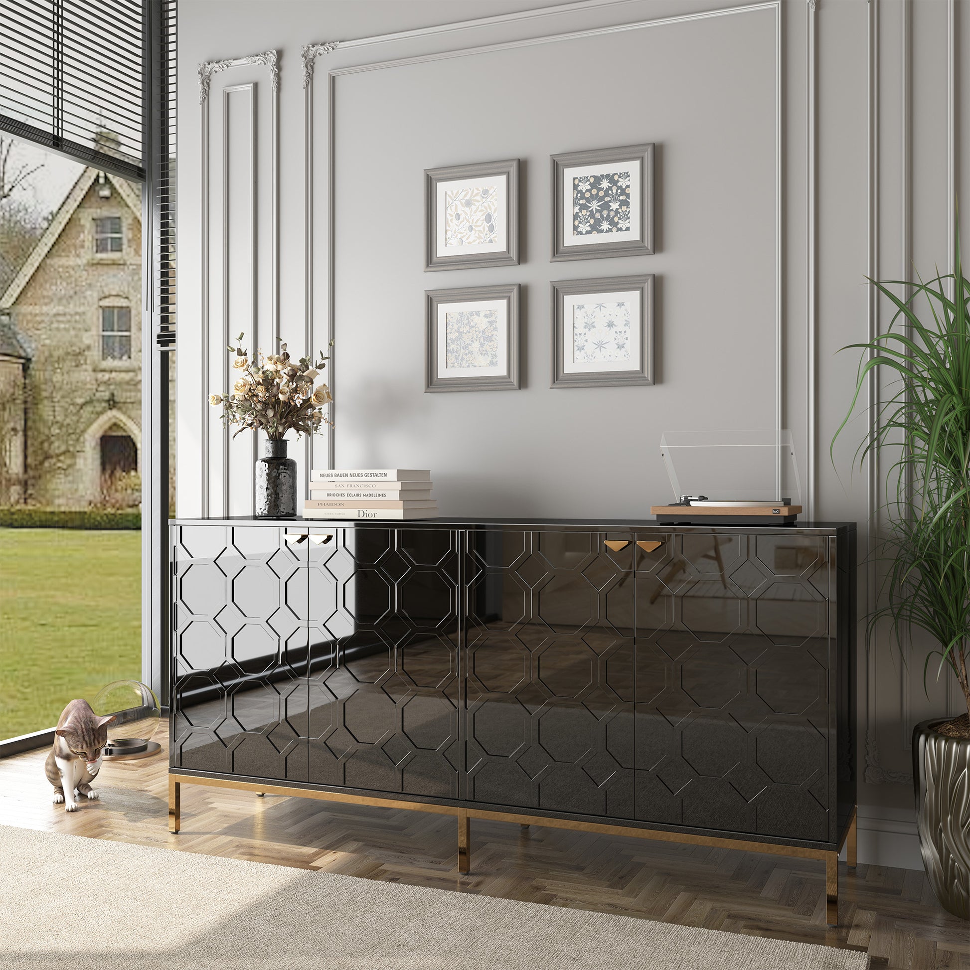 - A combination of beauty and practicality: the 4-door high gloss sideboard not only has an eye-catching appearance but also focuses on practicality. Designed with the user's storage needs and space utilization efficiency in mind, it provides easy access to storage and removal of items while enhancing the overall décor, making the dining room or home more aesthetically pleasing and comfortable.