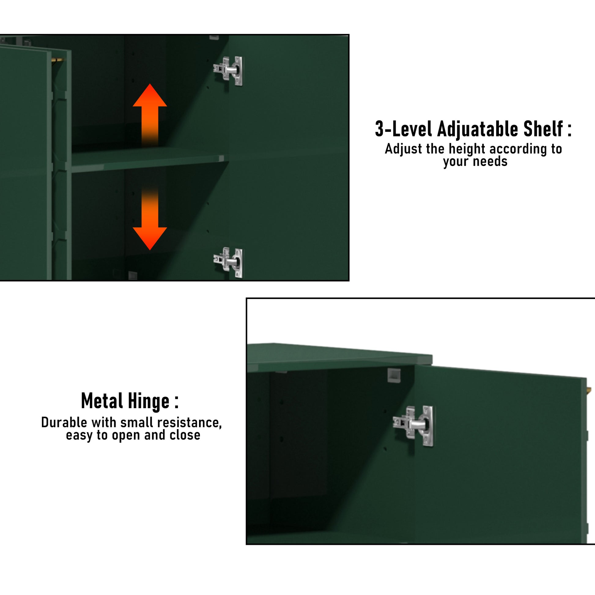 - Large capacity storage space: The four-door design provides spacious storage space. This allows users to conveniently store and organize a variety of cutlery, dinner plates, wine glasses, and other items required for dining. The large-capacity storage space helps to keep the dining room tidy and organized and improves the efficiency of use.