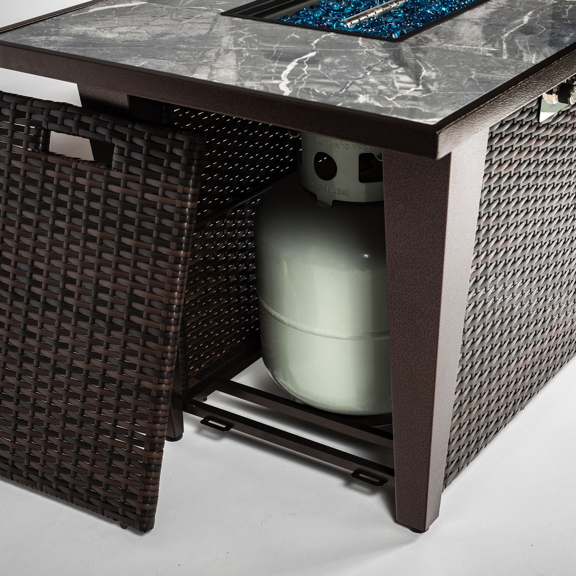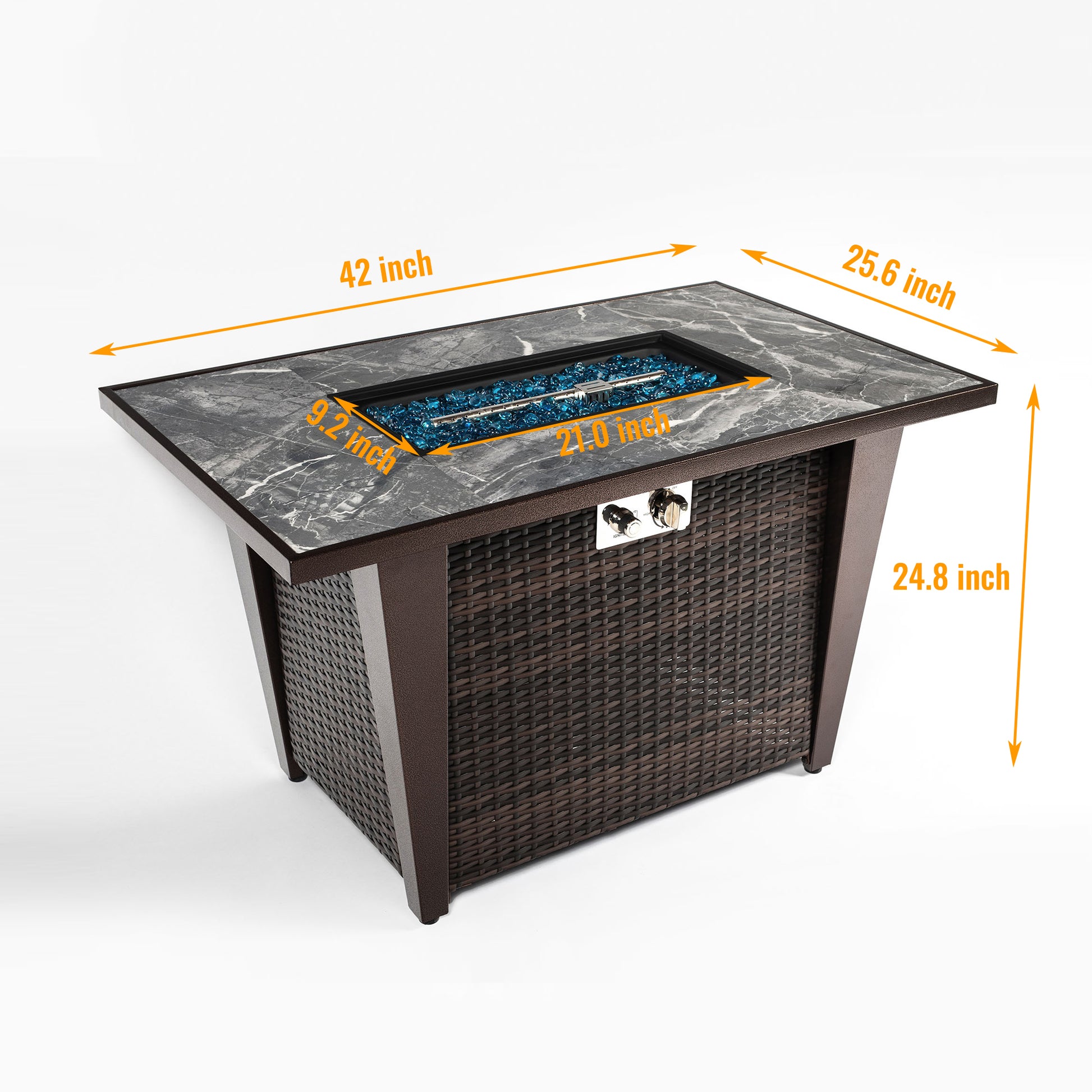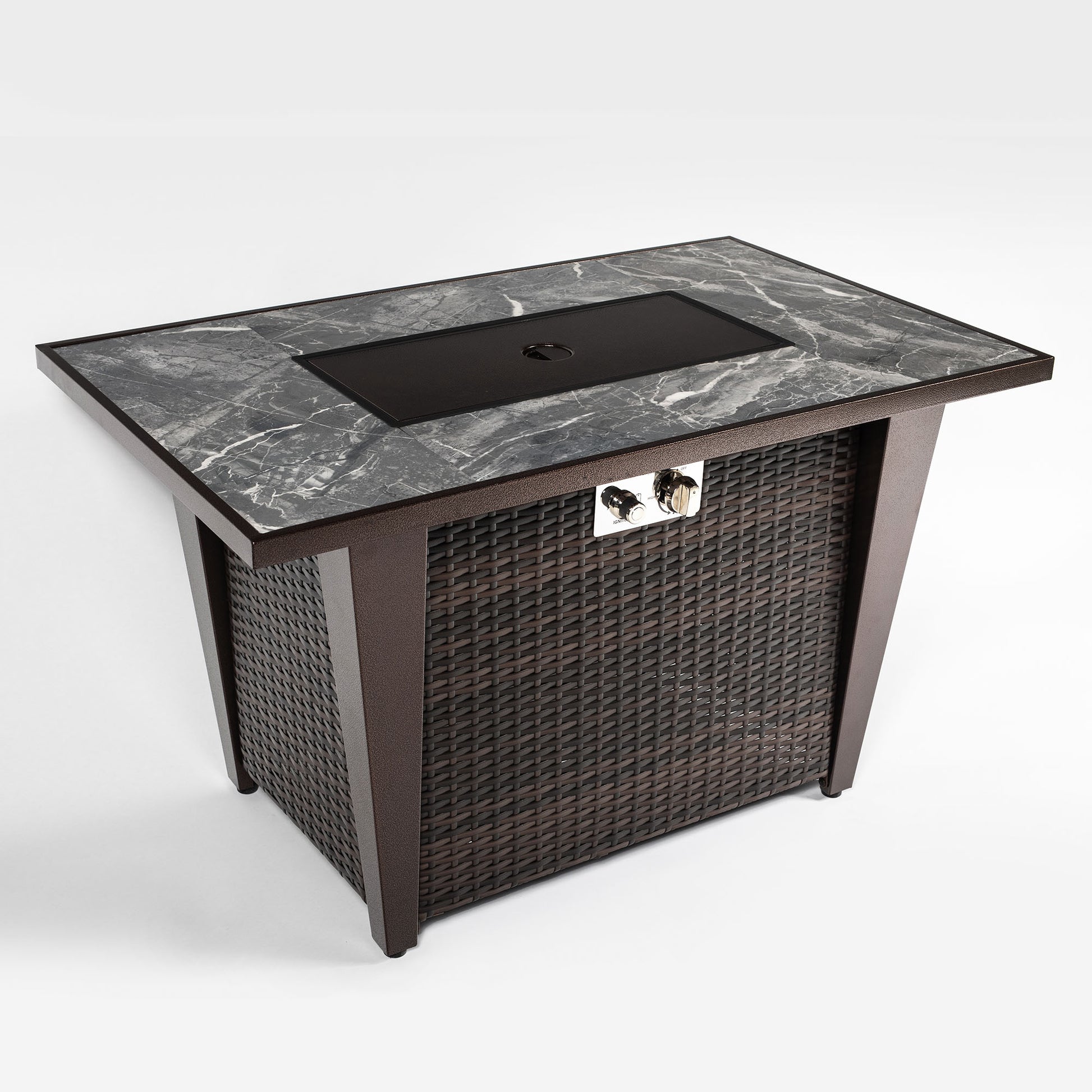 - Outdoor Wicker Fire Table with Brown Art Powder Coating