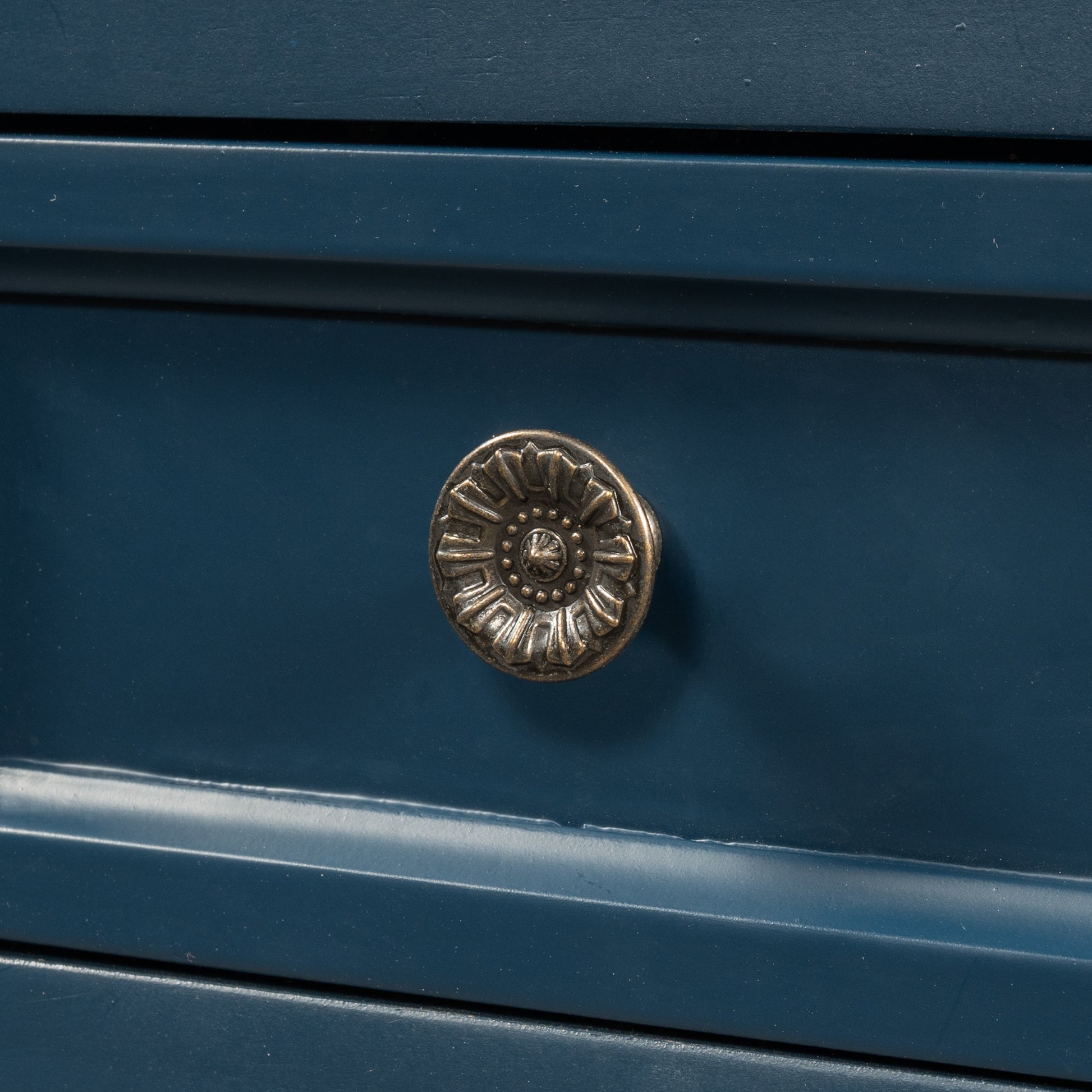- Modern Vintage Design:Aspects of both modern and vintage come together to create this unique piece, featuring farmhouse inspired wood frame detailing on the outer drawers with contrast from the iron handles for heightened appeal.