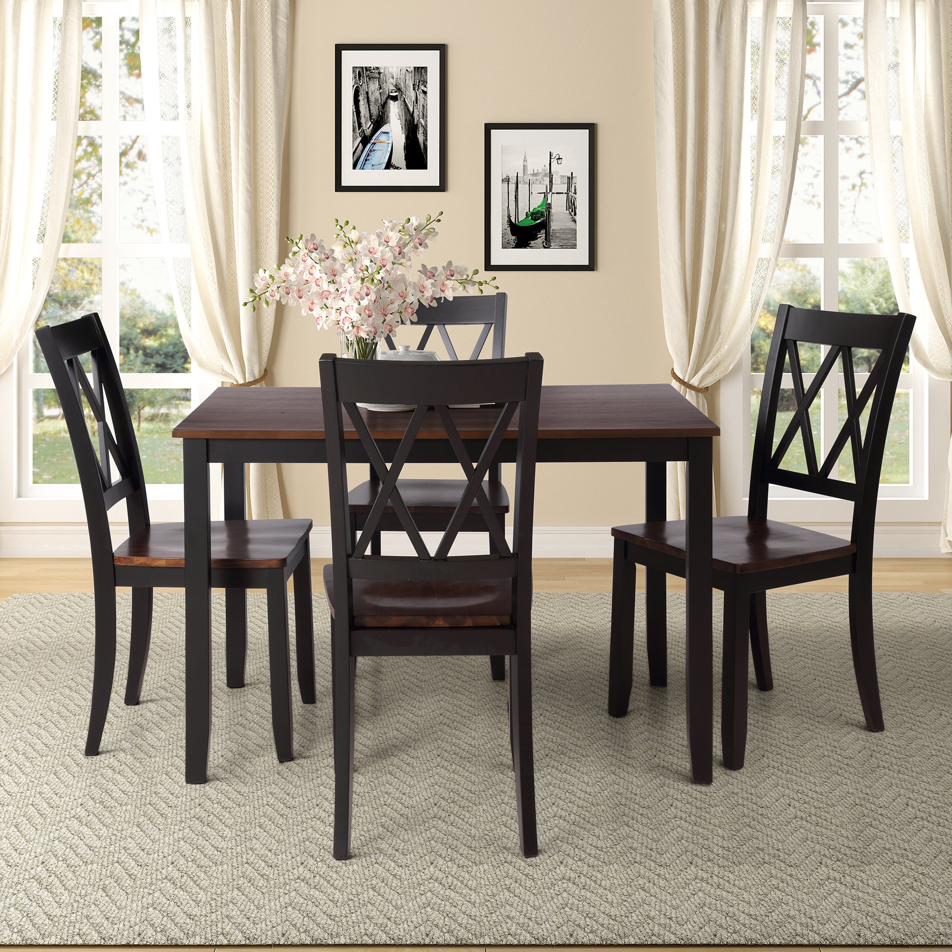 | Highlights | Solid Wood // Two Colors Option // Rectangular Table // X-Back Chair // Anti-slipping protectors // Dining Set for 4 |