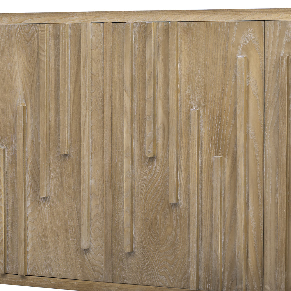 - [Functional Four-Door Storage]:Offering generous internal storage behind four textured doors, this piece is as practical as it is stylish. Whether used in a dining room, hallway, or living area, its thoughtful construction and materials ensure it enhances both form and function.