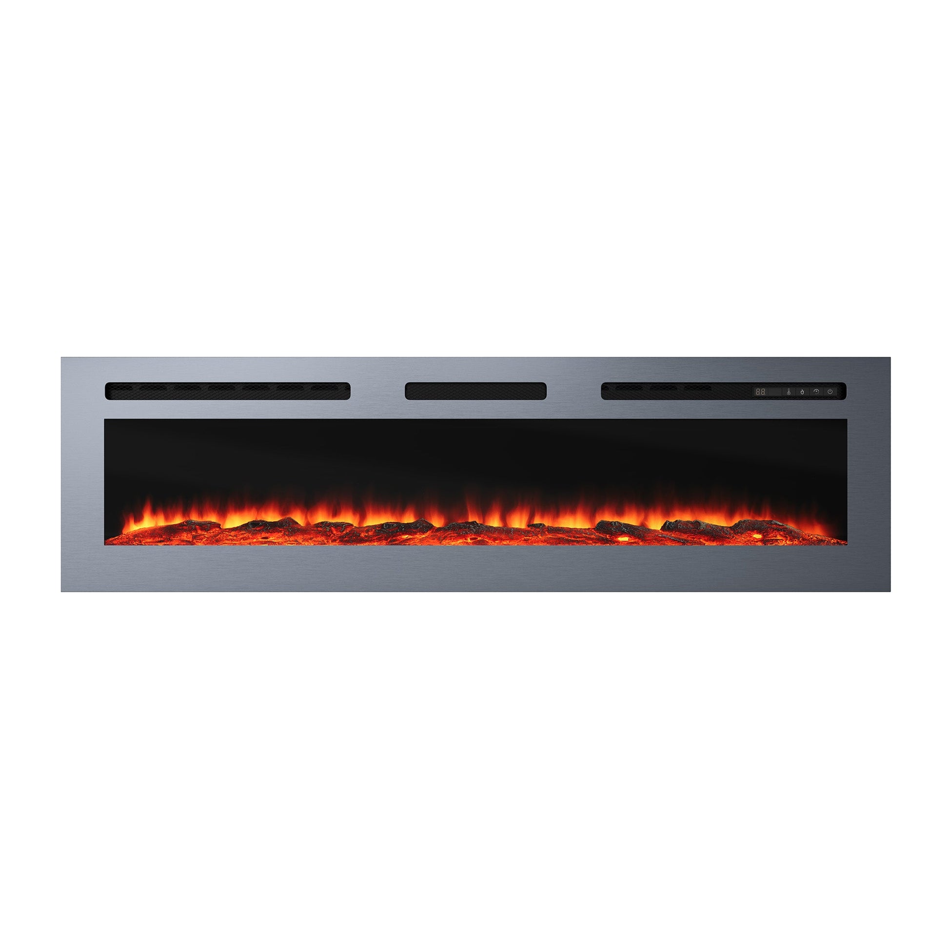 60 Inches Stainless Steel Recessed or Wall Mount Smart Electric Fireplace