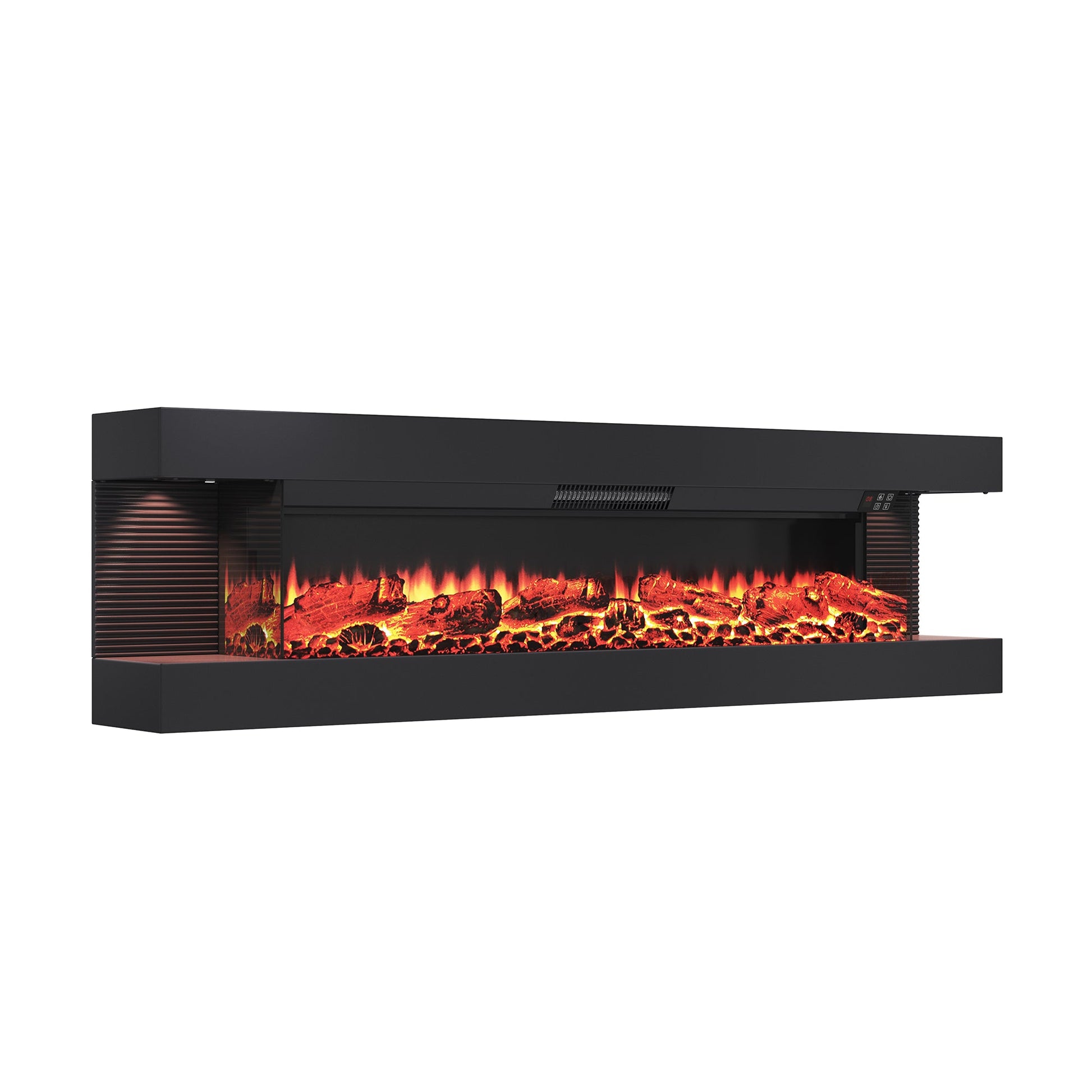 60 inches wall-mounted electric fireplace with led lighted mantel and remote, modern indoor heating accent