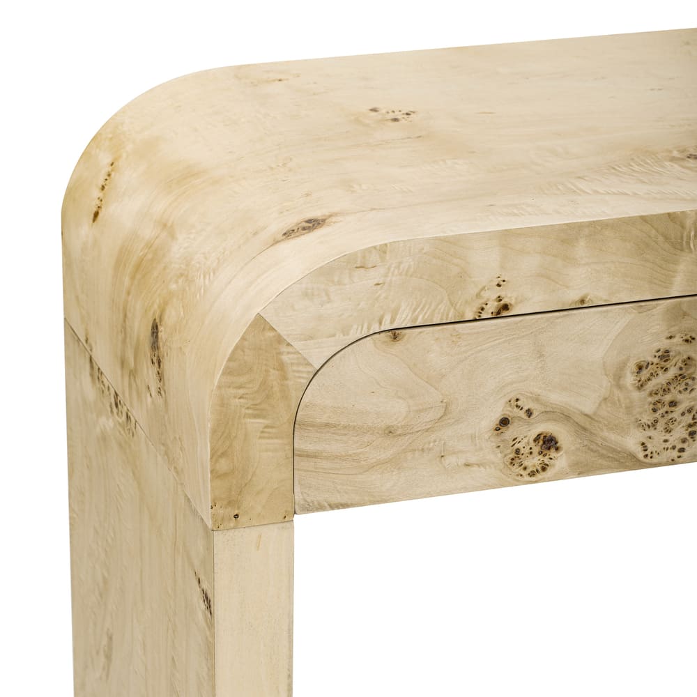 - [Popular Burl Veneer Console]:Featuring poplar burl veneer over sturdy MDF, this console table showcases nature's grain patterns. The premium wood surface provides dent-resistant durability. The smooth lacquered finish protects against daily wear while enhancing the wood's natural character.