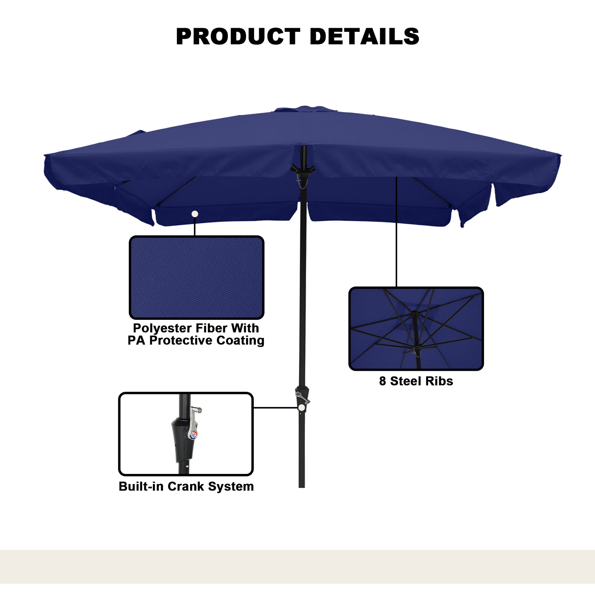 8 ft. x 10 ft. Square Crank Design Skirt with Skylight Outdoor Market Umbrella in Beige/Navy Blue/ Red/Tawny with Base