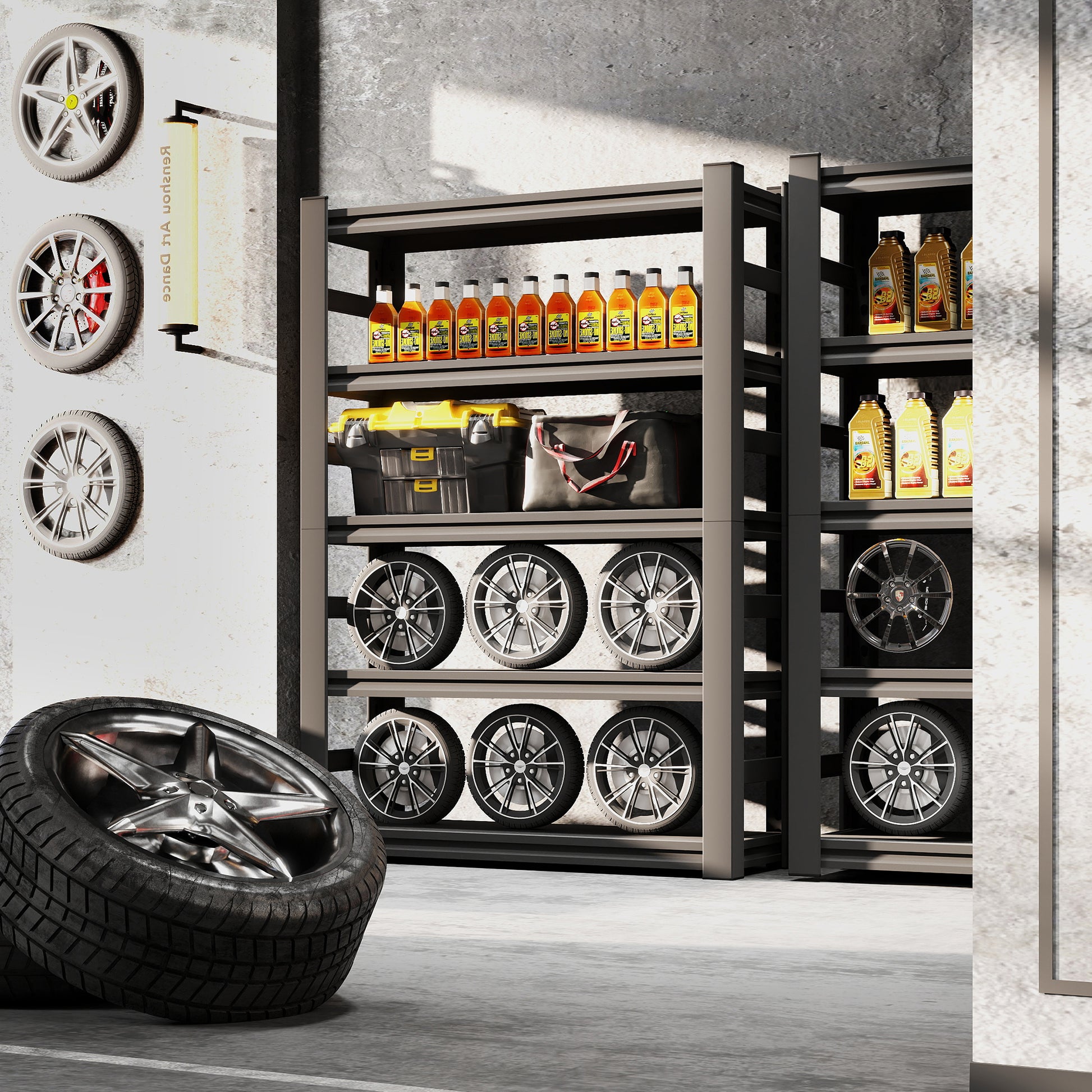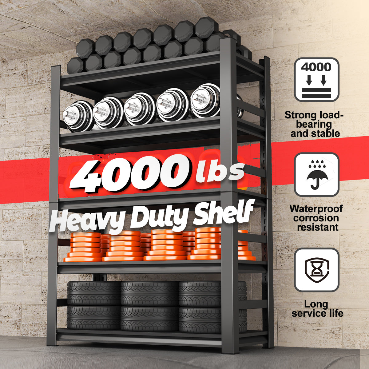 - 【Durable and sturdy】This 87 "H multifunctional storage rack is made of sturdy metal material, making it even more durable and wear-resistant. The overall shelf can bear 3000 pounds, making it easy to place heavy objects. It is an excellent assistant for garages, basements, tool rooms, and supermarkets.