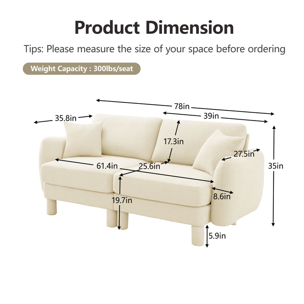 - Ultimate Comfort - Upholstered with soft and breathable boucle fabric, this couch provides a plush seating experience. Dense foam padding combined with a spring coil system delivers superior comfort and support, preventing sagging even with prolonged use.
