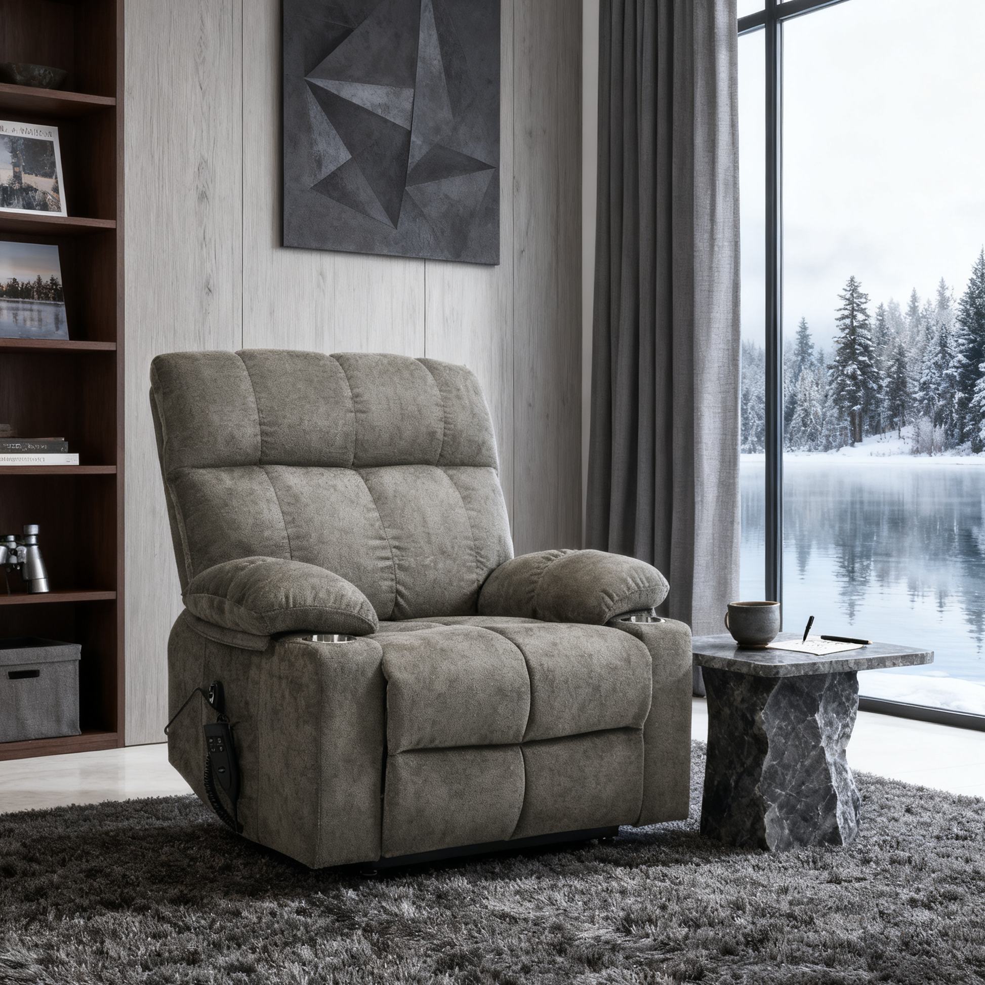 Brown Dual Motor Infinite Position Up to 350 LBS Chenille Power Lift Recliner Chair, Heavy Duty Motion Mechanism with 8-Point Vibration Massage and Lumbar Heating, Dual Cup Holders