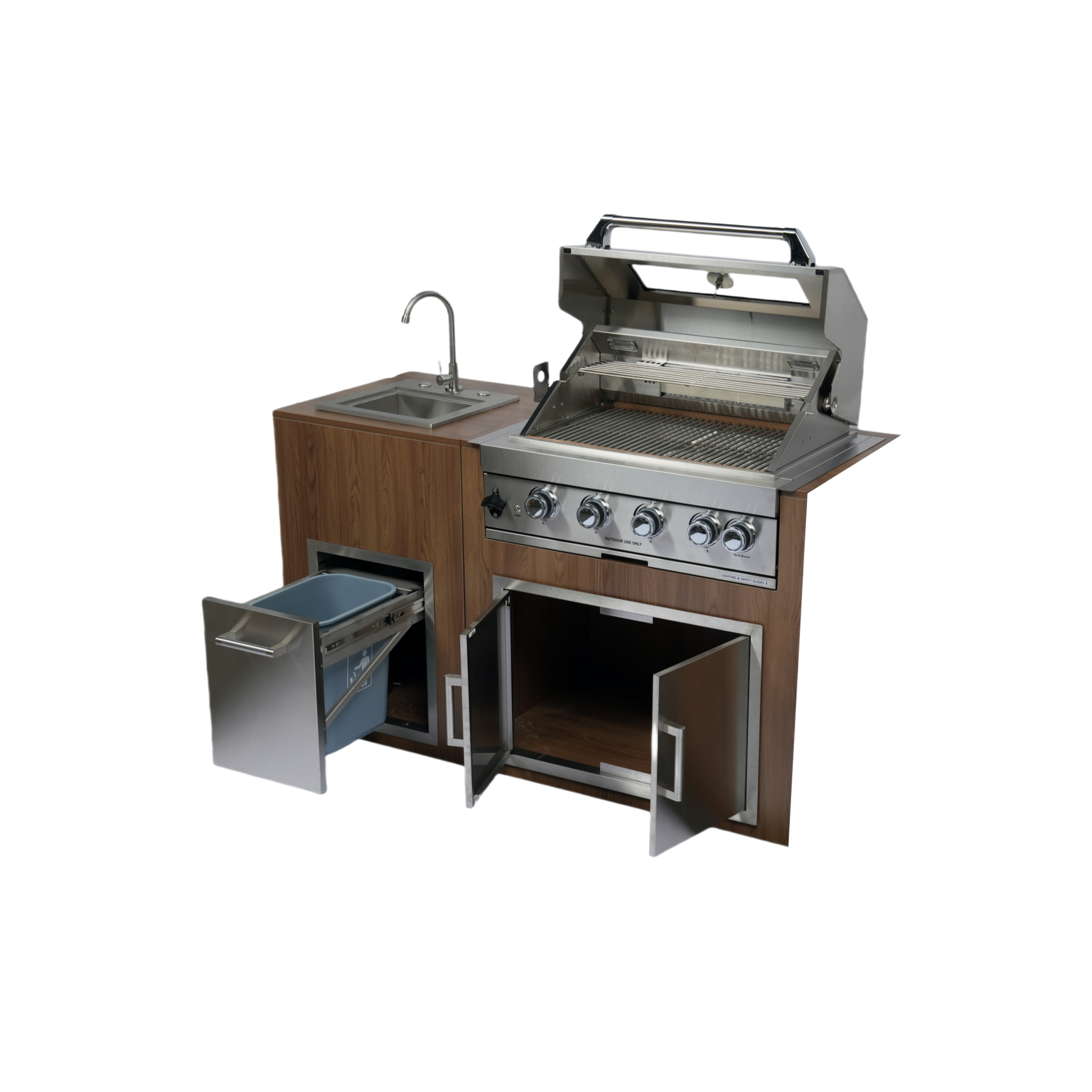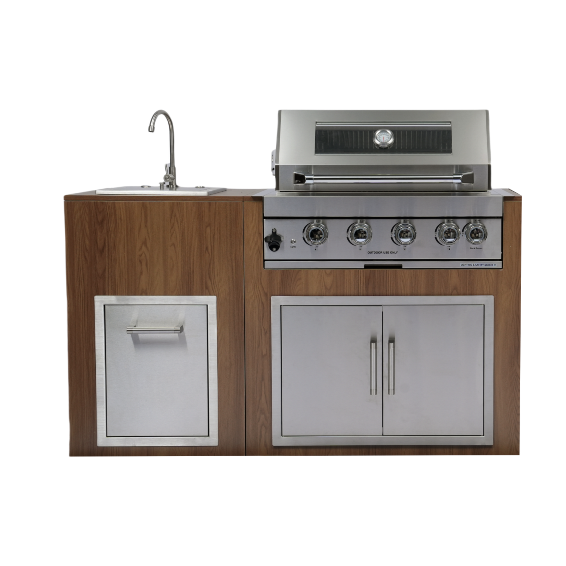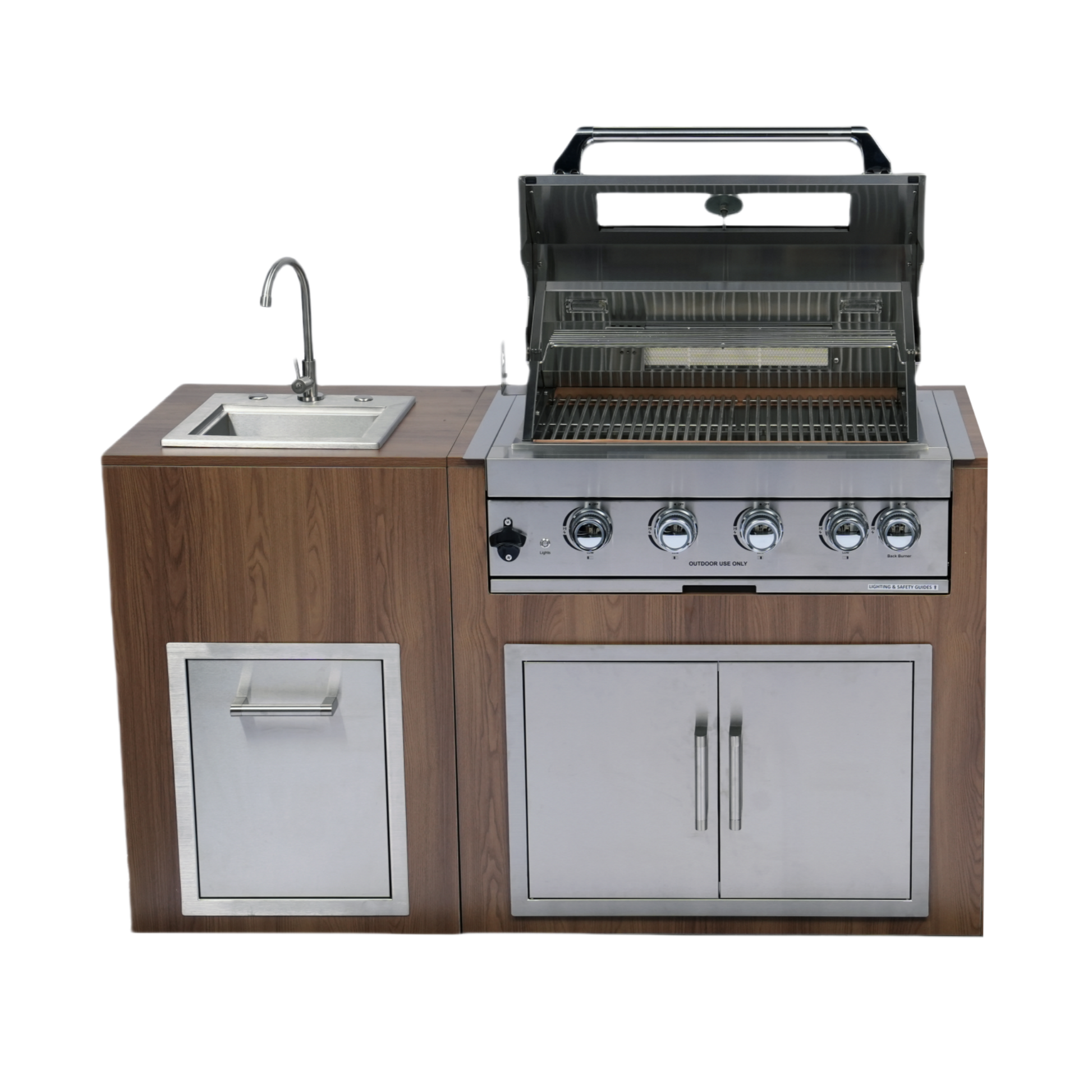 Built-in Outdoor Kitchen 32 inch LPG Gas Grill 60000 BTU Stainless Steel Four burners Grill with Infrared Rear Bunrer and Door and Drawer Combo and Drop in Stainless Steel 304# Sink