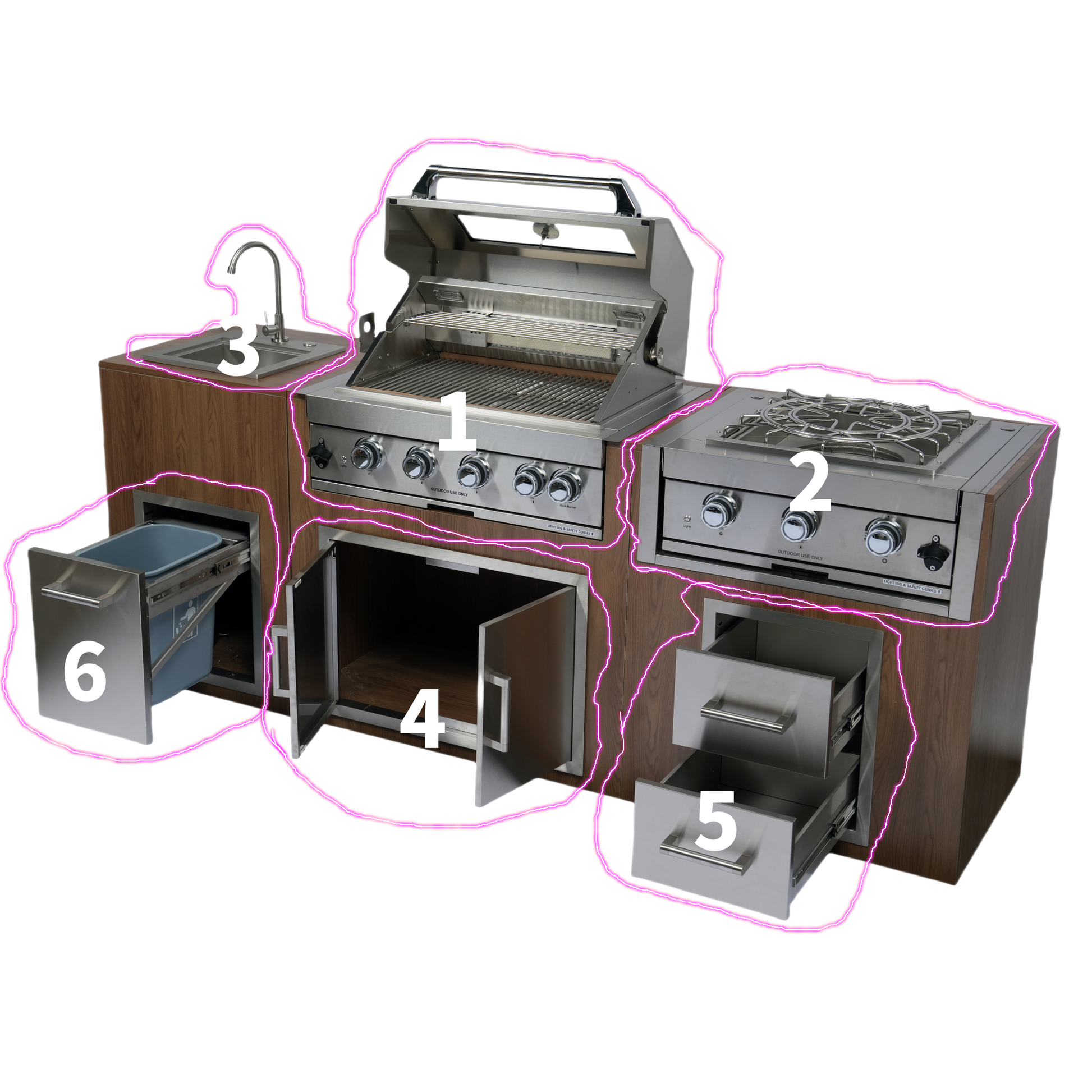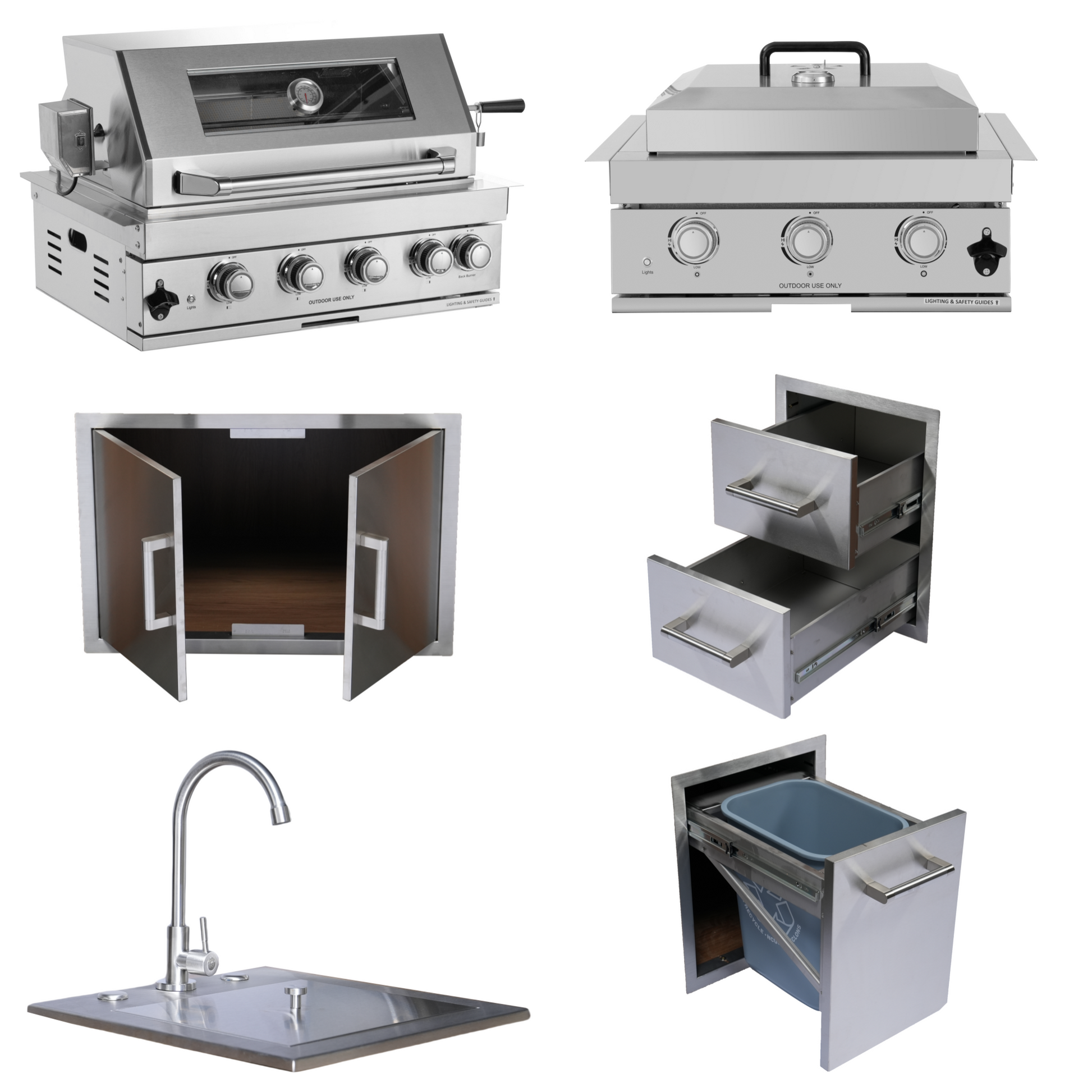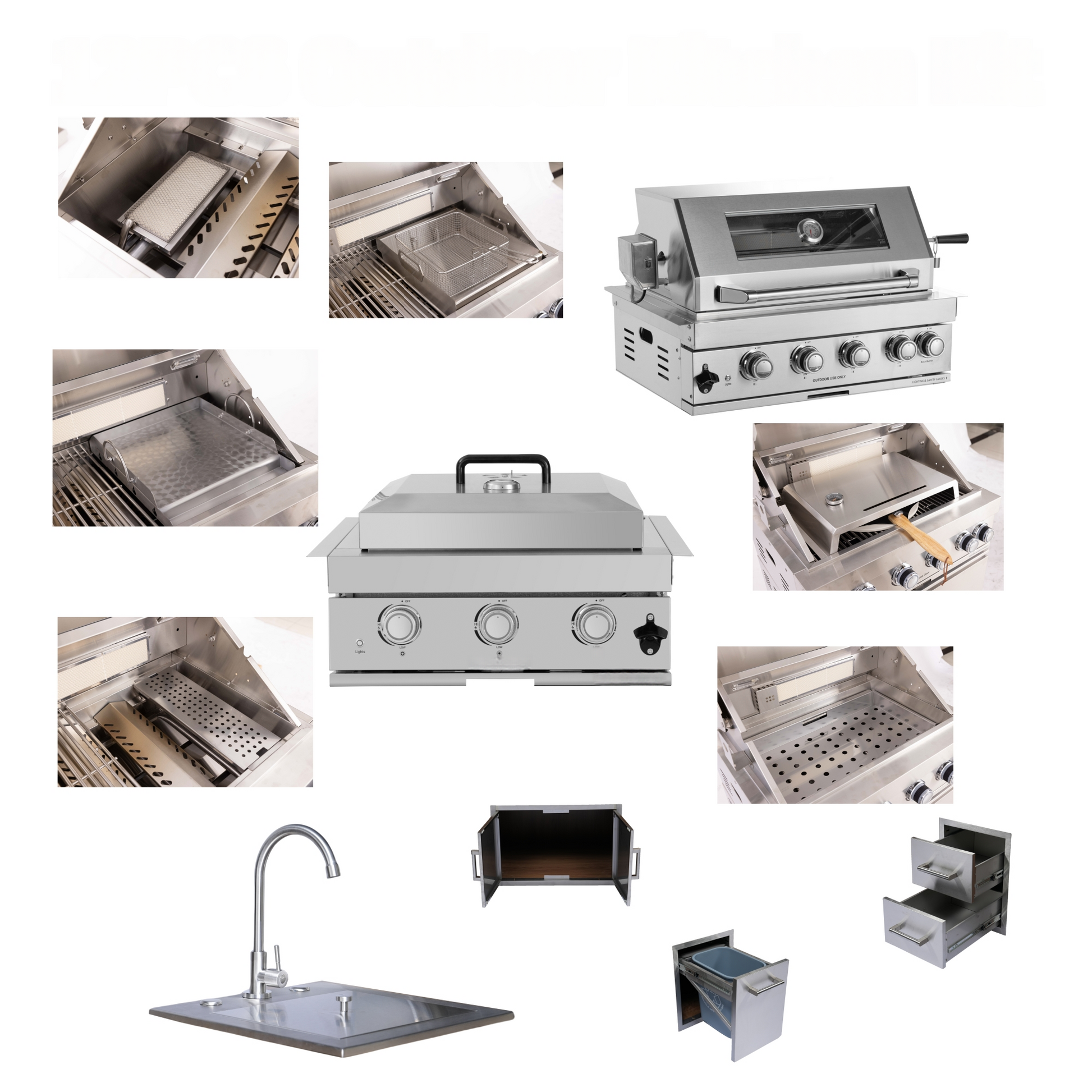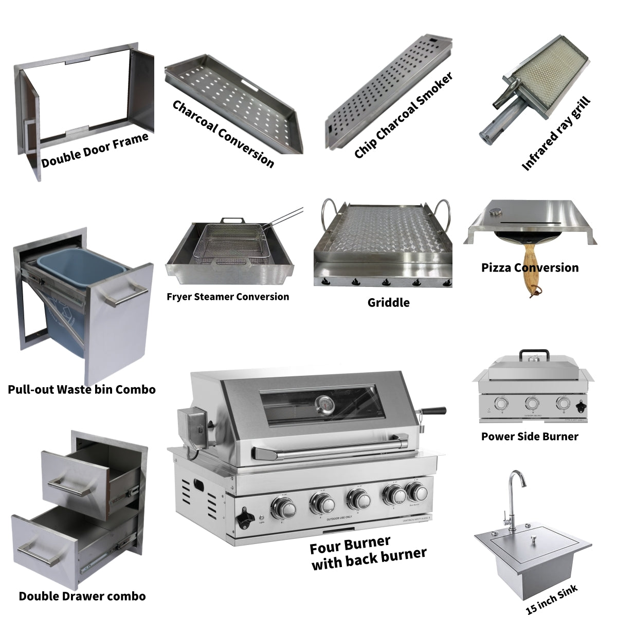 - BBQ 6 in 1 Tool set features a Charcaol Conversion,Fryer/Steamer Coversion,Pizza Conversion,Chip/Charcoal Smoker Conversion,Griddle and Infrared Burners .