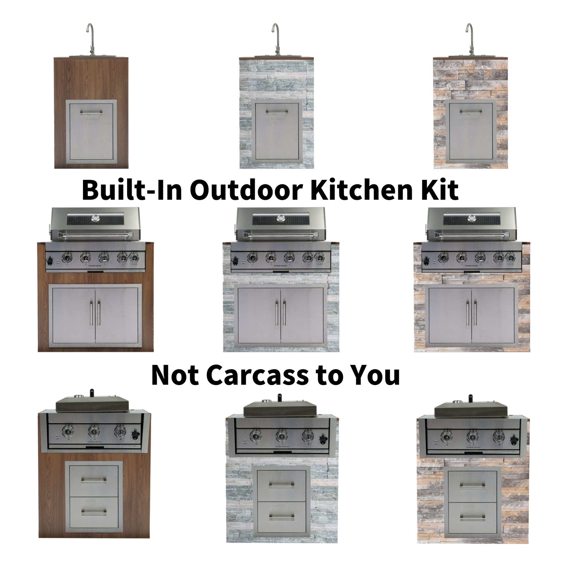 Built-in Outdoor Kitchen 32 inch LPG Gas Grill 60000 BTU Stainless Steel Four burners Grill with Infrared Rear Bunrer and Door and Drawer Combo and Drop in Stainless Steel 304# Sink with BBQ Tool Set