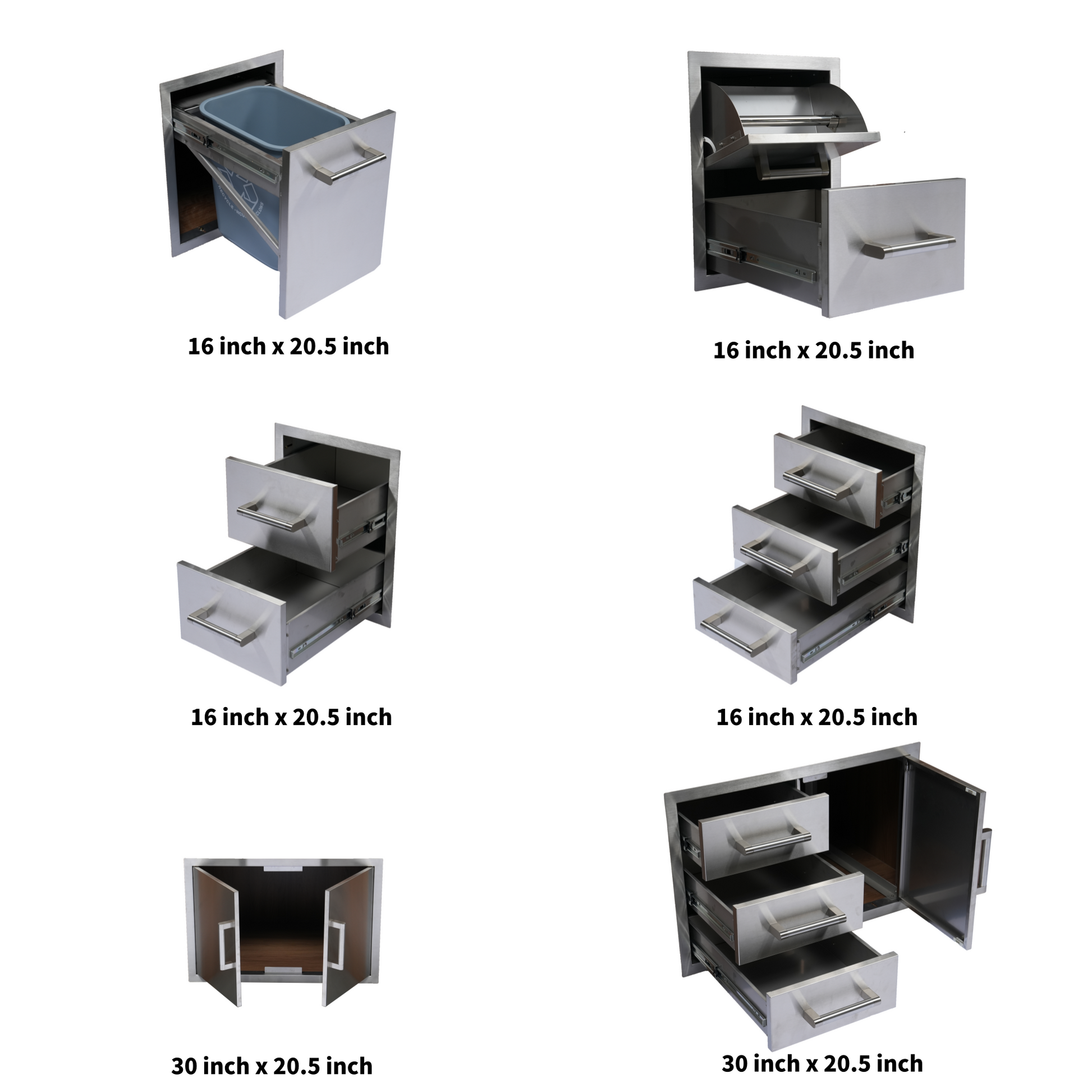 - Double Door -30 inch ; Double Drawer 16 inch,Waste bin 16 inch